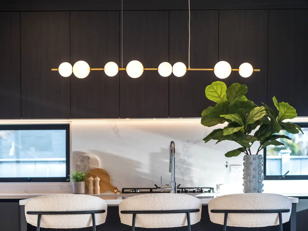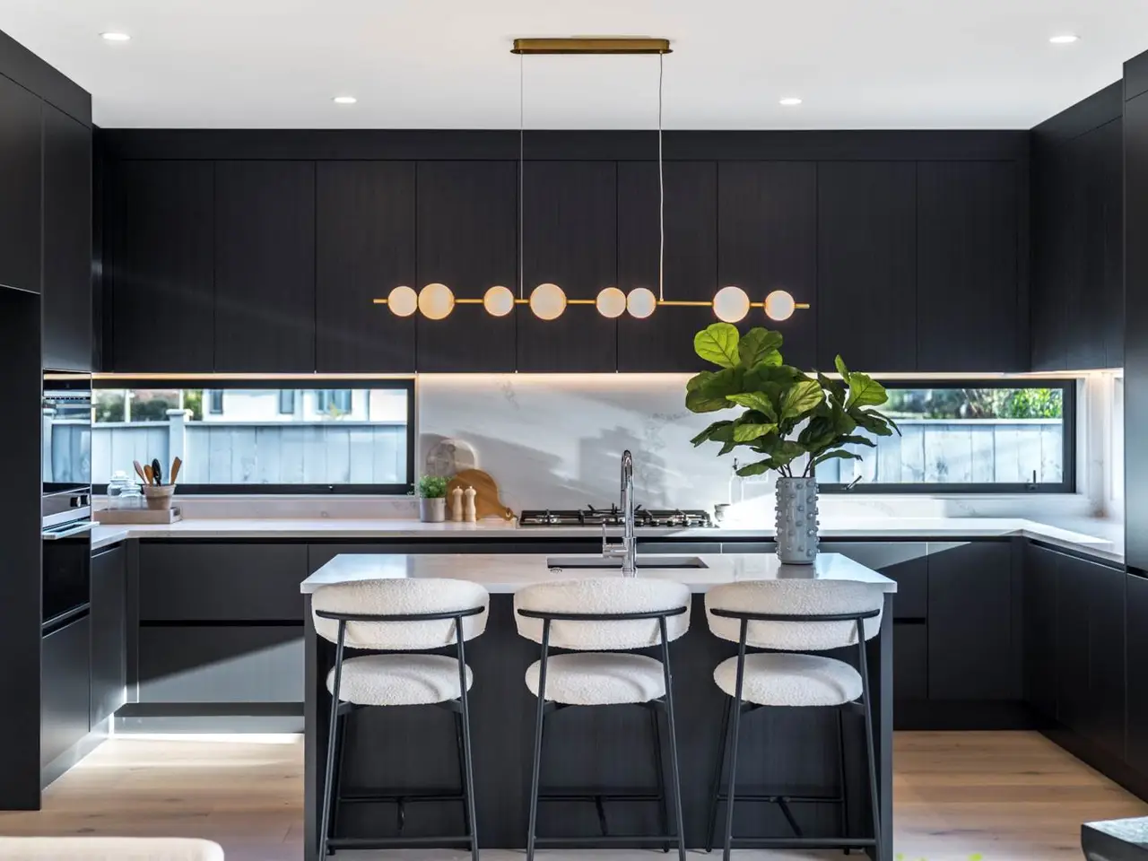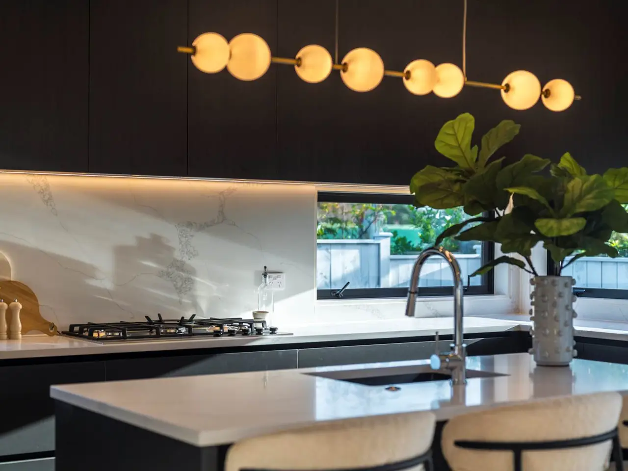 Designer kitchen with gas cooking and premium appliances