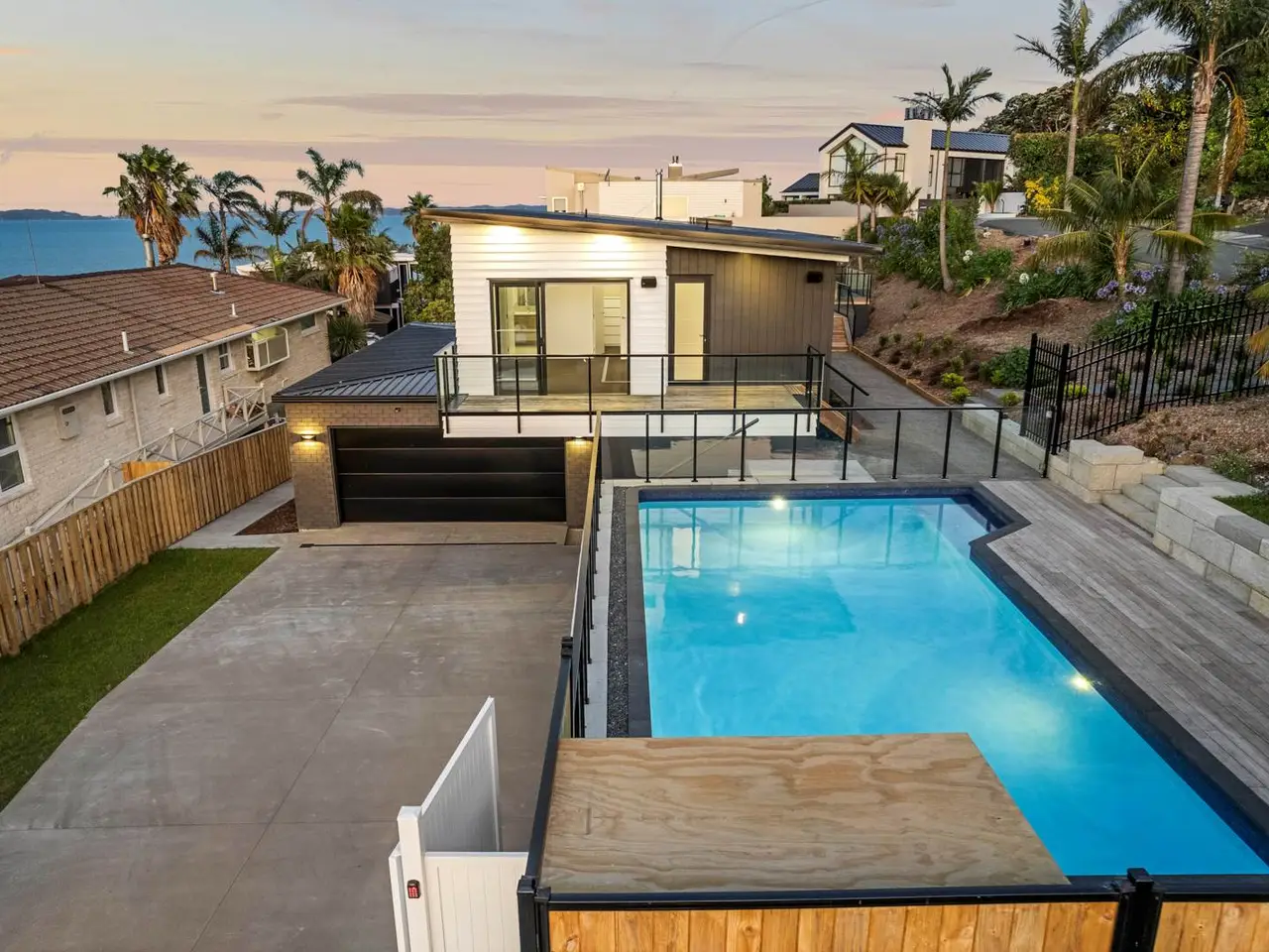 Situated on one of Cockle Bay’s most prestigious streets, this brand-new architectural masterpiece offers a rare blend of luxurious design, premium finishes, and relaxed seaside living. Set on a generous 822sqm (more or less) freehold section, the elevated position captures breathtaking 180° north-facing sea views and all-day sun. Perfectly positioned within walking distance to the beach, yacht club, local cafés, and top-tier schools, this is a home built for lifestyle, entertaining, and effortless family living. Feature Highlights: • 180° Breathtaking North-Facing Sea Views • Sheltered Outdoor Balconies with Outdoor Heating – seamless indoor-outdoor flow ideal for year-round enjoyment • Triple Internal Garage – super-sized with additional storage and off-street parking • Ground-Floor Guest Suite with Kitchenette – perfect for extended family or guests • Masport Wood Fire & Two Large Heat Pumps – stay cosy in winter and cool in summer • Wired for Sound – integrated indoor & outdoor speaker system • 67,000-Litre Inground Concrete Pool – fully refurbished for a resort-style experience • Electronic Louvretec System on Front Deck – stylish and functional outdoor living • 3.5 Designer Bathrooms – luxurious fixtures and finishes throughout • Home Office & Oversized Storage Room – versatile spaces for modern lifestyles • Insulated Garage Tandem Area – future-proofed for additional accommodation or hobbies • Fully Fenced with Electronic Gate – secure and private • Zoned for Excellent Schools – including Shelly Park Primary, Somerville Intermediate &Howick College • Short Walk to the Beach, Yacht Club, and Popular Local Cafés This is more than a home — it’s a complete lifestyle package. Whether you're upsizing, relocating, or looking for a premium, low-maintenance retreat by the sea, this exceptional property delivers it all. Opportunities like this are rare. Contact us today to book your private viewing or attend our next open home. Tender: Closes on Thursday 29 May 2025 at 11:00AM (unless sold prior)