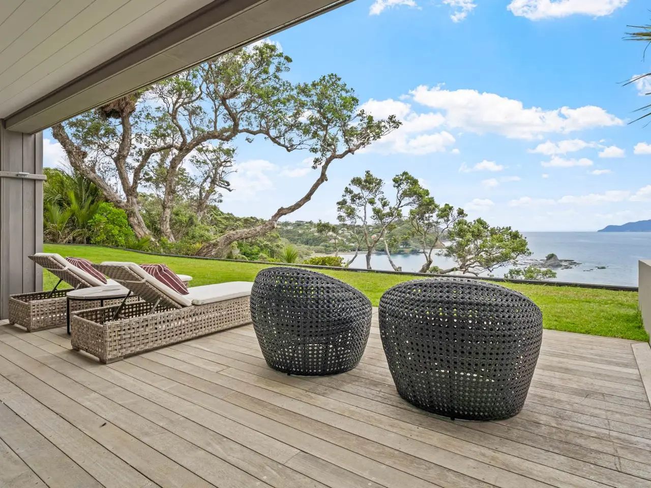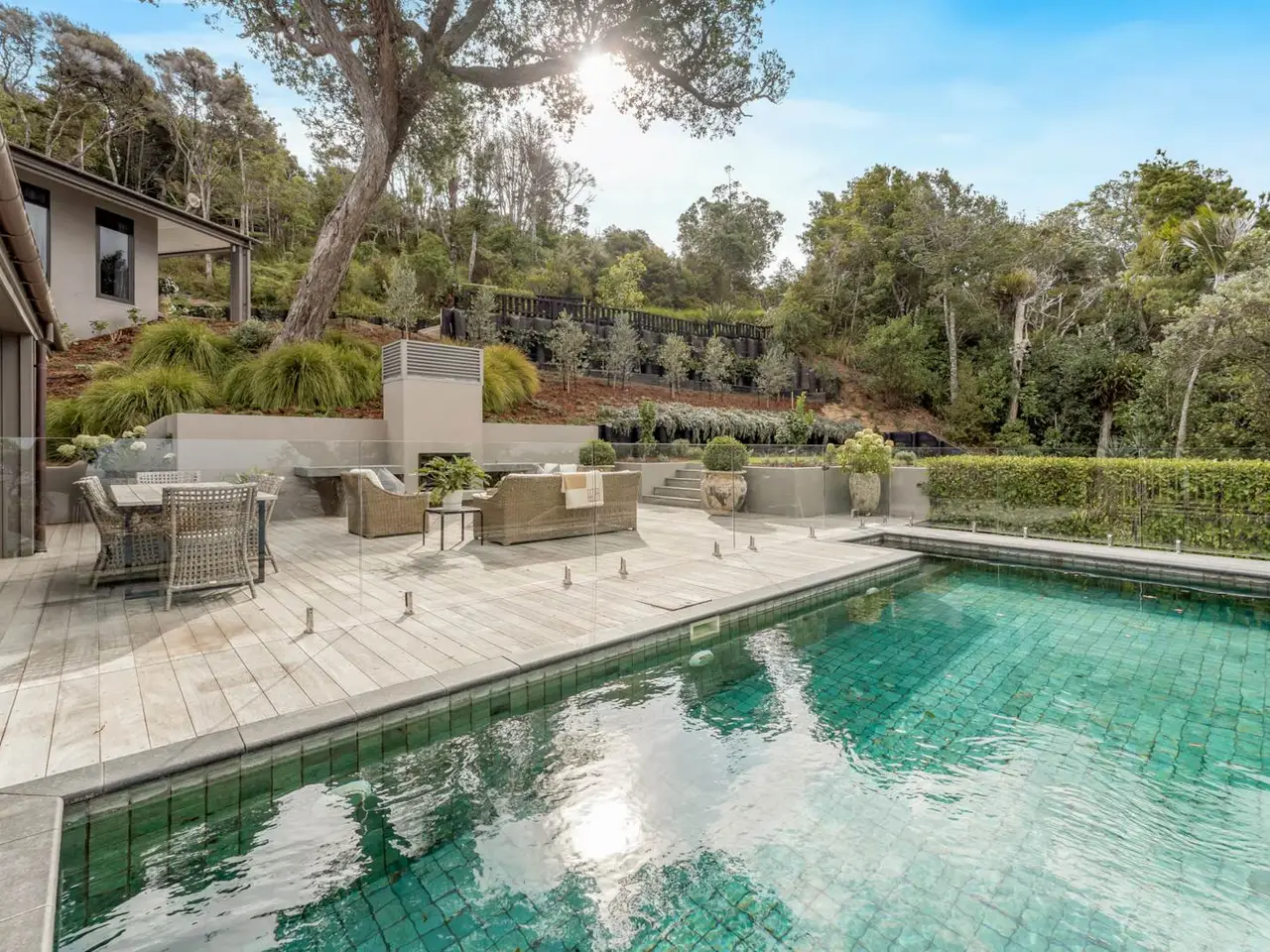 Commanding one of Ti Point’s most dramatic coastal headlands, this contemporary lodge-style home combines natural beauty with refined comfort - a rare sanctuary where everyday life feels like a holiday. Crafted from stone, cedar and glass, the residence sits perfectly within its landscape, surrounded by native bush and framed by panoramic ocean views stretching across Whangateau Harbour to Little Barrier, Great Barrier and the Coromandel beyond. It’s a place where whales and dolphins can often be seen from the terrace - a constant reminder of the extraordinary setting. Set on a large but low-maintenance parcel of land, the home is enveloped by covenanted native bush that ensures total privacy while remaining self-managing. The design brings the outdoors in, with wide terraces, generous glazing and open-plan living that invites light, sea air and the rhythm of the coastline into every room. Inside, the aesthetic is relaxed yet elegant - a sophisticated blend of lodge warmth and coastal calm. The main living area connects seamlessly with the outdoors, while a second lounge provides a quiet retreat for television or reading. There are four bedrooms in the main house, each designed for comfort and positioned to capture the view. A separate bunk room and detached studio provide ideal accommodation for guests, teenagers or staff. Practicality matches beauty, with ample garaging and on-site parking, all discreetly integrated into the landscape. A private cable car glides through the native bush to the water’s edge below, offering effortless access for swimming, kayaking or launching a small boat. Just minutes from Matakana Village and Omaha Beach, and around an hour from Auckland, this is coastal living at its most elevated - contemporary, calm and connected to nature. A home that feels luxurious yet entirely effortless. A true Coastal Icon. This is a Sole Agency listing by James Doole and Kellie Bissett. Contact us to view today.