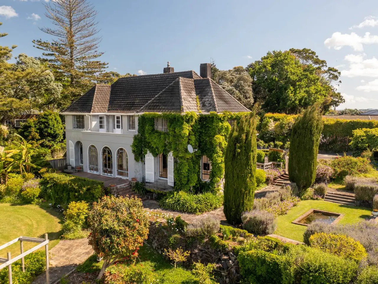 Set across an impressive 11,831 sqm (nearly 3 acres) of mostly level land, this unique holding enjoys direct water access and riparian rights, nestled just a short three-minute stroll from the beach. At its heart stands a distinguished Neo-Georgian residence, originally built in 1937 using solid double-brick and concrete tile. Thoughtfully designed for elegant living, the home features grand living spaces that open seamlessly to expansive lawns, mature gardens, and what was once a private tennis court. The striking curved steel windows and doors flood the interior with natural light and evoke timeless European charm. The main home offers four upstairs bedrooms—each enjoying sea views—along with two bathrooms, a formal lounge, and a separate butler’s kitchen. A former garage has been thoughtfully repurposed into a work-from- home space and additional accommodation. Two separate dwellings offer further living flexibility: • On the eastern boundary, a spacious auxiliary building accommodates multiple living zones, kitchens, bedrooms, and bathrooms — ideal for extended family or guests. • To the west, a multi-room dormitory wing is currently configured as a six-bedroom lodge with a large communal hall. A gently winding path at the edge of the garden leads to a quiet, hidden cove below — a rare coastal retreat offering complete seclusion. Whether you’re looking to create a generational family sanctuary, explore future development or subdivision potential (subject to council approval), or simply secure one of Mellons Bay’s most iconic parcels, this property presents endless opportunity. Zoned for Macleans College, Bucklands Beach Intermediate, Mellons Bay School. The privilege of ownership is now yours to pursue. Private viewings available by appointment.
