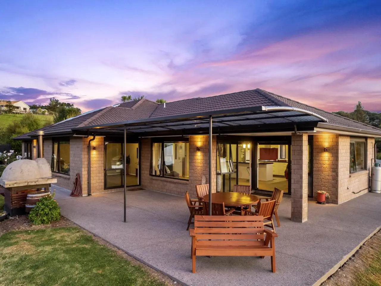 Seeking extended family living in an idyllic natural setting that chimes to the daily birdsong of Tuis & native birdlife? This contemporary 354m2 residence provides the benefit of two separate homes, offering independence & space. The main dwelling suitable for a large family is complimented with asecond (attached) minor dwelling. Perfect as a home & rental also.Enjoy modern living conveniences & sustainable living off the land, growing organic fruit & vegetables with fresh eggs for breakfast & reduce your monthly power bills, thanks to solarpower. Set on a serenely private one hectare – fully fenced, 2.5 acre wonderland, you’ll enjoy stunningly scenic panoramic views. The pad’s in place awaiting your spa pool & the outdoor pizza oven is ready for gourmet pizza! A hidden dog fence provides pet security peace of mind also.The seamless floorplan successfully merges single level living across the two homes.Primary residence:Four bedrooms including master bedroom suite, en-suite bathroom, walk in robe plus three double bedrooms & family bathroom. The open plan kitchen, living & dining room is anentertainer’s joy with plentiful space, showcased by panoramic views from all angles. An adjoining second living room is the perfect place for kicking back & relaxing in the evening. Access to the Archgola covered patio off the living is seamless for supreme outdoor living & alfresco dining.Secondary residence:One bedroom plus study: Includes master & study suitable as home office, open plan dining, kitchen & living with main bathroom. An Archgola covered patio accesses off the masterfor easy outdoor living.Located only 20 minutes from Silverdale and Westgate. Inspect today!