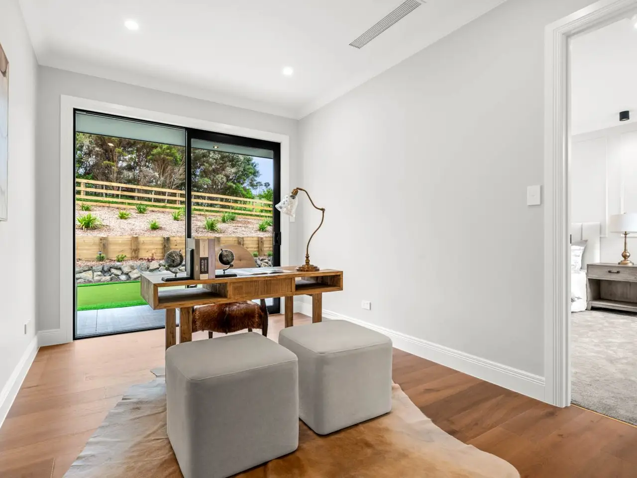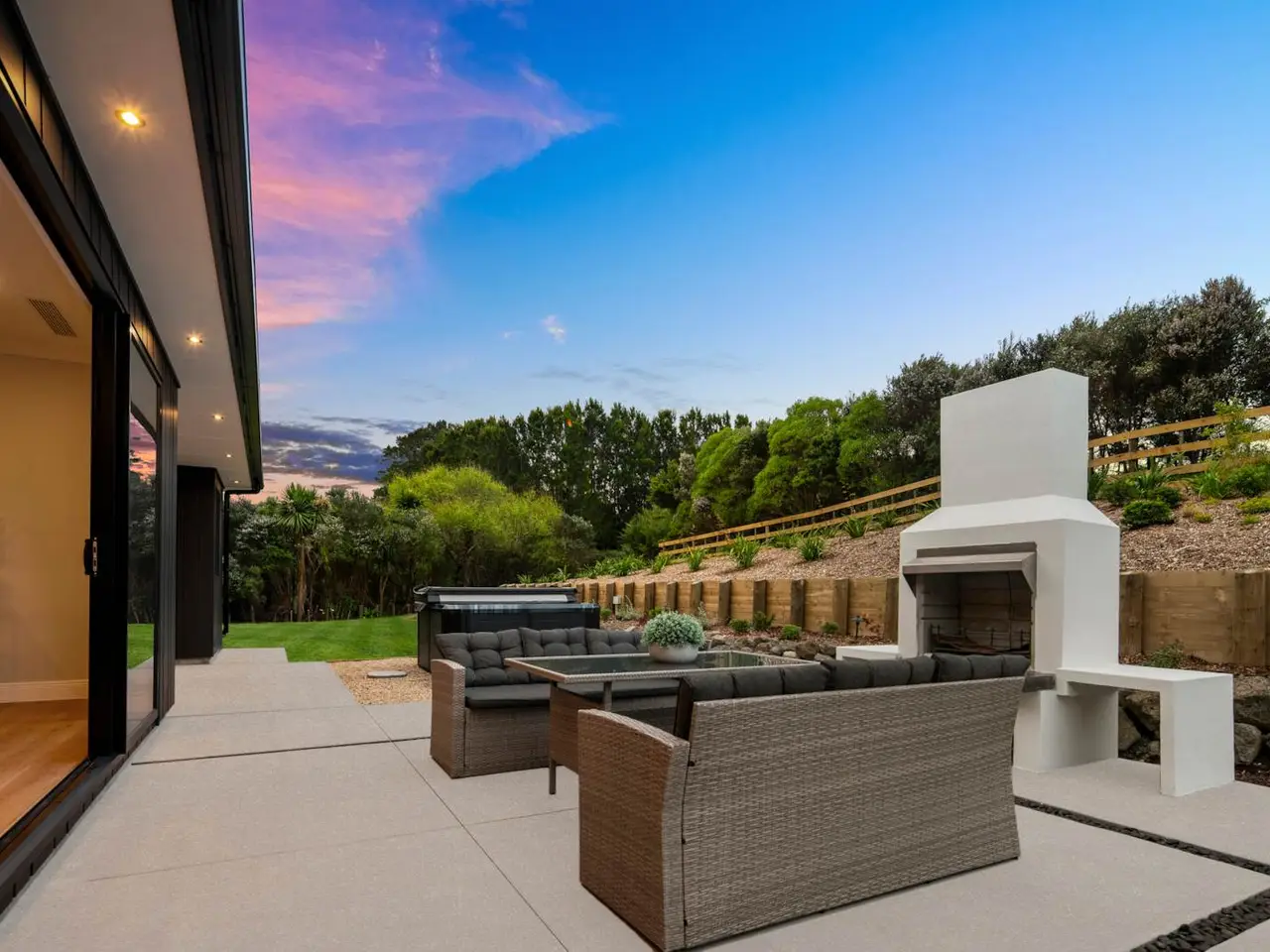 Upon arrival, it's evident that this is no ordinary residence. This brand-new, American Luxury-style home masterfully combines timeless elegance with modern practicality, offering sophistication and comfort for the contemporary family. Set on 1.37 hectares of Future Urban Zoned land, this property offers the serenity of countryside living while being just 10 minutes drive from both Albany and Silverdale. This is a rare balance of privacy, lifestyle, and accessibility. Covered by a comprehensive 10-Year Master Builder Guarantee and a 12-Month Vendor Warranty for complete peace of mind. Boasting approximately 307m² of expertly designed living space, the home features multiple expansive living areas and generously sized bedrooms. Soaring ceilings, bespoke cabinetry, premium finishes, and refined interior detailing elevate every aspect of the home. At its heart lies a designer kitchen, complete with a hidden scullery, perfect for entertainers and families alike. The adjoining dining space flows effortlessly into the central living hall, where a statement fireplace and panoramic rural views create an atmosphere of warmth. The layout is intelligently zoned: one wing holds a private two-bedroom guest suite (with a bar and wine cabinet), and the opposite wing hosts three further bedrooms, including a sumptuous master suite with ample privacy. Step outside to discover your own resort-style sanctuary. The landscaped grounds include a six-car front parking area, a spacious backyard with a spa, outdoor fireplace, and a custom golf putting green—designed for both relaxation and recreation. For those seeking lifestyle farming, the adjacent land is ideal for keeping animals. With the upcoming Penlink Highway set to significantly enhance regional connectivity, this property presents not only an exceptional lifestyle opportunity but also outstanding long-term investment potential. Conveniently located just 30 minutes from Auckland’s CBD, and zoned for highly regarded schools including Dairy Flat School, Albany Junior and Senior High Schools, and Orewa College, this property is perfectly positioned for family life and future growth. An extraordinary home in a strategic location—experience the ultimate in rural luxury. Auction: 8-12 The Promenade, Takapuna on Thursday 6 November 2025 at 10:00AM (unless sold prior)