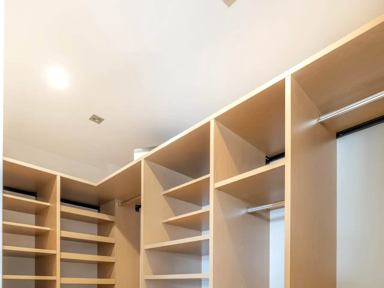 Fitted walk-in wardrobe in main bedroom with sea vista