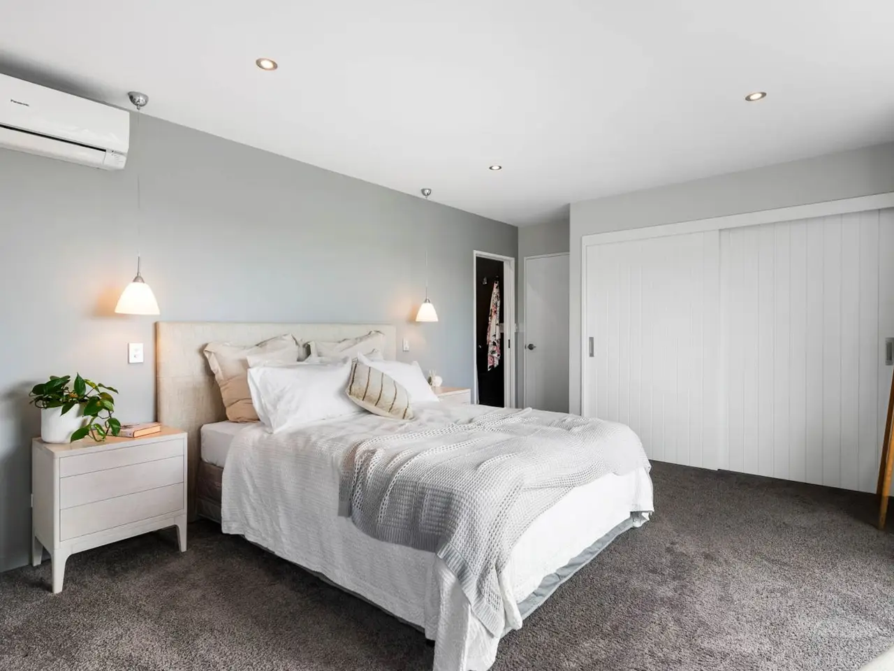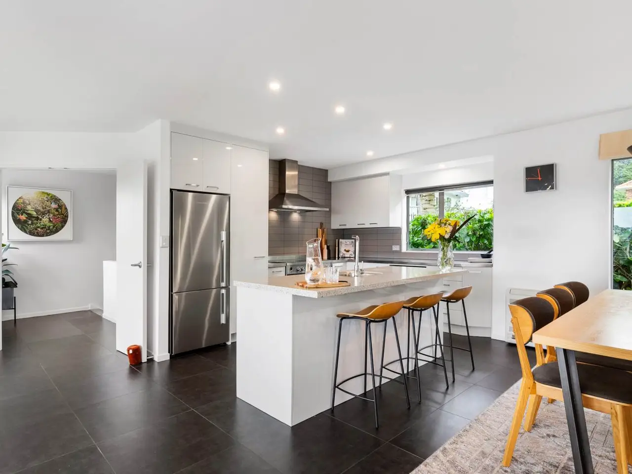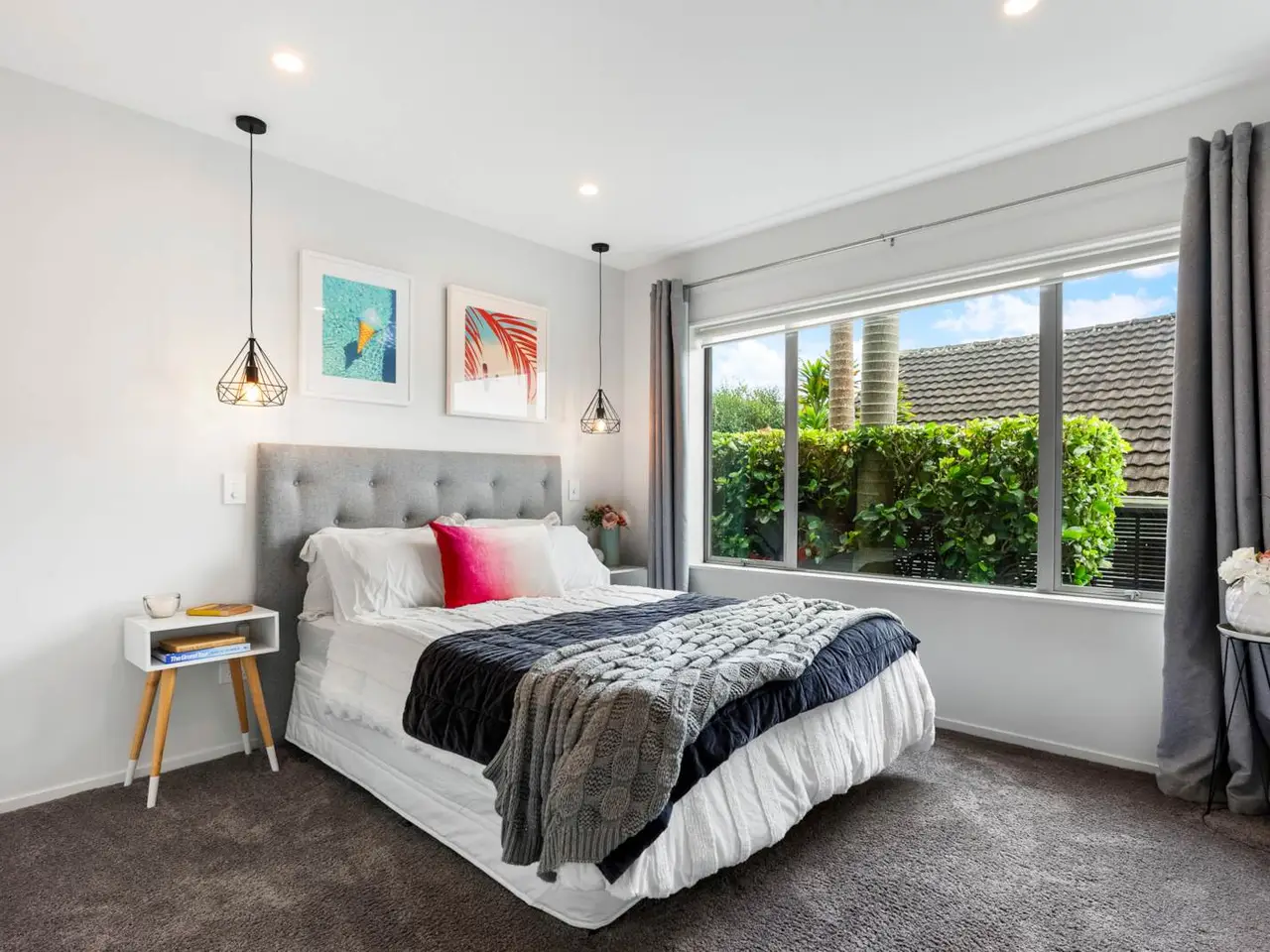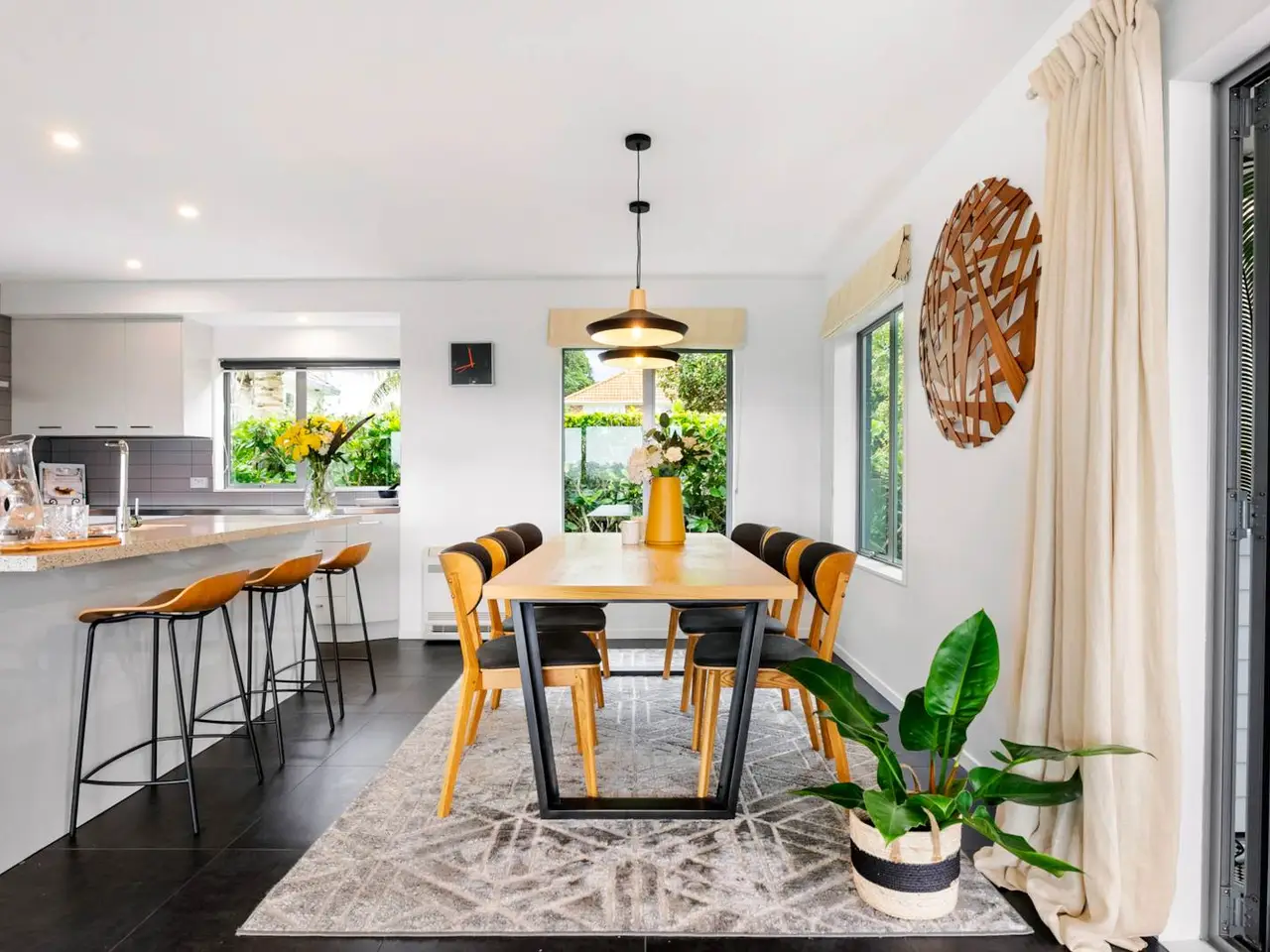 Tucked privately on a rear section, this lofty brick and weatherboard residence enjoys tantalising glimpses of the Waitemata Harbour, and the surrounding urban landscape. Towering Nikau palms and lush tropical foliage create a private, tranquil setting within an exclusive coastal enclave, just an easy walk to Mission Bay's iconic shoreline, cafés, and beaches.A thoughtful 211sqm (approx.) floor plan positions all north-facing living on the upper level, capturing abundant natural light, expansive urban vistas, and shafts of water views. Aluminium joinery enhances comfort throughout generous open plan living and dining areas that connect seamlessly through bifold doors to a substantial covered loggia with built-in seating. The contemporary kitchen features stainless steel appliances, stone-topped island, and ample storage, creating an ideal hub for everyday living and entertaining.Carpeted double bedrooms include a serene upper-level main suite with heat pump, monochrome ensuite, and extensive built-in wardrobes. A fifth bedroom downstairs offers versatility as a second lounge, complemented by a large family bathroom with sleek black fixtures, freestanding bath, and modern vanity. Two powder rooms, one on each level, enhance convenience. The carpeted internal-access double garage incorporates laundry and storage, with additional off-street parking and low-maintenance garden pockets ideal for alfresco dining. Close to city commuter routes, Orakei School, in-zone Selwyn College, and Eastridge's shops and eateries, this secluded coastal haven delivers relaxed, resort-style living just moments from the beach. Auction: 34 Shortland Street, City on Wednesday 19 November 2025 at 10:00AM (unless sold prior)