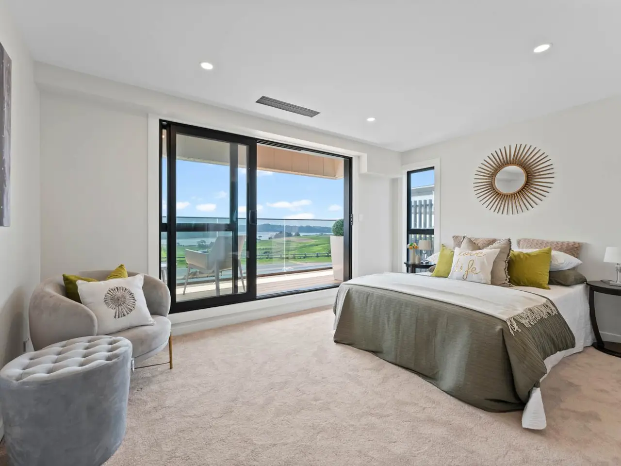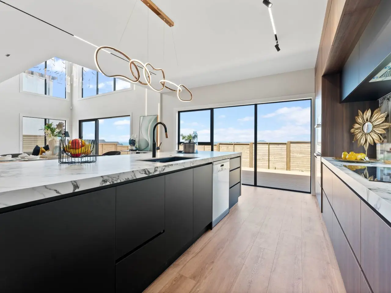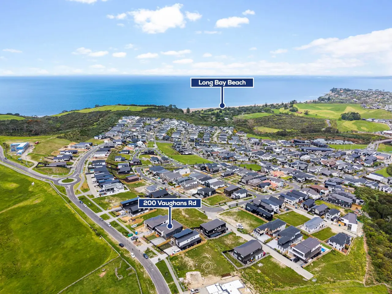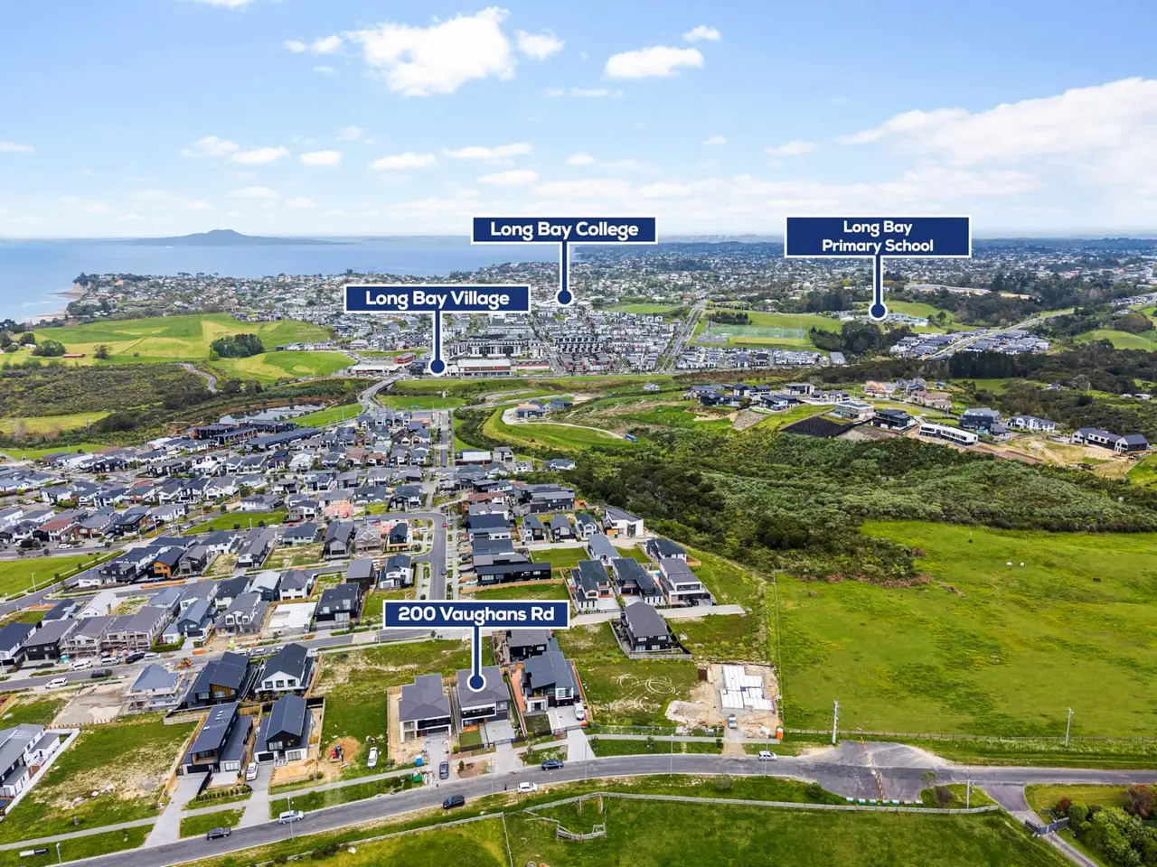 Set on coveted Vaughans Road, this home is a rare masterpiece where breathtaking double views — from tranquil countryside and sparkling sea to Long Bay Village and Rangitoto Island — meet top-notch contemporary design and state-of-the-art living.Resting on a flat freehold section, this two-story home stands out with premium weatherboard and cultured stone accents. Its thoughtfully designed layout includes two kitchens, open dining and living area, five bedrooms with 4.5 bathrooms — including three ensuites — and a well-appointed laundry for everyday convenience.Step inside, and a breathtaking sense of space unfolds. The living and dining areas soar under a double-height ceiling, flooded with light from towering glass walls and framed by uninterrupted views of Long Bay Village, Rangitoto Island, and the sea — a true living-room masterpiece. A double-sided gas fireplace adds warmth, while central air-conditioning ensures year-round comfort. The designer kitchen boasts an artful island, Miele appliances, a built-in wine wall, with a second fully equipped kitchen providing versatile culinary options. One bedroom with ensuite on the ground floor offers convenience for guests, grown-up kids, or elderly family members.Ascend to the upper level, where a spacious lounge with a private mini bar provides a serene retreat for quiet moments or intimate gatherings, framed by sweeping panoramic views of the village, Rangitoto and the sea. Each of the four bedrooms on the first floor, including two master suites, is graced with its own remarkable view — whether serene farmland and sparkling sea, or the village and Rangitoto Island.Step outside, you will enjoy a contemporary garden with charming entry flowerbeds, and a rear deck that flows seamlessly from the living area into a private sanctuary — perfect for alfresco dining, BBQs, or simply enjoying the sunshine and views. Just minutes from Long Bay Village Centre — with its cafés, restaurants, shops, and Long Bay Primary and Long Bay College — this home blends rare seclusion with everyday convenience. Carefully designed and built, this home is now sincerely presented to discerning buyers. Don’t miss this exceptional opportunity to own a top-tier Long Bay residence — call us now! Auction: 8-12 The Promenade, Takapuna on Wednesday 26 November 2025 at 9:30AM (unless sold prior)