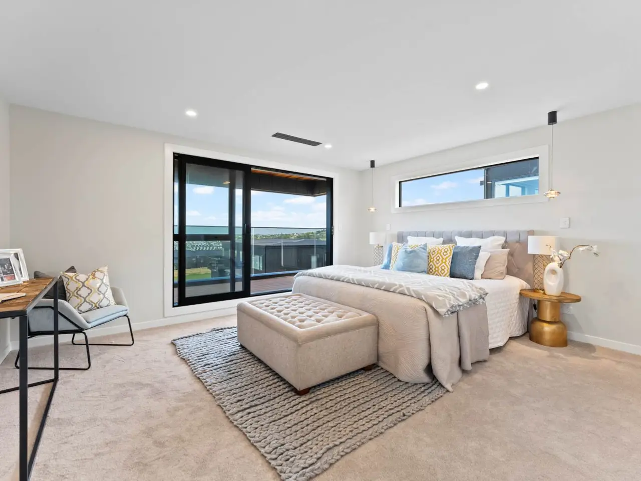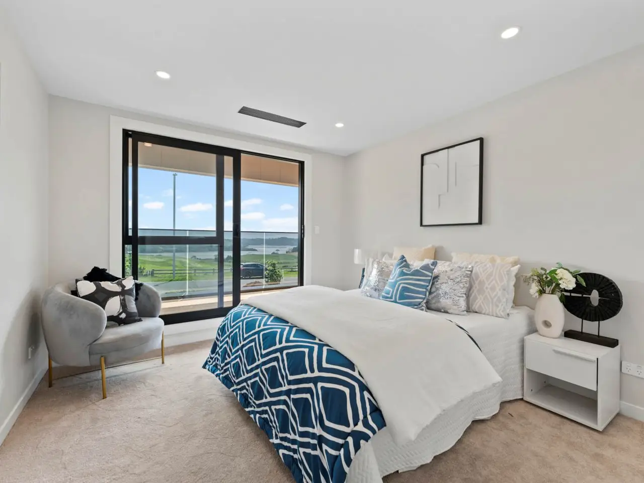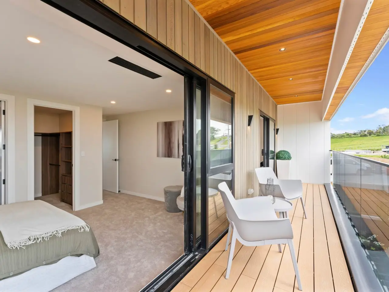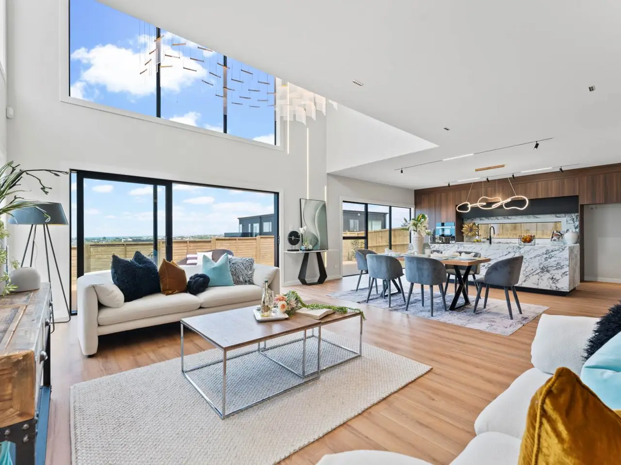 Set on coveted Vaughans Road, this home is a rare masterpiece where breathtaking double views — from tranquil countryside and sparkling sea to Long Bay Village and Rangitoto Island — meet top-notch contemporary design and state-of-the-art living.Resting on a flat freehold section, this two-story home stands out with premium weatherboard and cultured stone accents. Its thoughtfully designed layout includes two kitchens, open dining and living area, five bedrooms with 4.5 bathrooms — including three ensuites — and a well-appointed laundry for everyday convenience.Step inside, and a breathtaking sense of space unfolds. The living and dining areas soar under a double-height ceiling, flooded with light from towering glass walls and framed by uninterrupted views of Long Bay Village, Rangitoto Island, and the sea — a true living-room masterpiece. A double-sided gas fireplace adds warmth, while central air-conditioning ensures year-round comfort. The designer kitchen boasts an artful island, Miele appliances, a built-in wine wall, with a second fully equipped kitchen providing versatile culinary options. One bedroom with ensuite on the ground floor offers convenience for guests, grown-up kids, or elderly family members.Ascend to the upper level, where a spacious lounge with a private mini bar provides a serene retreat for quiet moments or intimate gatherings, framed by sweeping panoramic views of the village, Rangitoto and the sea. Each of the four bedrooms on the first floor, including two master suites, is graced with its own remarkable view — whether serene farmland and sparkling sea, or the village and Rangitoto Island.Step outside, you will enjoy a contemporary garden with charming entry flowerbeds, and a rear deck that flows seamlessly from the living area into a private sanctuary — perfect for alfresco dining, BBQs, or simply enjoying the sunshine and views. Just minutes from Long Bay Village Centre — with its cafés, restaurants, shops, and Long Bay Primary and Long Bay College — this home blends rare seclusion with everyday convenience. Carefully designed and built, this home is now sincerely presented to discerning buyers. Don’t miss this exceptional opportunity to own a top-tier Long Bay residence — call us now! Auction: 8-12 The Promenade, Takapuna on Wednesday 26 November 2025 at 9:30AM (unless sold prior)