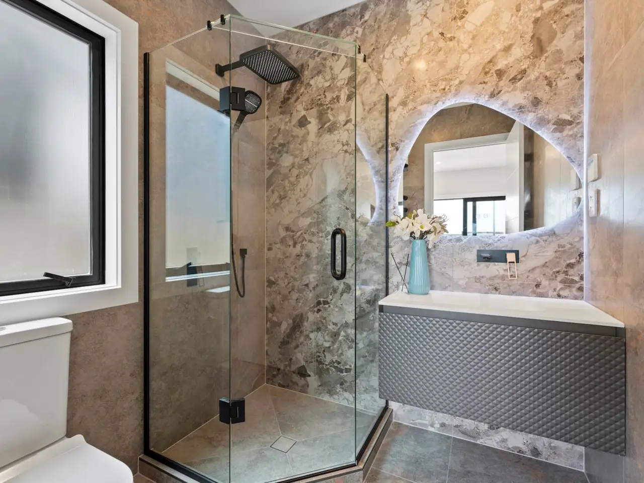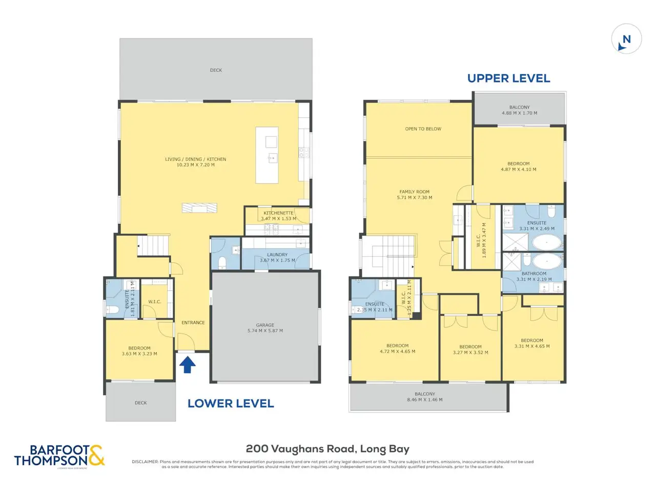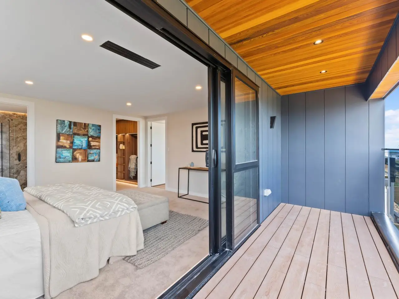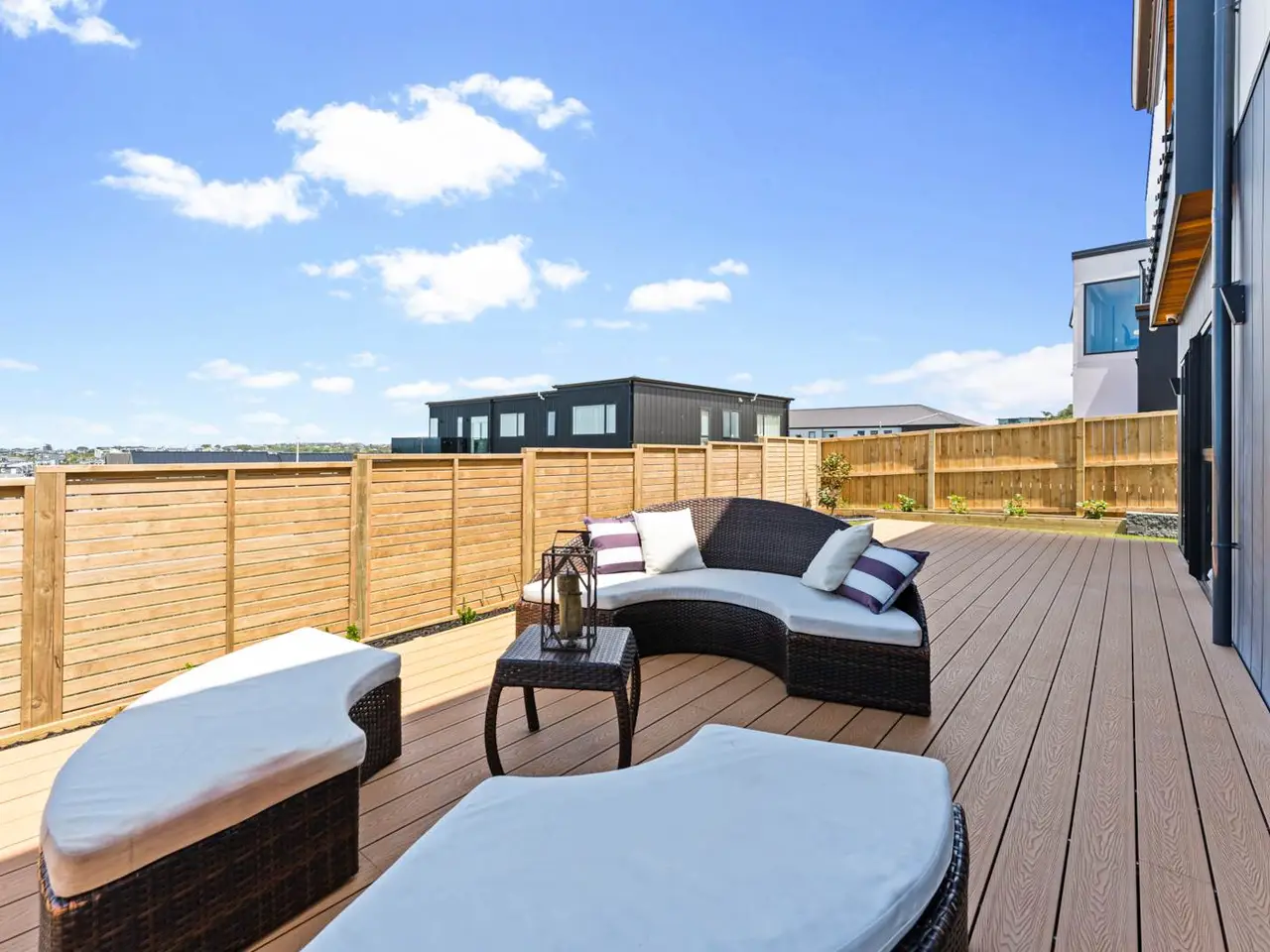 Set on coveted Vaughans Road, this home is a rare masterpiece where breathtaking double views — from tranquil countryside and sparkling sea to Long Bay Village and Rangitoto Island — meet top-notch contemporary design and state-of-the-art living.Resting on a flat freehold section, this two-story home stands out with premium weatherboard and cultured stone accents. Its thoughtfully designed layout includes two kitchens, open dining and living area, five bedrooms with 4.5 bathrooms — including three ensuites — and a well-appointed laundry for everyday convenience.Step inside, and a breathtaking sense of space unfolds. The living and dining areas soar under a double-height ceiling, flooded with light from towering glass walls and framed by uninterrupted views of Long Bay Village, Rangitoto Island, and the sea — a true living-room masterpiece. A double-sided gas fireplace adds warmth, while central air-conditioning ensures year-round comfort. The designer kitchen boasts an artful island, Miele appliances, a built-in wine wall, with a second fully equipped kitchen providing versatile culinary options. One bedroom with ensuite on the ground floor offers convenience for guests, grown-up kids, or elderly family members.Ascend to the upper level, where a spacious lounge with a private mini bar provides a serene retreat for quiet moments or intimate gatherings, framed by sweeping panoramic views of the village, Rangitoto and the sea. Each of the four bedrooms on the first floor, including two master suites, is graced with its own remarkable view — whether serene farmland and sparkling sea, or the village and Rangitoto Island.Step outside, you will enjoy a contemporary garden with charming entry flowerbeds, and a rear deck that flows seamlessly from the living area into a private sanctuary — perfect for alfresco dining, BBQs, or simply enjoying the sunshine and views. Just minutes from Long Bay Village Centre — with its cafés, restaurants, shops, and Long Bay Primary and Long Bay College — this home blends rare seclusion with everyday convenience. Carefully designed and built, this home is now sincerely presented to discerning buyers. Don’t miss this exceptional opportunity to own a top-tier Long Bay residence — call us now! Auction: 8-12 The Promenade, Takapuna on Wednesday 26 November 2025 at 9:30AM (unless sold prior)
