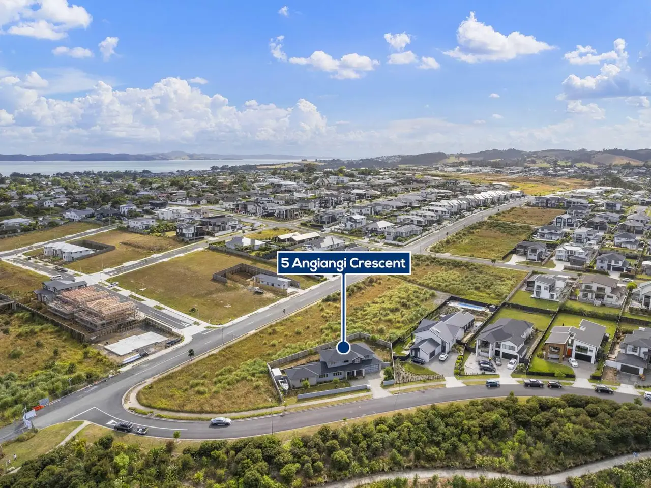 Welcome to 5 Angiangi Crescent, a remarkable 5-bedroom, 3-bathroom home that redefines family living. With 357m² of floor space and a 944m² section, this residence delivers an exceptional blend of expansive living and has the added bonus of 3 car garaging.The lower level features a large open-plan kitchen, dining, and lounge area, seamlessly connected to a second living room. Both spaces open to a north-facing deck through bi-folding doors, providing the perfect environment for outdoor entertaining. The modern kitchen is a chef’s dream, with a double oven, gas cooktop, and a cleverly concealed scullery, ensuring both style and practicality. A bedroom, bathroom, and internal garage access, along with a separate laundry, complete this level.Upstairs, the master suite is an expansive retreat, complete with its own ensuite and walk-in wardrobe. The four additional bedrooms are all generously sized, while a large void area at the top of the stairs offers a versatile space that could easily serve as a third living room or study.Comfort is guaranteed year-round, with central air conditioning across three zones and a ventilation system throughout. The striking wooden flooring, combining rosewood and vitex on the lower level, adds warmth and sophistication to the modern aesthetic.Located in a peaceful street with a reserve opposite, this home is just a 10-minute walk to Pine Harbour Marina, where you’ll find cafés, restaurants, and a convenient ferry service that takes you to downtown Auckland in just 35 minutes.A "5 out of 5" home that delivers on every level - spacious and meticulously designed for modern family living.