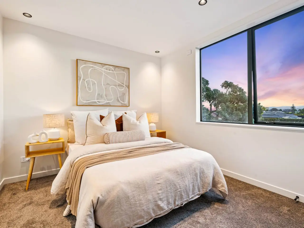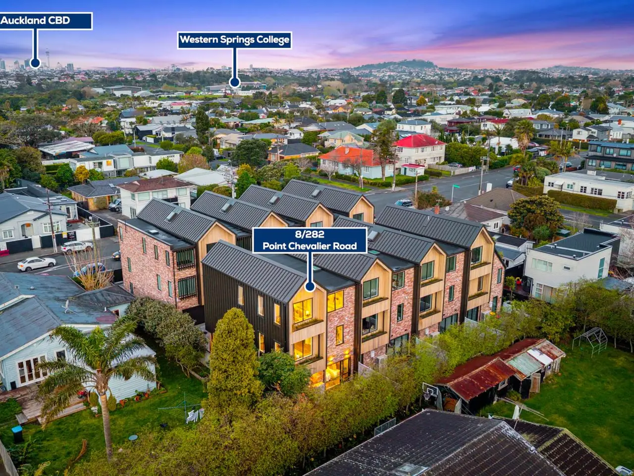 Titles have been issued, and this premium home is ready for immediate possession. Welcome to Pt Chev On Point—an exclusive gated enclave in one of Point Chevalier’s most sought-after positions, north of Meola Road and just minutes from the city. Residence 8/282 Point Chevalier Road is brand new, architecturally designed, and one of only eight. Spanning three levels and over 220m², it offers generous, high-stud living enhanced by sea views through full-height double-glazed windows. Here are just some of the features • Stamford Ten-Year Build Warranty • Prime location north of Meola Road • Expansive 220m²+ high-stud layout • North/West corner for sun-filled living • Elite kitchen with Bosch Black appliances + scullery • Double garage with internal access • Smart home technology throughout • Freehold Title (no BC fees) • Ducted air conditioning, gas cooking & water heating • Secure gated community The ground floor features a sun-soaked lawn, a guest suite or rumpus, a bathroom, and an internal access garage. The mid-level showcases open-plan living with a sleek kitchen, stone benches, and balcony entertaining. Upstairs, three double bedrooms include a master with an ensuite, walk-in robe, private balcony, and cathedral-ceiling bathroom. Finished to an exceptional standard with timber flooring, Feltex carpet, tiled underfloor-heated bathrooms, and integrated smart tech, this is a home that truly delivers. Zoned for top schools and within walking distance to Pt Chev Beach, cafés, and parks—this is prime lifestyle living.