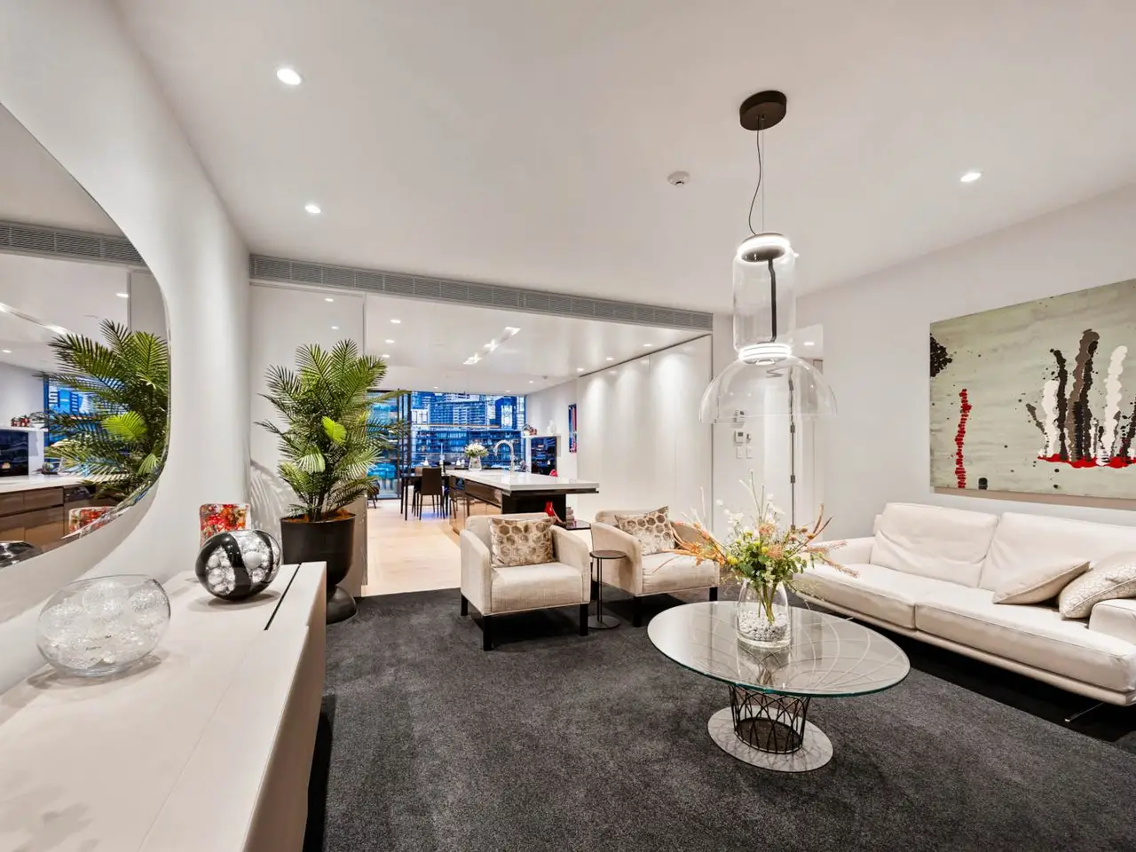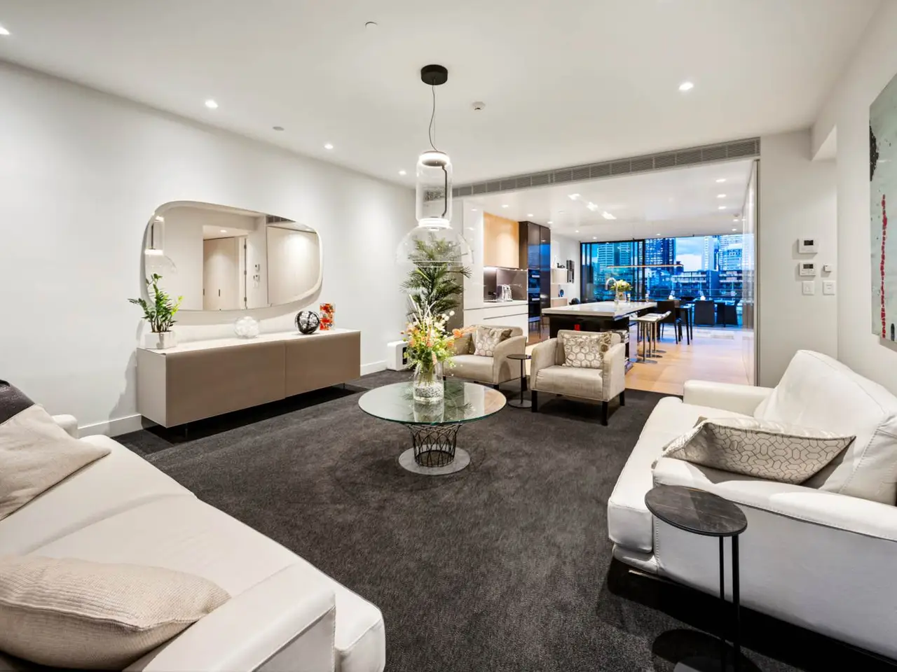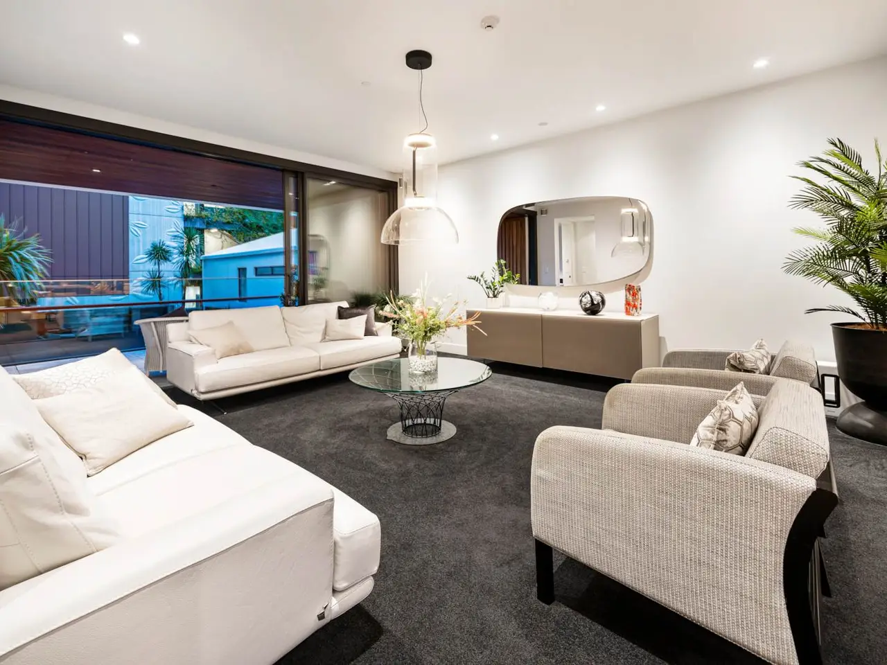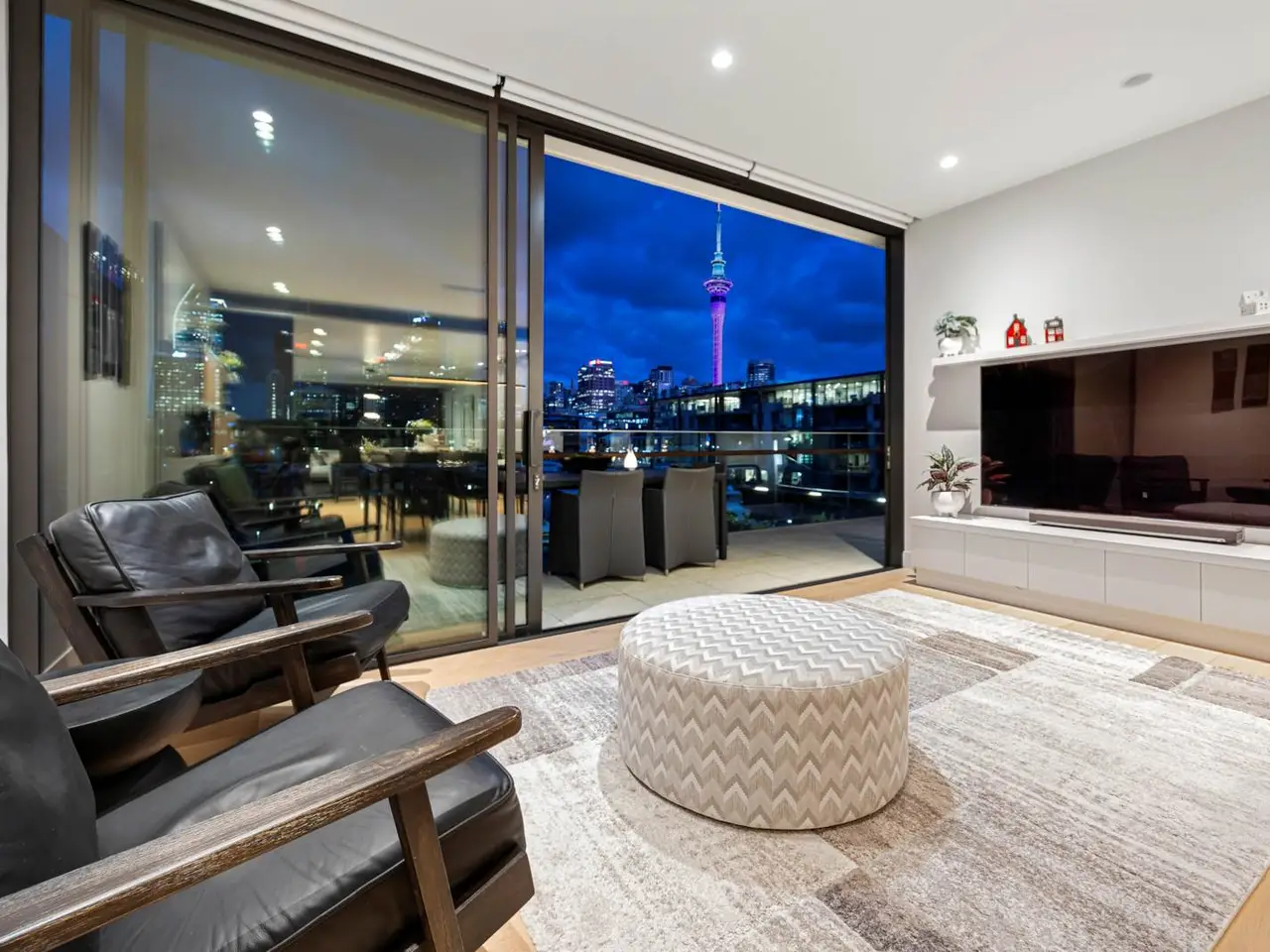 This sumptuous two bedroom apartment in the acclaimed 132 Halsey Residences aside the Viaduct Harbour in the heart of the vibrant Wynyard Quarter is simply stunning. With the CBD, the harbour, an array of celebrated cafés, restaurants, the ASB Waterfront Theatre, Events Centre, and the five-star Park Hyatt Hotel at your doorstep, where else would you want to be. Designed for luxurious city living with uncompromising quality, the apartment encompasses 134m² of living plus 33m² of balconies, the open-plan layout, running east to west, flows seamlessly to two generous balconies, perfect for morning coffee or evening entertaining whilst soaking up the captivating Viaduct Harbour vista and glittering city skyline. This sophisticated home has so many stunning features, a bespoke kitchen fitted with premium Miele appliances, high-gloss lacquer cabinetry, intelligent storage and a striking benchtop. The deluxe, fully tiled bathroom showcases European fittings, while the master suite indulges with its own private balcony access, a walk-in wardrobe, and a sumptuous ensuite. High-quality finishes throughout include porcelain stoneware and warm timber accents, recessed and feature lighting and automatic blinds, along with luxurious plush pile carpet. Add to this a dedicated lobby area to just one other apartment, secure car parking, a storage unit and access to premium residents’ first-class amenities, including a gym, boutique 16-seat cinema, and business centre. This is an opportunity for the most discerning buyer seeking the very best in location, luxury, and lifestyle.