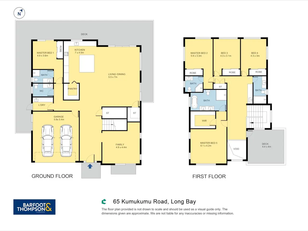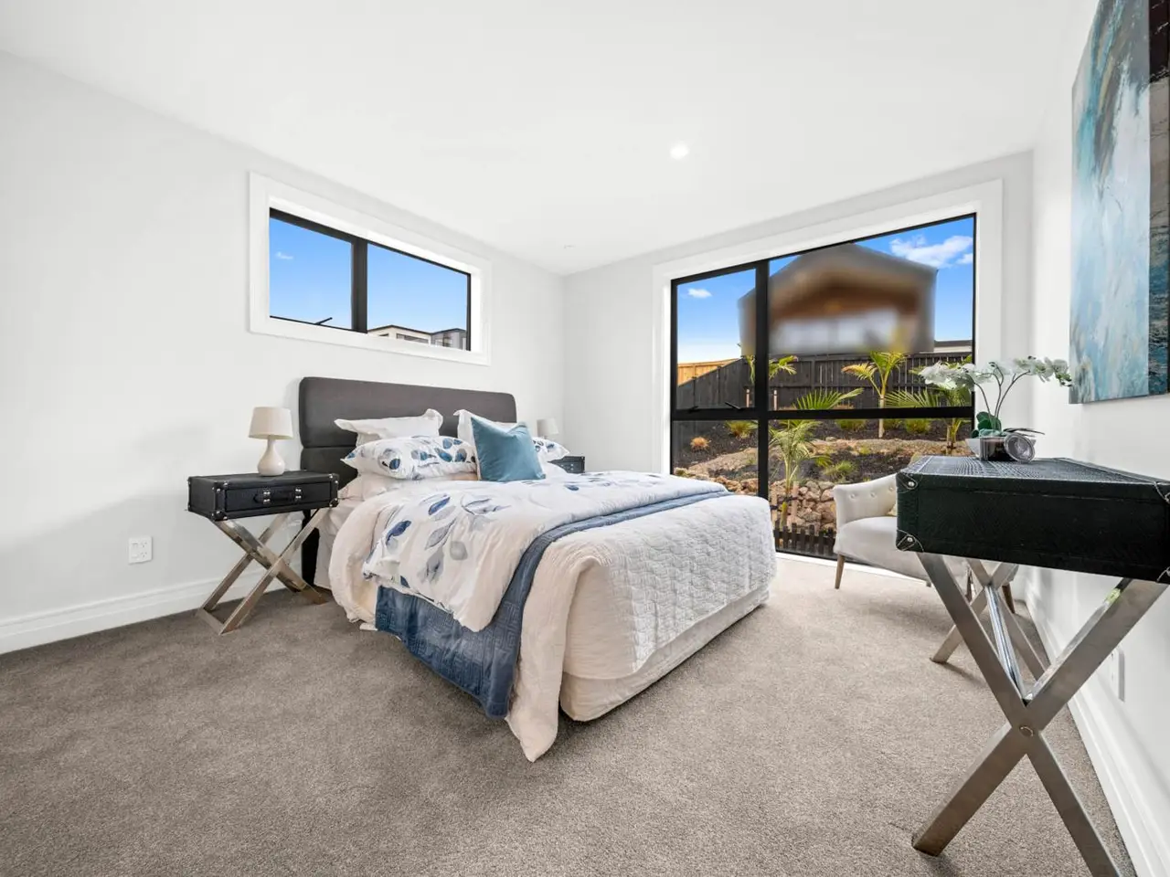 Located on one of Long Bay’s most sought-after streets, this stunning home enjoys elevated views that make the whole space feel open, bright and inviting. Just a short stroll takes you to Long Bay Beach and the vibrant Long Bay Village — home to cafés, restaurants, boutique shops and a New World supermarket. Step inside to discover an elegant and thoughtfully designed interior. The ground floor features a modern open-plan layout — the main kitchen with a generous walk-in pantry, dining and living areas, a separate lounge, and a convenient guest bathroom. There’s also a large bedroom with an en-suite and its own private entrance, perfect for guests or extended family. Upstairs offers plush carpets for cosy living, with four spacious double bedrooms — two with their own en-suites — plus a stylish family bathroom. The second lounge opens to a large deck showcasing elevated views of the sea and Long Bay. This home comes fully equipped with premium features including top-of-the-line German Miele kitchen appliances, central air conditioning, underfloor heating in all bathrooms, a video door security system, and warm LED lighting throughout. Every detail has been designed with comfort and style in mind — this is the modern coastal lifestyle at its best. Deadline sale: Closes on Wednesday 29 October 2025 at 4:00PM (unless sold prior)