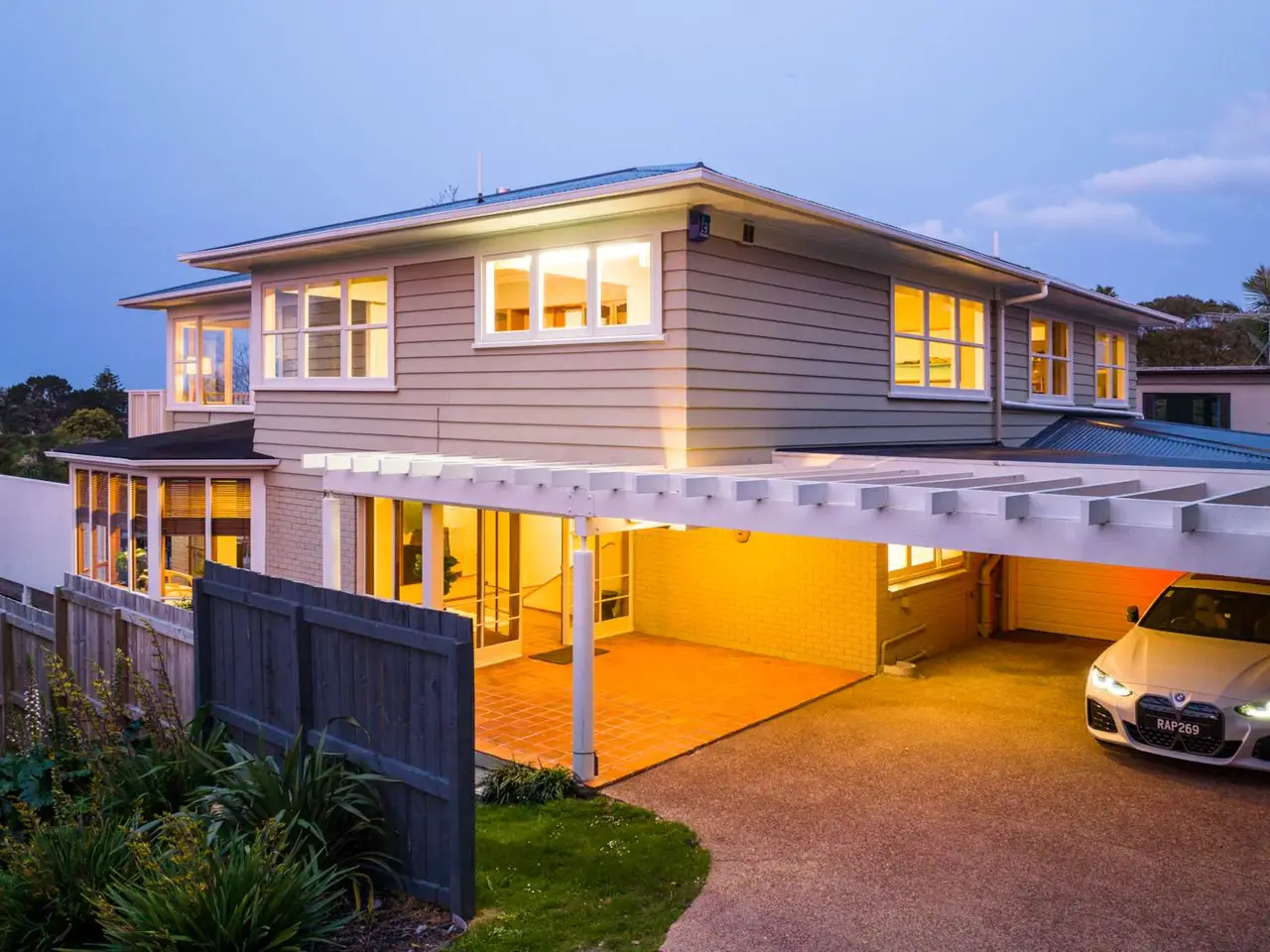 All the best classic features from the 1960s give this wonderfully spacious solid brick and weatherboard home an irresistible feel-good California vibe that coaxes you torelax. Far from the road, the peaceful private freehold on a full site property enjoysfantastic sun and a north facing leafy outlook over Kohi Forest to Rangitoto Island.An enormous 4 car garage with workshop/gym and double carport ease seamlesslythrough the large entry to a downstairs lounge, opening to a entertainer’s sun-drenched terrace and huge level lawn – plenty of room for a pool. In Winter, snuggleup to the real fire in a classic brick feature wall. Surrounded by floor to ceiling timber-framed windows, the room has a beautiful light ambience. With ducted air con, themain living is upstairs. Decks surround a 2nd lounge with sweeping views and there isformal dining plus a breakfast room off the kitchen.On the lower level, 2 generous bedrooms share a bathroom plus a photographer’s dark room/utility room and children’s play room provide versatility. Upstairs, along with anoffice, there are 2 more bedrooms which both have modernised bathrooms. Themaster has a walk-in wardrobe and ensuite.The existing home is gorgeous with a great family layout and has huge potential. Architectural concept plans have been produced to modernise and add even more space. Consider it a launch pad for your dreams. Zoned for StThomas School, Selwyn College and Baradene College. So, get down the drive andcreate your own magic in this architecturally timeless 60s gem. Auction: 34 Shortland Street, City on Wednesday 19 November 2025 at 10:00AM (unless sold prior)