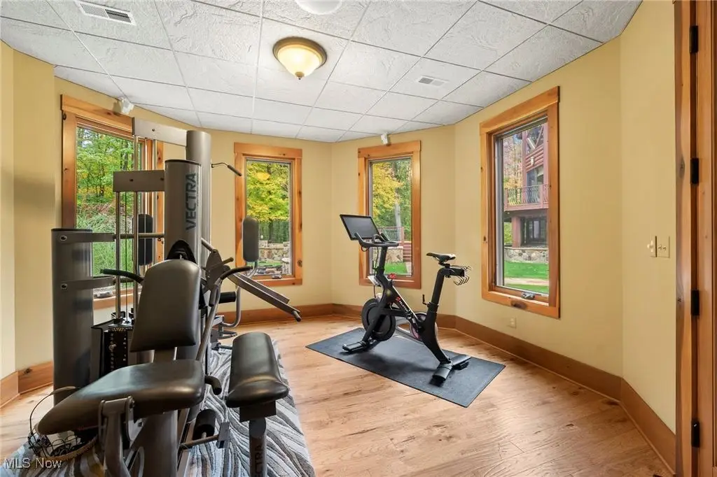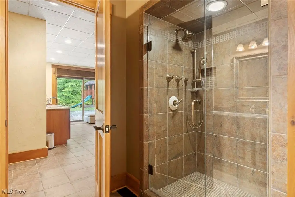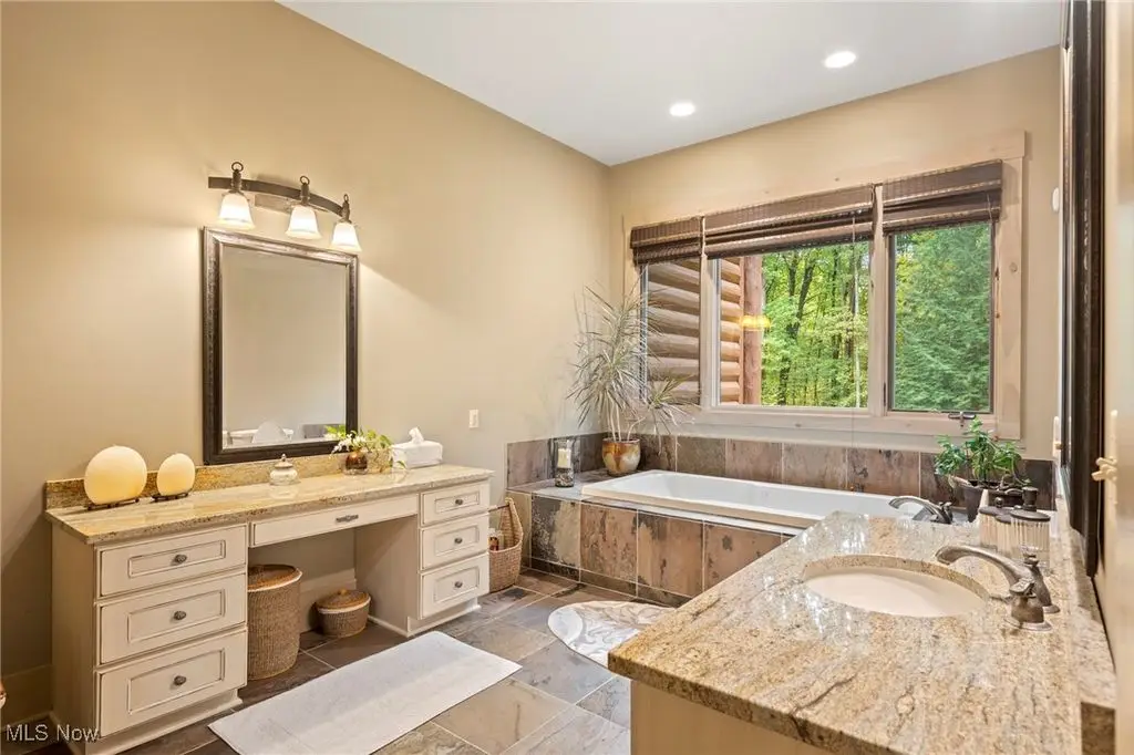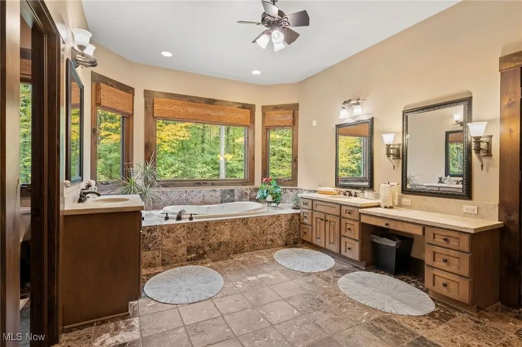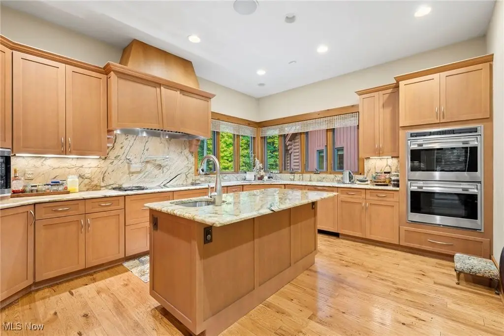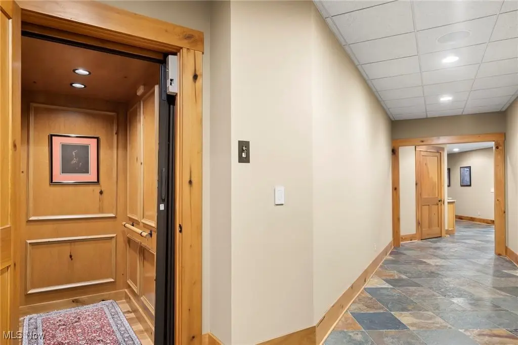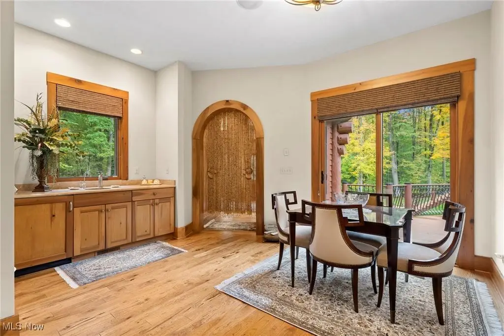 Nestled in the most spectacular almost 18 acre enclave, this private retreat unveils a breathtaking sanctuary, where nature's grandeur converges with the elegance of a stone and timber mountain modern home! The property with Chagrin River frontage sprawls over pristine wilderness and fabulously landscaped grounds, affording absolute seclusion and serenity. Enter through a spectacular gated entrance and travel down the meandering driveway unveiling the stunning residence! The home's exterior is a harmonious blend of stone and timber and integrates perfectly into its natural surrounding! Walking through the front door, one will immediately notice the soaring ceilings, walls of windows, and open design concept! This home is an exquisite balance of rugged and refined! The main great room boasts a cathedral ceiling adorned with exposed timber beams and a magnificent two story stone fireplace! Open to the great room is the incredible gourmet kitchen which is designed for entertaining and features a huge dining room area with fireplace, immense center island , and high end appliances! Each bedroom area on the main level is a private suite! The owner's wing is absolutely luxurious beyond compare offering a library, private kitchen, spectacular bedroom, sitting room, dual bathrooms, walk-in dressing rooms, and more! The walk out lower level is yet another incredible space with multiple entertaining rooms, bedroom suites, and even a television studio! 6+ car garage! One of a kind!!