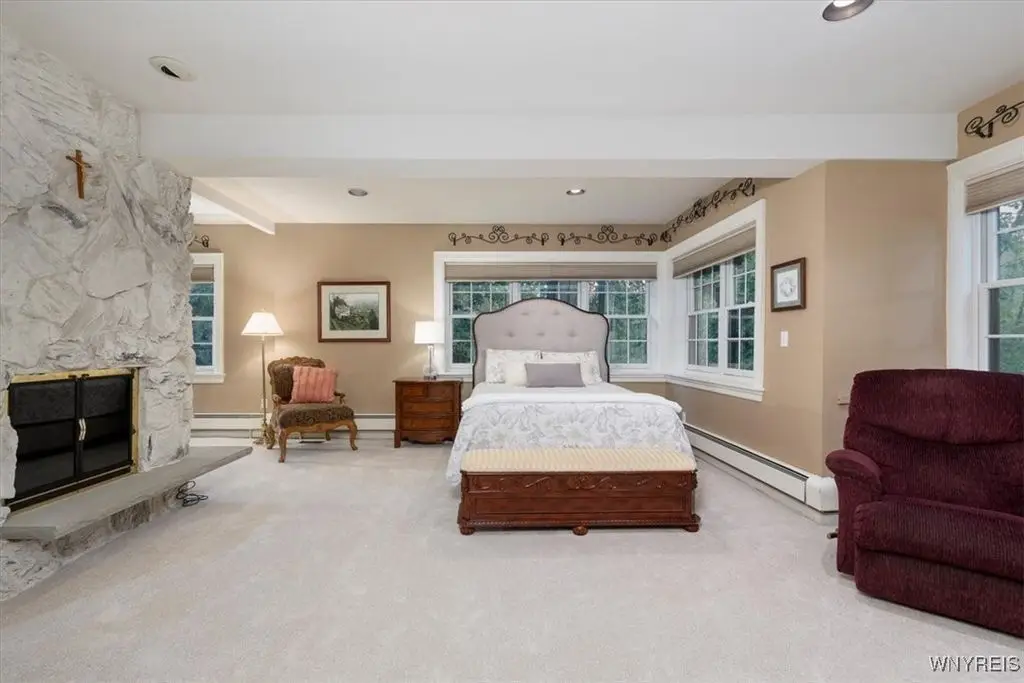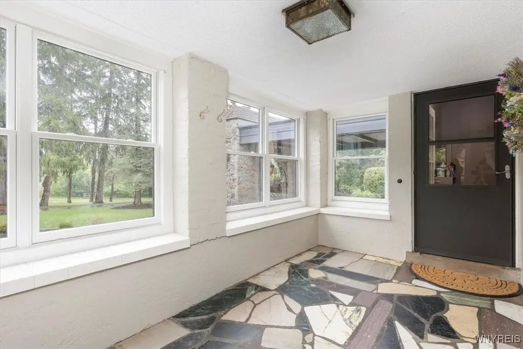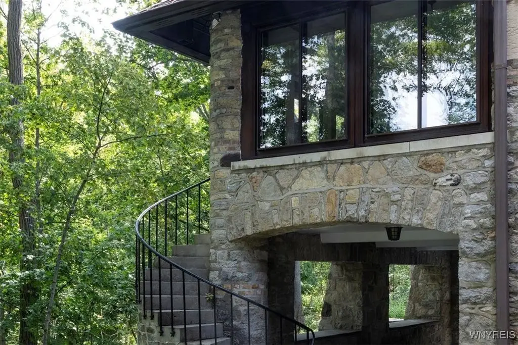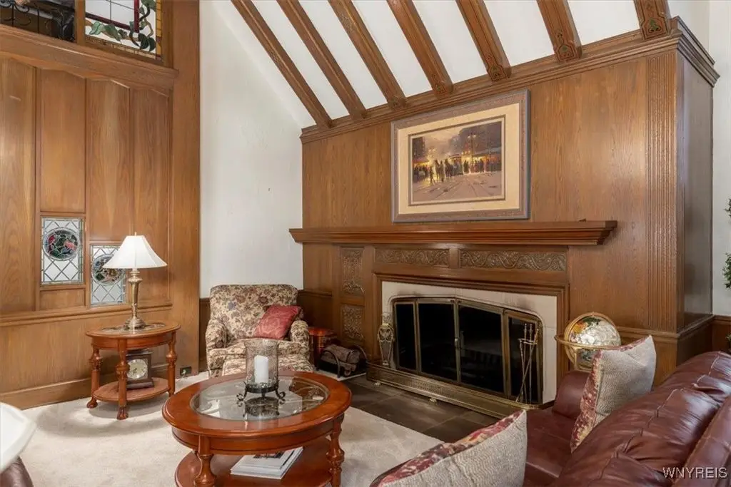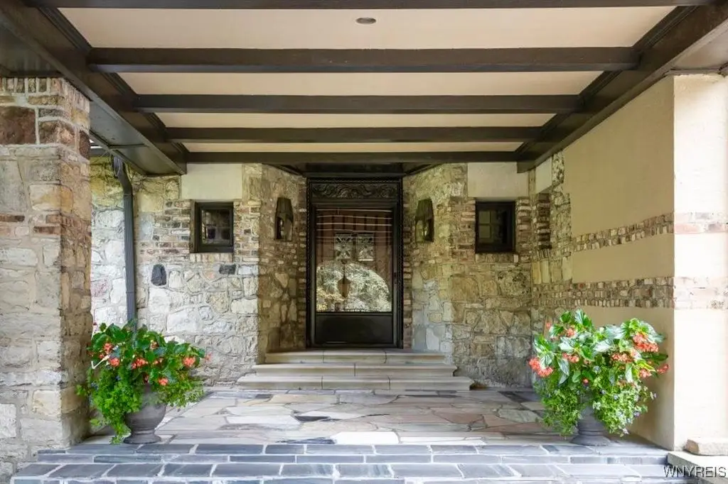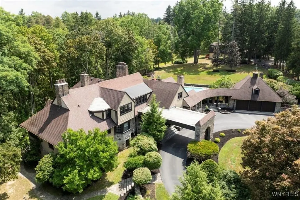 Brookledge - A Timeless Country Manor. Every so often, a property comes along that makes you pause. Brookledge is that rare find-an extraordinary Country Manor built in 1923, rich with history, elegance, and craftsmanship nearly impossible to replicate today. Picture century-old trees echoing with memories: sunlit summer days, fireflies dancing in twilight, poolside laughter, joyful celebrations, and holidays that turn into lifelong stories. For decades, Brookledge has been the backdrop to moments that matter-and now, it's ready for its next chapter. Tucked at the edge of East Aurora's historic village, Brookledge offers privacy with ideal access. Just minutes from Route 400, you're conveniently connected to Buffalo, the airport, ski resorts, and Niagara Falls. East Aurora itself is more than a location-it's a lifestyle. This beloved village blends small-town charm with cultural richness, from boutiques and cafes to galleries, breweries, chocolate shops, and historic landmarks like Knox Farm and the Millard Fillmore House. A hub of the Arts & Crafts movement, it offers a vibrant blend of heritage and modern living. As you arrive at Brookledge, a 7,800-square-foot manor reveals itself across nearly nine acres of manicured grounds, towering evergreens, stone patios, and the serene whisper of Tannery Brook. Inside, the home features hand-carved black walnut woodwork, six fireplaces, stained and antique German glass, marble floors, arched doorways, and detailed craftsmanship throughout. The grand living room stuns with oak beams, a carved fireplace, and a marble floored sunroom with panoramic brook views. A refined dining room glows with leaded glass and a marble fireplace. The kitchen is both functional and elegant, with granite countertops, Sub-Zero appliances, a center island, pantry, and sunny breakfast nook. The primary suite is a true retreat with a double-sided fireplace, sitting room, spa-like bath, and Juliet balcony. A cozy library, family rooms, billiard room, kitchenette, and walkout lower level offer room to live, gather, and grow. A separate three-bedroom guest house, in-ground pool, and sport court complete this remarkable estate.