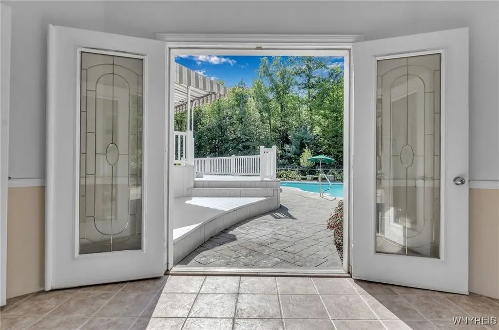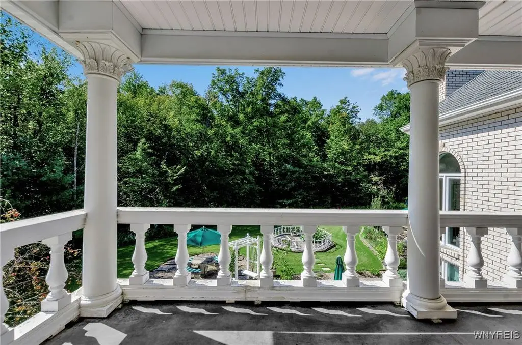 A spectacular home for hosting the holidays and the most sensational celebrations. Breathtaking inside and out, this magnificent premier property sits on five acres of glorious gardens, graceful walkways, gorgeous patios, and in-ground pool. An elegant two-story foyer, granite flooring and spectacular staircase greets family and friends as they take in the grandeur of this heavenly home. First floor showcases sensational formal living and dining areas. The bright white kitchen makes cooking a breeze with wonderful appliances and custom counters and cabinetry. A fantastic family room with a soaring ceiling has spectacular space for entertaining. The handsome den is complete with quality craftsmanship, boasting beautiful bookcases. The second floor has four large bedrooms all en-suite. The primary bedroom has a gas fireplace, and it's own balcony with breathtaking views of the backyard. A 2nd guest room has a separate sitting area (12 by 11) and gas fireplace. The luxurious lower level adds more great space to work, study and play. A six-car heated garage, three fireplaces, and two butler's pantries. Wonderful windows, French doors, magnificent millwork and architectural detail and design.