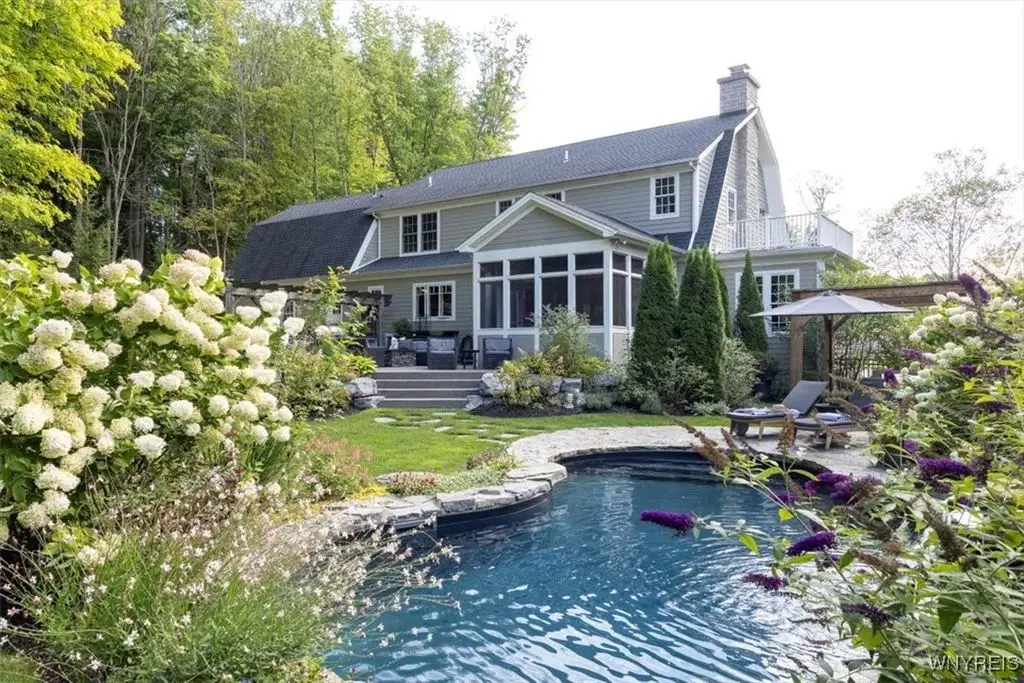 Serenity, Sophistication, and Casual Luxury-Tucked away at the end of a quiet cul-de-sac in the highly sought-after Reed Hill neighborhood, this elegant and timeless residence offers an exceptional blend of classic design and modern refinement. Situated on 1.4 acres of professionally landscaped grounds, the property is enveloped by mature trees, curated gardens, and serene natural beauty all set against the tranquil backdrop of Cazenovia Creek. Originally constructed by Thomas Johnson Homes, the residence exudes quality craftsmanship and enduring style. It has since been thoughtfully reimagined and artfully updated by Urban Design, blending traditional architectural details with today's most desired amenities. The result is a home that feels both luxurious and livable a perfect balance of form and function. Expansive, light-filled living spaces ideal for both relaxed everyday living and sophisticated entertaining. Custom millwork, high-end finishes, and a warm, welcoming palette set the tone. The backyard is a true private oasis, designed for making memories in every season. Picture gatherings around the sparkling in-ground pool, cookouts at the outdoor kitchen and built-in bar, and lazy afternoons soaking up the sun and enjoying the whispering water from the creek below. Whether you're hosting a party, celebrating with friends, or simply enjoying a quiet evening under the stars, this outdoor space is a sanctuary all your own. Nestled at the edge of the Village of East Aurora, this home offers the perfect blend of seclusion and accessibility. In minutes you're connected to all of WNY including downtown Buffalo and the airport yet surrounded by nature and history. This beloved village is small, yet sophisticated enough to meet every need. Explore boutiques, galleries, breweries, bakeries, bookstores and landmarks like Knox Farm, The Roycroft and the home of President Millard Fillmore. Whether you're enjoying world-class cultural institutions, or taking a day trip to Niagara Falls or the nearby ski slopes, this home places you at the heart of it all. Three bedrooms with potential for 4th bedroom - currently used as office. Showings begin 9/20.