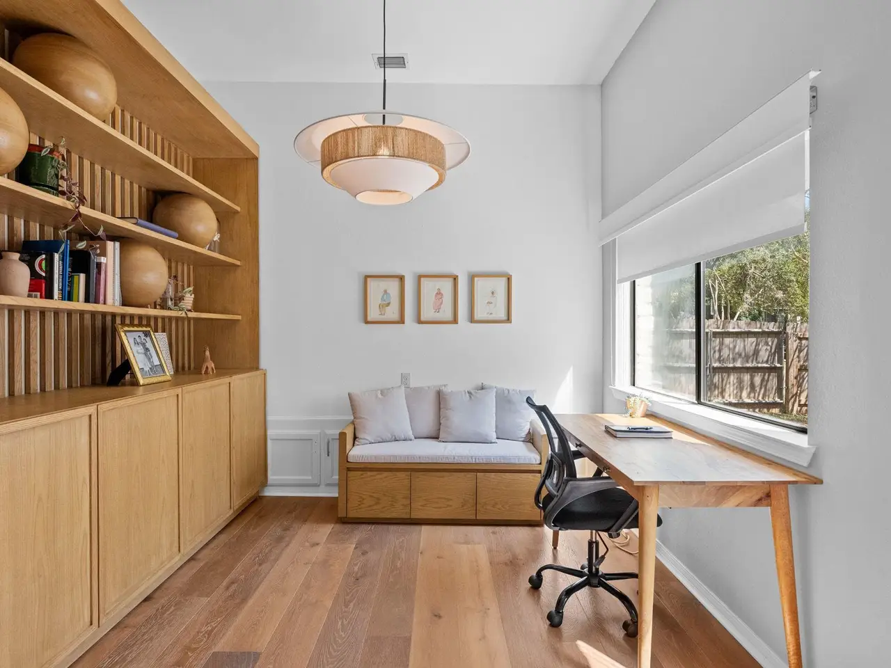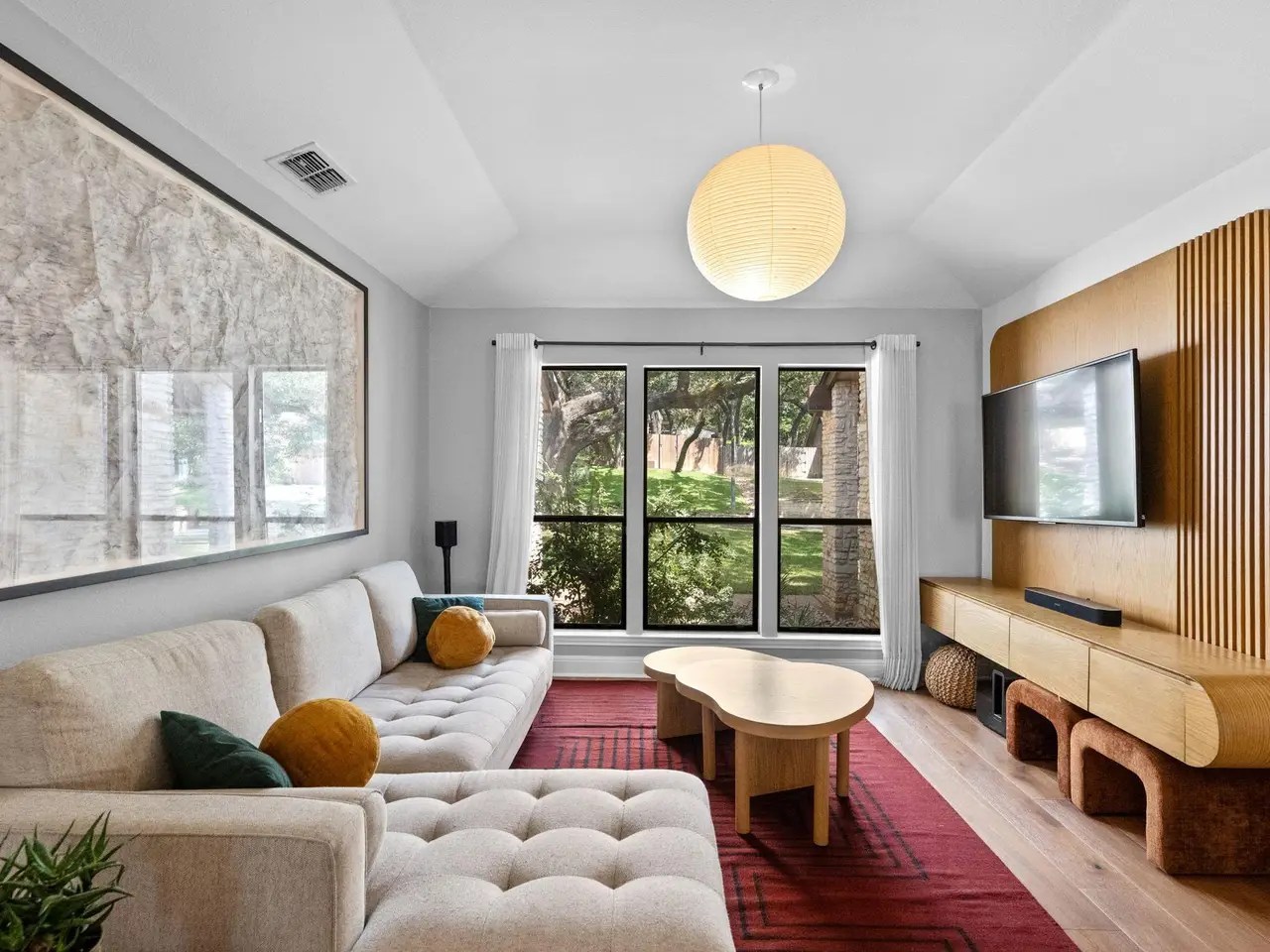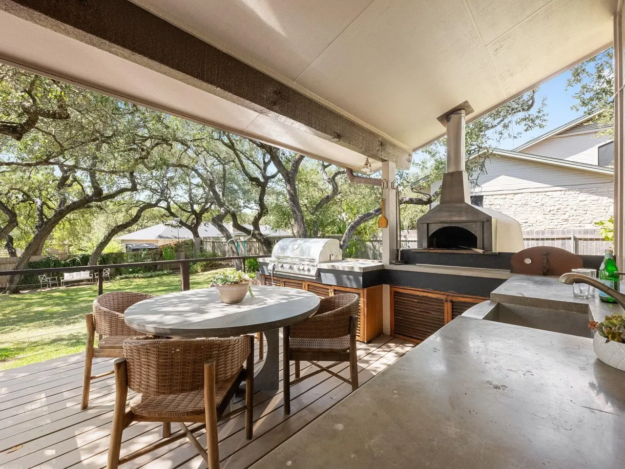 Near top-rated Eanes ISD schools, this beautifully renovated one-story home in The Woods of Westlake offers an open floor plan with three bedrooms, two and a half baths, and a flexible bonus space adjacent to the living room. The kitchen features stainless steel KitchenAid appliances and flows seamlessly into the living areas. Custom built-in furniture including bookcases, credenzas, and more adds a touch of craftsmanship throughout the home. Enjoy entertaining on the expansive deck with a spacious lounge area and a fully equipped outdoor kitchen featuring a pizza oven, all overlooking the serene, wooded backyard. Just a short walk to the trails of Barton Creek Greenbelt and Hill of Life and minutes from downtown Austin, this home offers the best of both nature and city life.