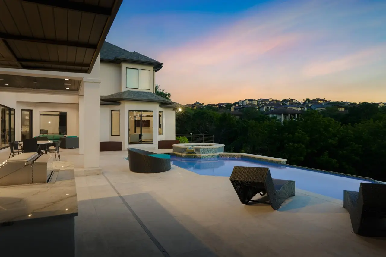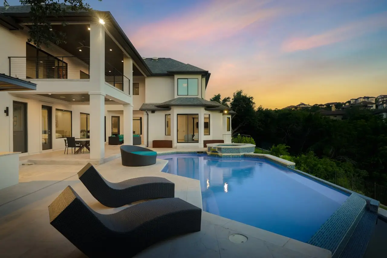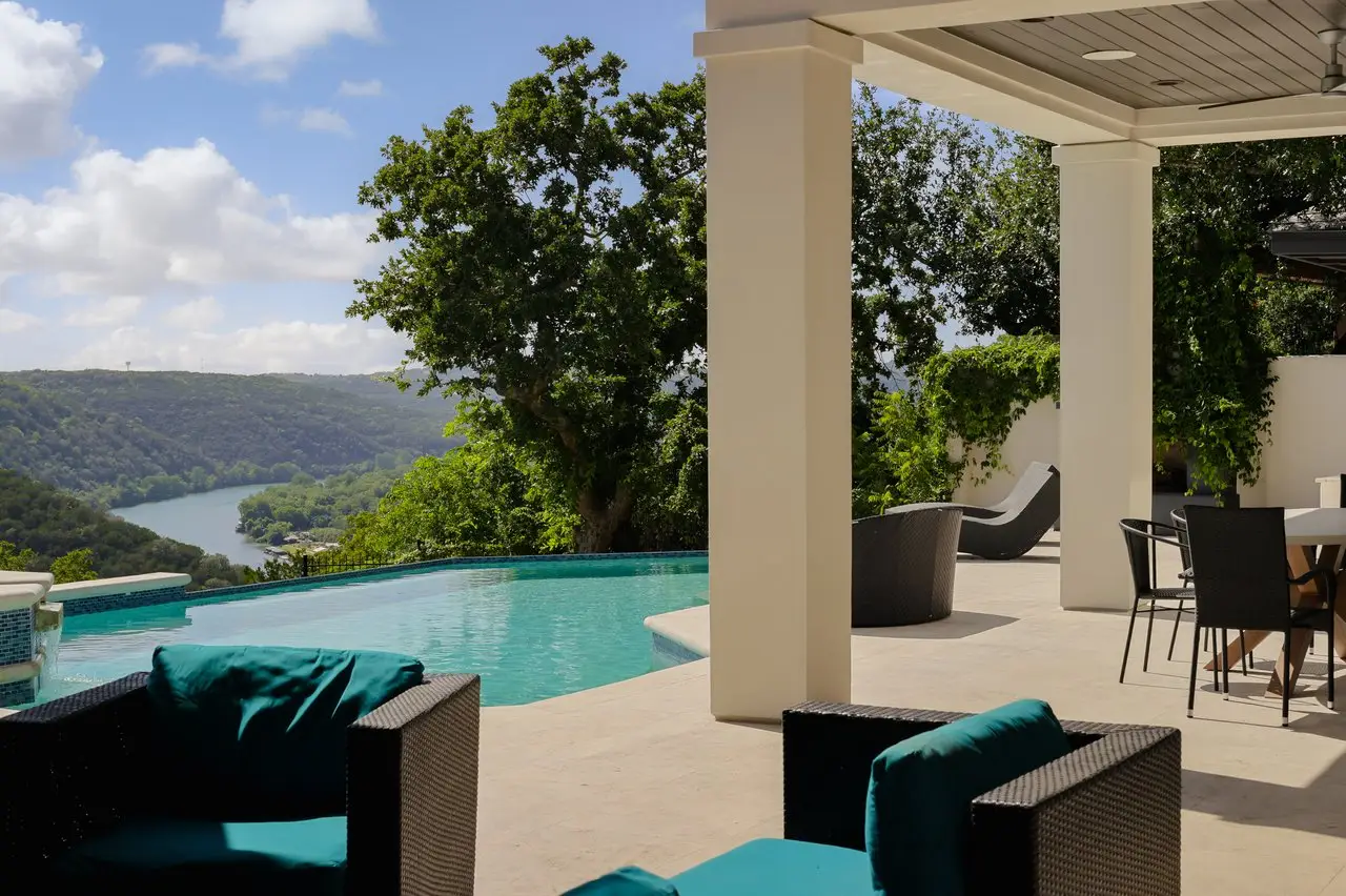 Welcome to 1704 Palisades Pointe, a breathtaking Hill Country retreat nestled in the gated Bee Cave enclave called The Pointe, a private street located in the ever-popular community called Lake Pointe. Perfectly perched above Lake Austin and backing to a protected nature preserve, this home boasts unobstructed, panoramic views of both the sparkling lake and the surrounding natural landscape, offering sweeping views, serene privacy, and a thoughtfully remodeled and redesigned layout that blends modern luxury with relaxed everyday living. Step inside to soaring ceilings and sleek finishes that immediately set the tone. To your left, a formal dining room with a statement chandelier flows seamlessly into a chef’s dream kitchen—complete with high-end appliances, abundant counter space, and a cozy built-in breakfast nook. The kitchen overlooks the expansive family room, where oversized windows and sliding glass doors frame the breathtaking backdrop of Lake Austin and the lush preserve, blurring the line between indoors and out. The main floor also features a spacious primary suite with private patio access and a spa-like ensuite bath featuring dual vanities, an oversized soaking tub framed by a picture window, and a massive walk-in shower with multiple shower heads. A guest suite with private bath, a stylish powder room, a dedicated pool bath, and a separate fitness studio round out the first level, offering ultimate convenience and flexibility. A striking modern staircase leads upstairs to three additional bedrooms—one ensuite and two connected by a Jack-and-Jill bath. Also on this level: a large home office with a built-in Murphy bed, an impressive game room with a secret playroom every child will love, and a private balcony overlooking the treetops, the protected preserve, and the shimmering expanse of Lake Austin beyond. Out back, the home transforms into an entertainer’s dream. A large covered patio with a built-in grill and authentic pizza oven is anchored by a romantic vine-covered fireplace, setting the stage for unforgettable evenings under the stars. The infinity-edge pool and spa appear to spill directly into the canopy below, while the lush green lawn provides space to play, unwind, or simply soak in the view. Just outside the community gates, enjoy access to sidewalks, scenic hike and bike trails, neighborhood parks, the private Lake Pointe dock on Lake Austin, and the highly rated Lake Pointe Elementary, part of the acclaimed Lake Travis ISD. You’re just minutes from the Hill Country Galleria, Lowe’s, popular dining spots, a movie theatre and two top grocery options - Whole Foods and HEB. And only 25 minutes to Downtown Austin. This is location at its finest. With its breathtaking setting and location, functional layout, and striking finishes, 1704 Palisades Pointe offers a rare chance to own a slice of Lake Austin luxury. Skip the stress of renovations. Unpack and enjoy!