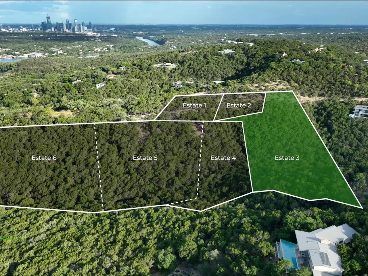 Now available in Wildcat Club - Build the ultimate estate on this expansive hillside lot capturing 280 degrees of panoramic hill country and city views. The largest parcel in the subdivision, Estate 3 combines two lots for almost 4.5 acres of immense privacy, scenic views, a wet weather creek, and sewer connectivity. Estate 3 includes conceptual plans by renowned Austin architect Clayton Korte that lay the foundation for a one-of-a-kind contemporary hilltop home in West Lake Hills. Alternatively, pick your architect and build your dream home with distinguished Foursquare Builders on this iconic hilltop.