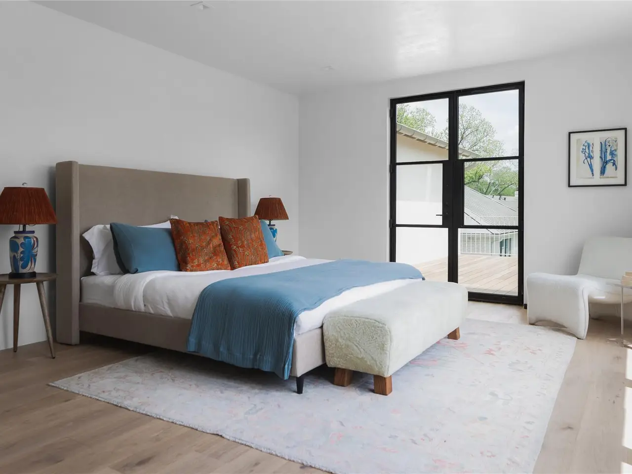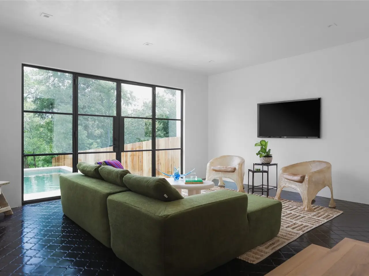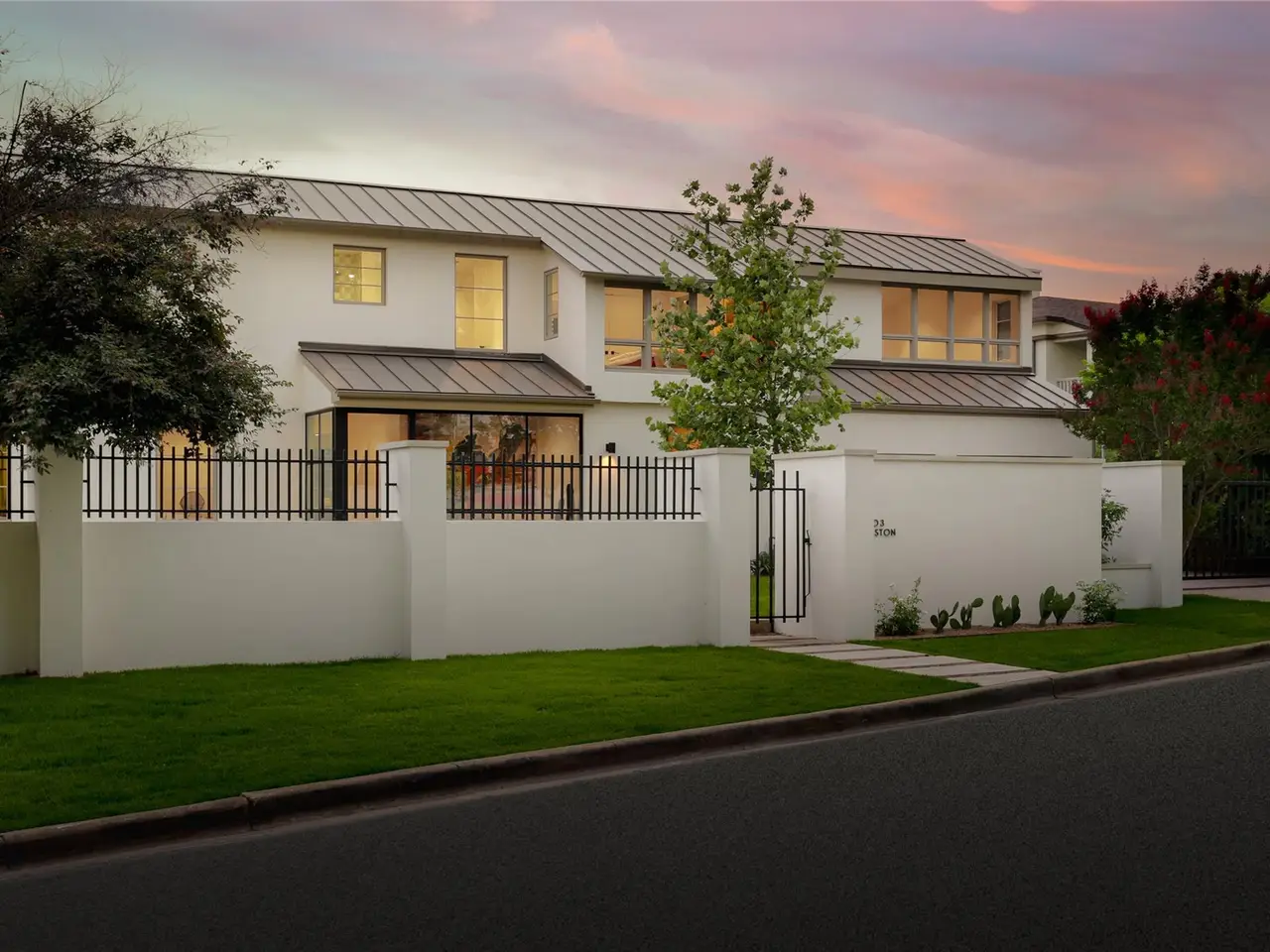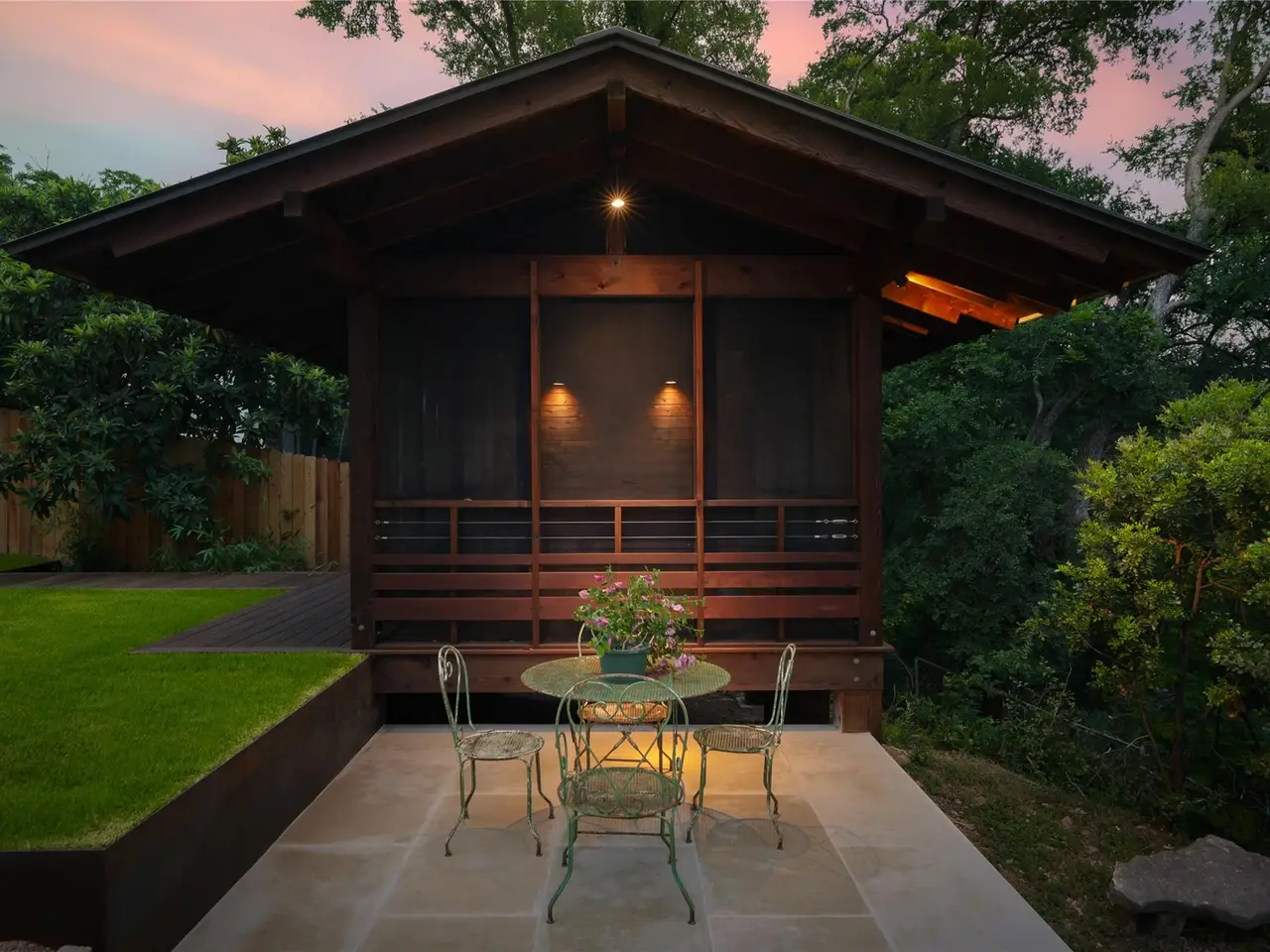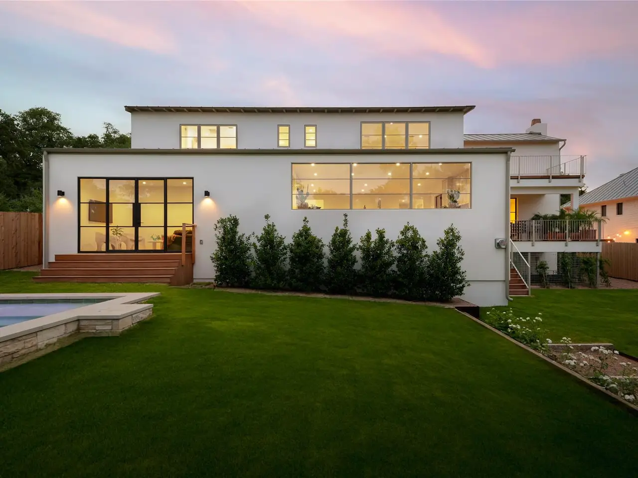 Completely reimagined with a discerning eye for detail, this luxurious residence blends timeless craftsmanship with modern sophistication. Smooth plaster walls, curated high-end finishes, and a thoughtfully reconfigured floor plan create a home that feels both grounded and elevated. The main level includes a formal living room, an open-concept kitchen and breakfast area, a casual family room overlooking the pool, a wine room, and a handsome study or flex space that can serve as an additional bedroom or guest retreat. Upstairs, four bedrooms--each with its own ensuite bathroom--provide a quiet escape. The primary suite is a tranquil haven, featuring beautiful French doors that open to a private balcony with sweeping views of the expansive backyard and downtown skyline. Outdoors, the backyard unfolds into a lush sanctuary with mature trees covering over half the property and offering a natural playground for kids--or goats, if you dare! The pool, nestled in the shade, is enhanced by established landscaping and a screened casita that adds both charm and functionality--ideal for outdoor dining, entertaining, or simply relaxing. Located in the prestigious Pemberton Heights neighborhood and backing directly to the Pease Park greenbelt, this home offers a rare fusion of refined design and natural beauty, where every element has been thoughtfully curated.