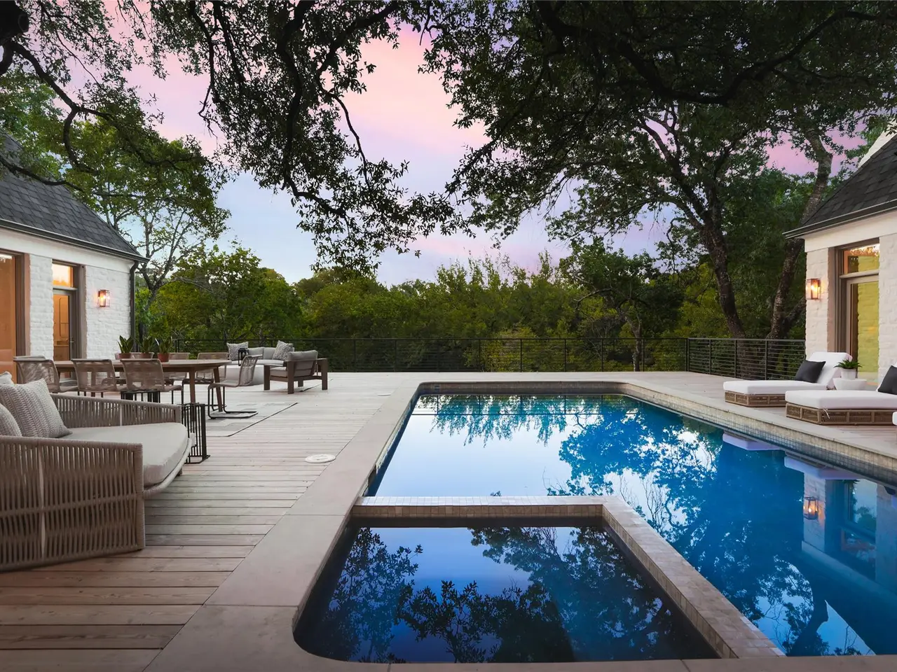 Completely reimagined in 2024, this timeless Tarrytown residence blends restored charm with modern elegance. Sunlit living spaces feature high ceilings, a stunning fireplace, wide-plank oak floors, and curated finishes that merge classic craftsmanship with contemporary sensibility. The heart of the home is the immaculate kitchen, designed for both style and function, featuring high-end appliances, custom cabinetry, and sleek countertops for cooking and entertaining. Every detail has been carefully considered to create a kitchen that is both beautiful and practical, perfectly complementing the home's exquisite interiors. The first-level primary suite is a private escape with a fireplace surrounded by custom-built-ins, two walk-in closets, and a spa-like bathroom. Designed for both daily living and entertaining, the property includes a separate guest apartment -- ideal for visitors, a home office, or a private studio. The backyard is anchored by a glistening pool and lush green surroundings that provide exceptional privacy. Every space reflects an attention to detail and a seamless connection between indoor comfort and outdoor serenity. Nestled on a quiet, tree-lined street, this home offers the perfect balance of seclusion and convenience. Just moments from Lake Austin, Westwood Country Club, and downtown, 3614 Murillo Circle captures the essence of refined Austin living in one of the city's most beloved neighborhoods. Tax and assessed values are estimates for illustration purposes only. All figures should be independently verified.