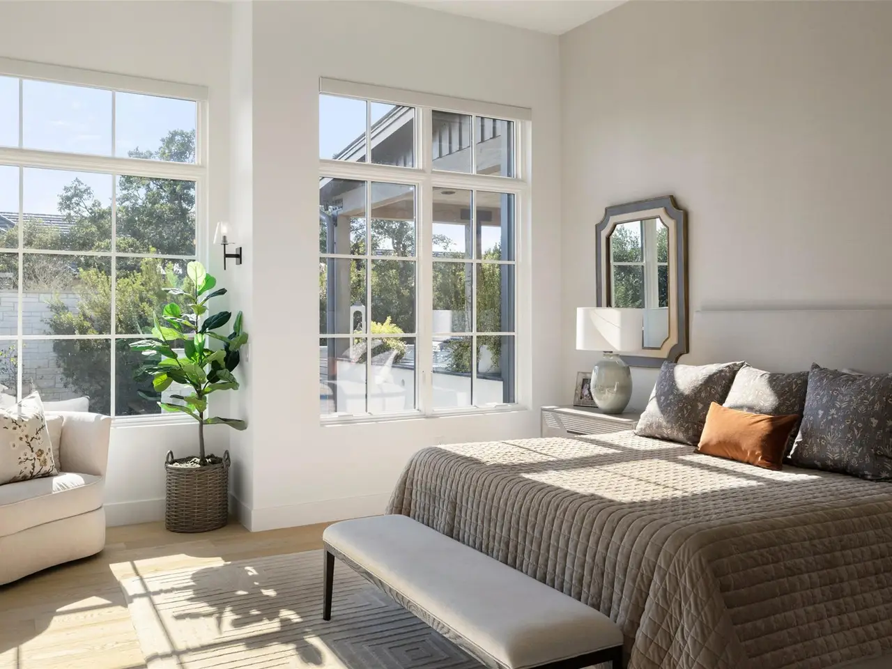 Serene backyard views from primary suite