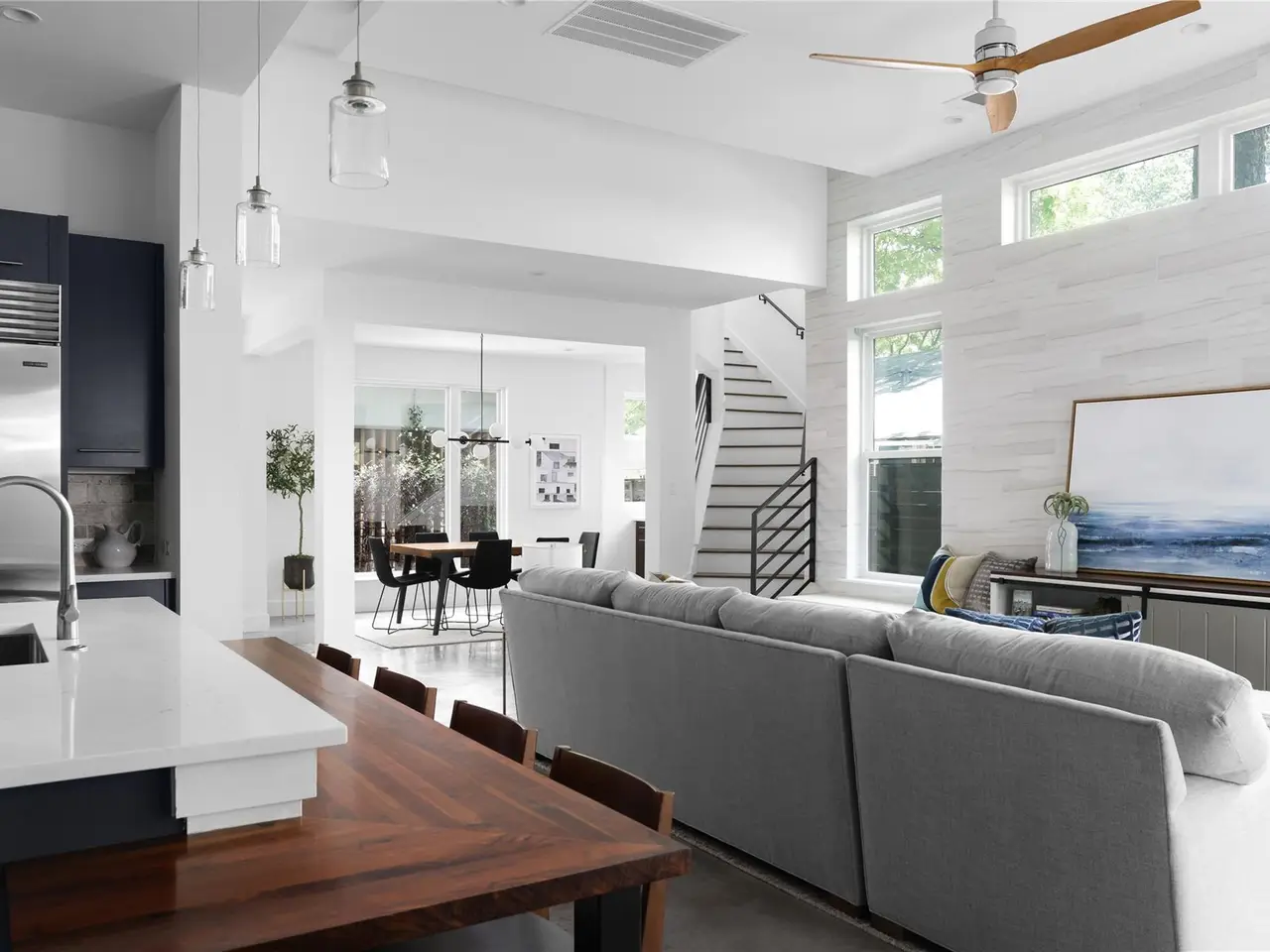 Motivated seller at a new price--bring us an offer! Welcome to your dream home in the heart of Bouldin! This four-bedroom, three-bath home built in 2016 has everything you've been looking for and more, with modern architecture, an open floor plan, a family- and pet-friendly backyard, and an enclosed two-car side-entry carport/garage. The living room is sun-filled with windows galore, recently updated with custom built-ins for storage and additional seating. The dining room is spacious with a huge window and bar, perfect for entertaining. The chef's kitchen with 14-foot ceilings features high-end stainless steel Thermador appliances, including a built-in side-by-side fridge, dishwasher, wall oven and microwave, 5-burner stove, and deep farmhouse sink. The large primary suite on the ground floor is a true oasis, with access to the outdoor deck, a large ensuite bathroom with double sinks, a spacious steam shower, and a walk-in closet. A downstairs guest suite includes a large bedroom currently furnished as an office with a queen-sized custom Murphy bed and full bathroom. Upstairs offers a second living space, two additional bedrooms, and a full bathroom. The backyard, renovated in 2021, features custom decking, turf throughout, a four-person barrel sauna, and a perfect balance of sun and shade under live oaks and pecan trees. With a stucco exterior, polished concrete floors, composite deck, and turf yard, it's ideal for a low-maintenance or lock-and-leave lifestyle. Located in one of Austin's most walkable and sought-after neighborhoods--just minutes to South 1st and South Congress. Stroll to neighborhood favorites like Mattie's, Swedish Hill, Elizabeth Street Café, Lenoir, and Juiceland. Don't miss your chance to own this incredible home in Bouldin!