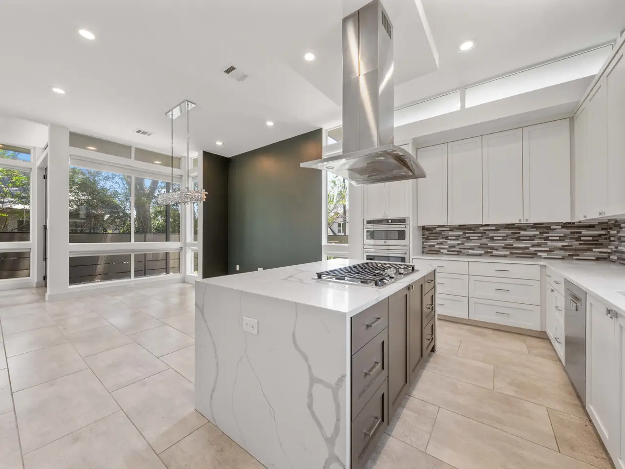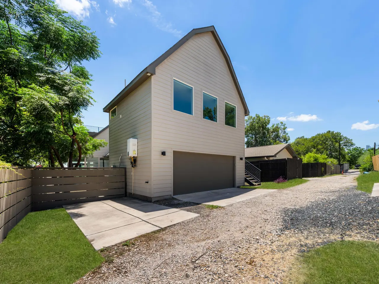 Modern luxury in the heart of East Austin! This 3 bed, 2.5 bath architectural gem offers 2,096 square feet of stylish living space, high ceilings, floor to ceiling windows, and an open-concept design. The gourmet kitchen features a waterfall island, custom cabinetry and premium appliances. A designer glass tile backsplash and sophisticated lighting solutions create an atmosphere of refined modernity, while the adjoining dining area, crowned with a crystal pendant chandelier, offers the perfect setting for elegant entertaining. The primary suite stuns with a spa-style wet room, marble double vanity, and oversized walk-in closet. Upstairs there are 2 bedrooms with views of downtown, a full bathroom, plus additional flex area that can be used as office space or additional living area. This home has multiple outdoor living spaces where you can unwind privately in the lush courtyard, under the covered patios, or take the spiral staircase up to the third story terrace for the beautiful panoramic views of the Austin skyline. The detached climate-controlled garage includes a full guest suite above (an additional 711 sqft) that is perfect for rental income, multigenerational living, or a private home office. This vibrant East Austin address sits in an educational hub, just moments away from the historical Houston-Tilloston University and minutes from the University of Texas at Austin campus. Walkable to highly rated shops, restaurants, coffee, and parks. A rare blend of elegance, flexibility, and location - don't miss this one! Property sold “As-is.” Buyer and/or buyer’s agent responsible for verifying all pertinent information deemed relevant by the prospective buyer, including but not limited to square footage, acreage, utilities, taxes, zoning, permitting, condition, school zones, HOAs, etc.