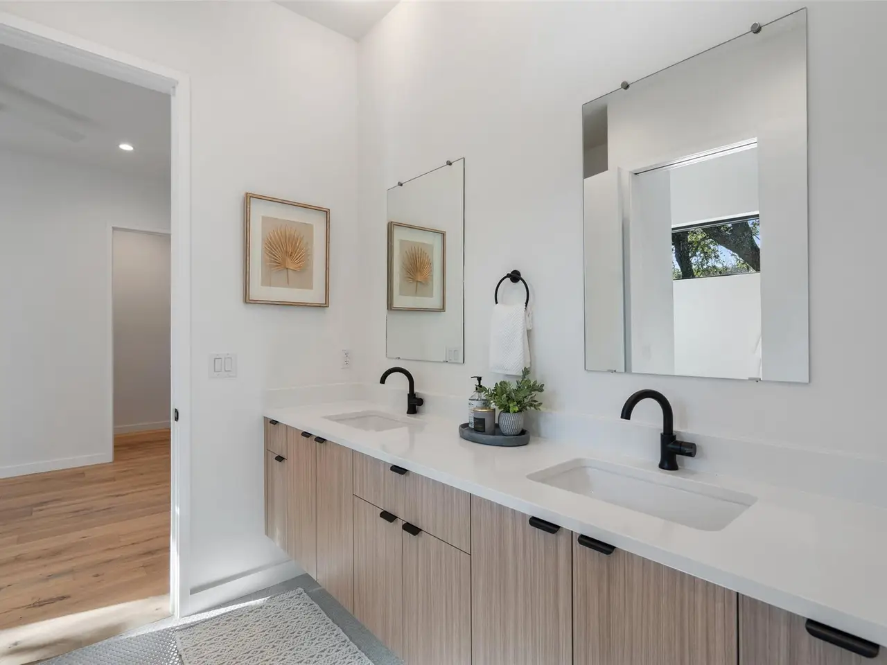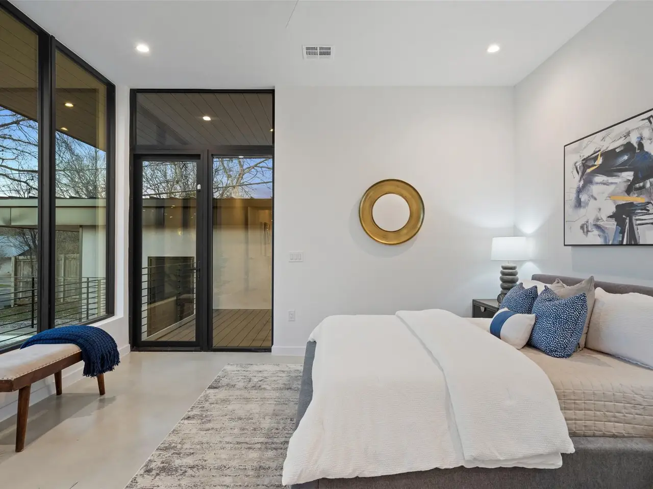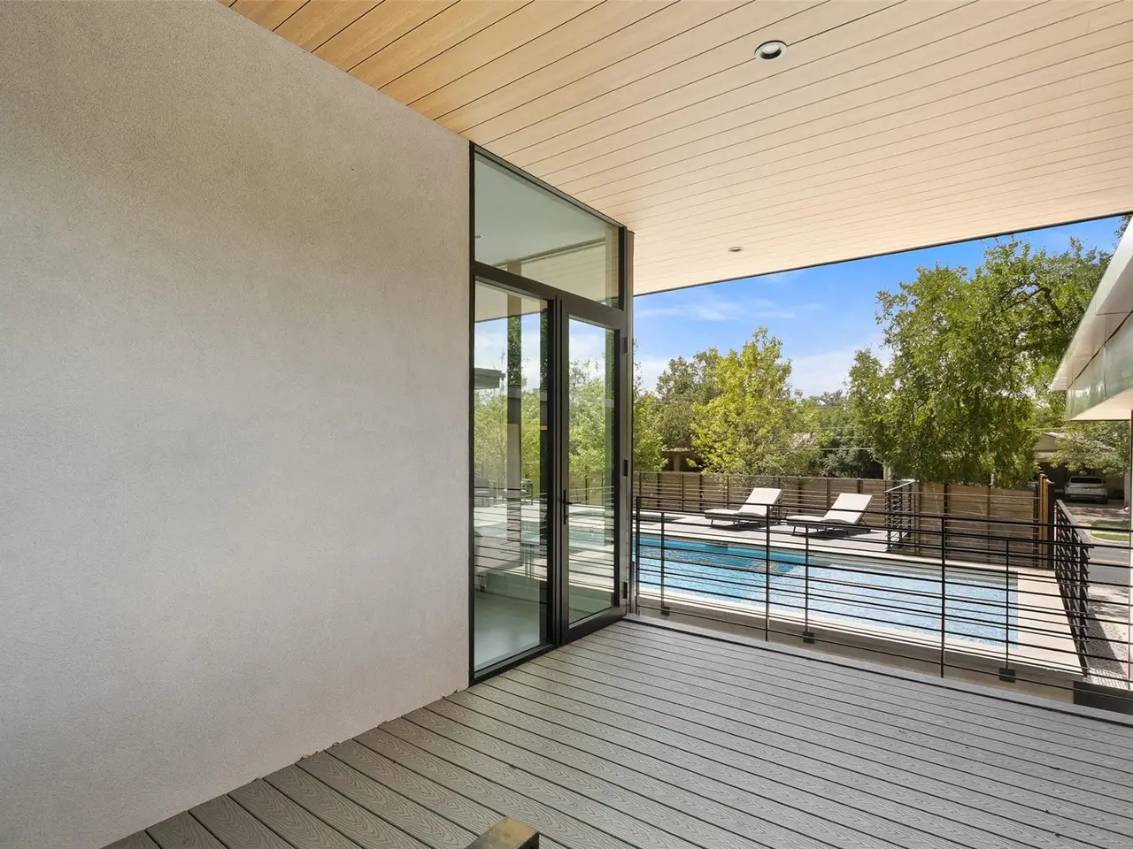 Discover a stunning modern masterpiece in the heart of Barton Hills. Located on a corner lot, this meticulously designed home boasts four spacious bedrooms, a dedicated office, and expansive living spaces tailored for relaxation and entertaining. Built in 2022 by Delve Residential (formerly Heartwood Real Estate Group), this stunning home seamlessly blends luxury and functionality. The exterior showcases a mix of high-end materials, including metal, stucco, and limestone, offering a modern yet timeless aesthetic. Inside, you'll find an impeccable combination of concrete and European Oak wood flooring that extends throughout the home, complemented by sleek granite and Caesarstone countertops. The gourmet kitchen is a chef's dream, equipped with top-of-the-line Sub-Zero, Wolf, Cove, and Thermador appliances, ensuring both style and performance. Flooded with natural light from floor-to-ceiling windows, the open floor plan is an entertainer's dream, seamlessly blending indoor and outdoor living with views of pool and private backyard. Upstairs, a massive den offers a versatile retreat, perfect for a media room, playroom, or secondary living space. Every detail, from the detached two-car garage to the carefully curated finishes, has been crafted with modern living in mind. Located minutes from Downtown, Barton Springs, Zilker Park, and Austin's annual ACL Festival, this home epitomizes luxury living in one of the city's most vibrant neighborhoods.