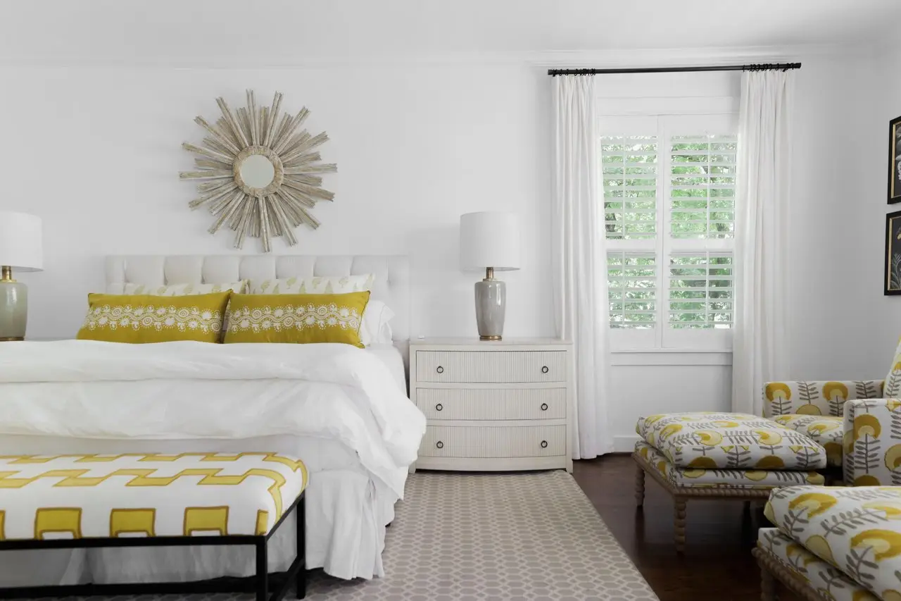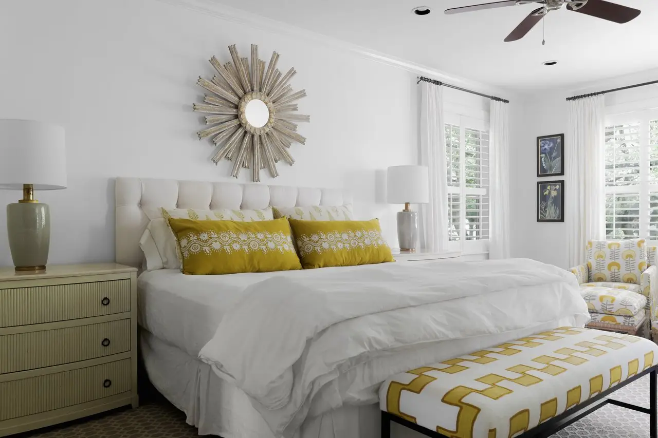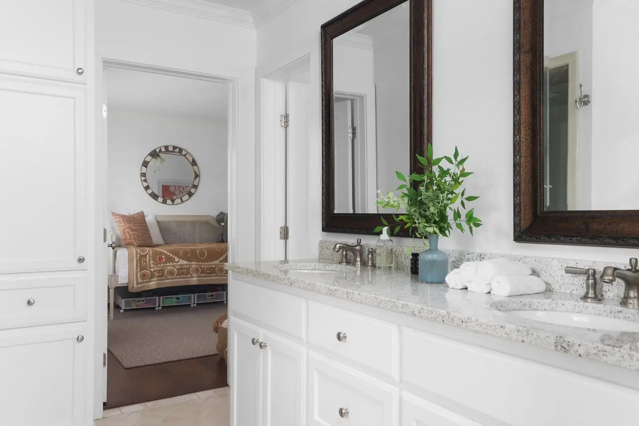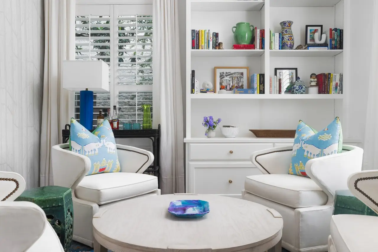Situated on a spacious quarter acre lot in the heart of Tarrytown, this home boasts a 5 or 6 bedroom, 4.5 bath floorplan offering light filled spaces, colorful accents and easy living. As you enter, you are greeted with a bright, cheerful and spacious open living, dining and kitchen area. Gorgeous wood floors, custom white shutters, touches of wallpaper and a fun pop of color on the stair runner. A light filled sitting room or office overlooking the lush front yard includes built-in storage and shelving. The expansive living space is also anchored by millwork including shelving, storage and media area. The kitchen includes a 6-burner gas Wolf range, double ovens, walk-in pantry, plentiful storage and oversized breakfast bar and island. The adjacent dining area includes built-in bench seating – beautifully upholstered in sunny yellow. An entertainer’s delight! The current floorplan utilizes 3 bedrooms downstairs and 3 bedrooms upstairs, with the primary bedroom located on the second level overlooking the treetops and backyard. The primary bath features an oversized dual shower, dual vanities and two walk-in closets. As an option, there is plenty of flexibility to utilize some rooms as office and gym spaces, or additional living. The generously sized turfed backyard has ample room for play, grilling, dining and gardening. A wood deck offers a space for dining al fresco under gorgeous mature trees. The gated driveway leads to a two car garage. Don’t miss this fantastic opportunity to live in one of Austin’s most desirable neighborhoods. Walkable tree-lined streets, close to shopping, dining, trails and the best of Austin. www.2106schulleave.com