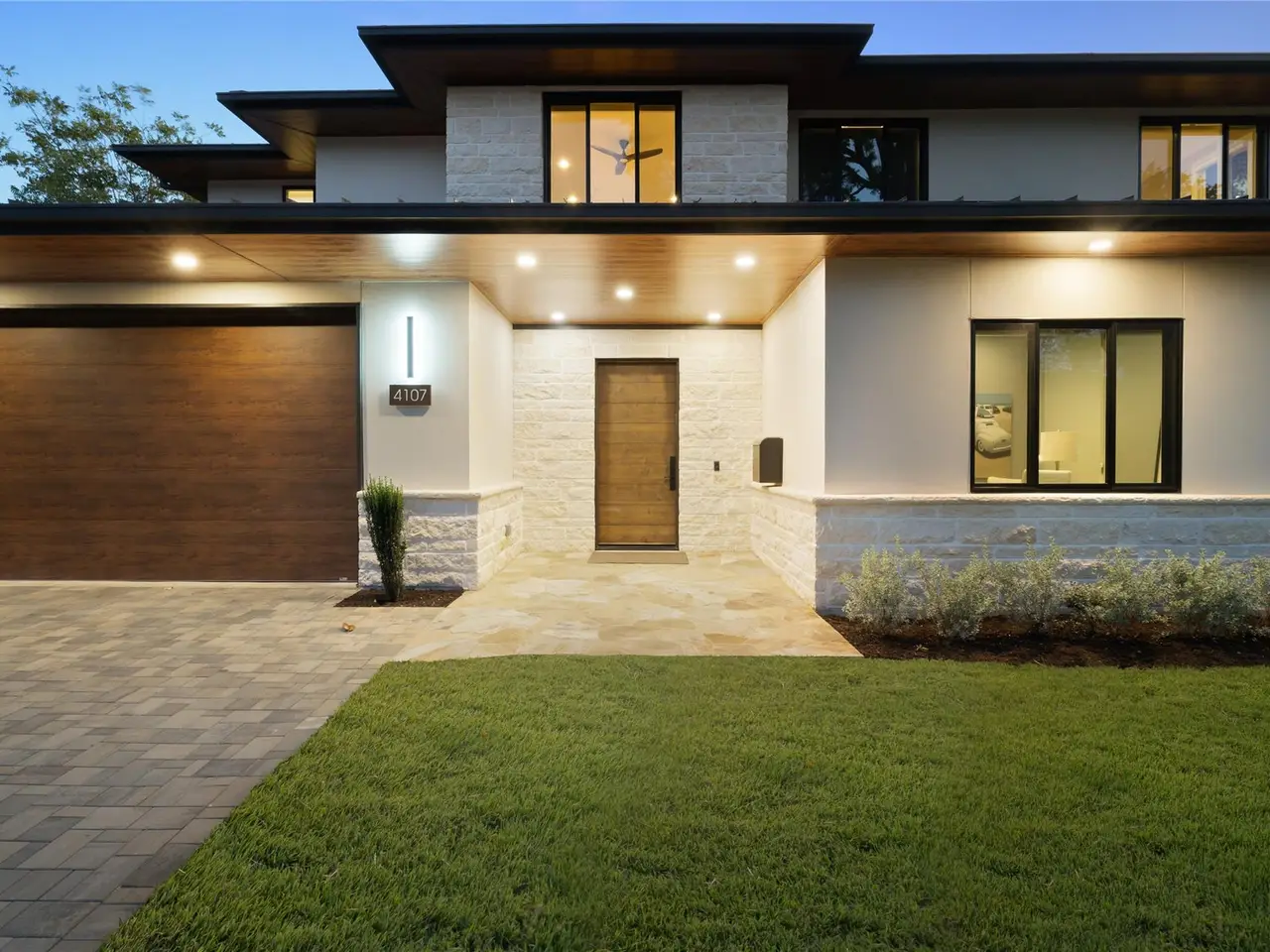 Welcome to 4107 N Hills Drive, a rare find in Northwest Hills. The front facade blends natural materials w/ Hill Country contemporary design, instantly setting it apart & contributing to the neighborhood's evolving character. Thoughtfully designed & completed in 2024 as the owners' forever home, this true custom build pairs timeless craftsmanship w/ modern design & smart technology. With the future in mind, the home is equipped w/ solar panels, multiple EV chargers, & audio visual, lighting, & security--all from your phone or tablet. The open-concept layout features 3 living areas & 2 dedicated offices, creating flexibility for work, play, & entertaining. At the heart of the home, the chef's kitchen showcases an oversized island, Thermador appliances, a 24-bottle wine column, & details like an appliance garage & hidden mixer cabinet. Floor-to-ceiling windows & sliding glass doors in the living room flood the space w/ natural light & connect to the outdoors. Downstairs offers 2 bedrooms, a private office, & open gathering areas anchored by a striking glass-lined staircase. Upstairs, the primary suite is a true retreat w/ dual custom closets & a spa-inspired bath featuring a soaking tub & oversized shower. 2 additional ensuite bedrooms, a teen lounge, & 2nd office complete the upstairs. The backyard is designed as a private oasis w/ a covered porch, outdoor kitchen, sparkling pool, & hot tub. A 3 car air-conditioned garage w/ epoxy floors, custom storage, & multiple EV chargers adds convenience. Solar panels, Tesla Powerwalls, & a full smart-home system enhance efficiency & security. Located in the coveted Northwest Hills neighborhood & walking distance to Doss Elementary & Murchison Middle School, & just minutes from Anderson High. Everyday conveniences, shopping, & dining are nearby, w/ Mopac providing quick access to both Downtown & The Domain. A rare blend of location, lifestyle, and design, 4107 N Hills Drive is truly one of Northwest Hills' finest.