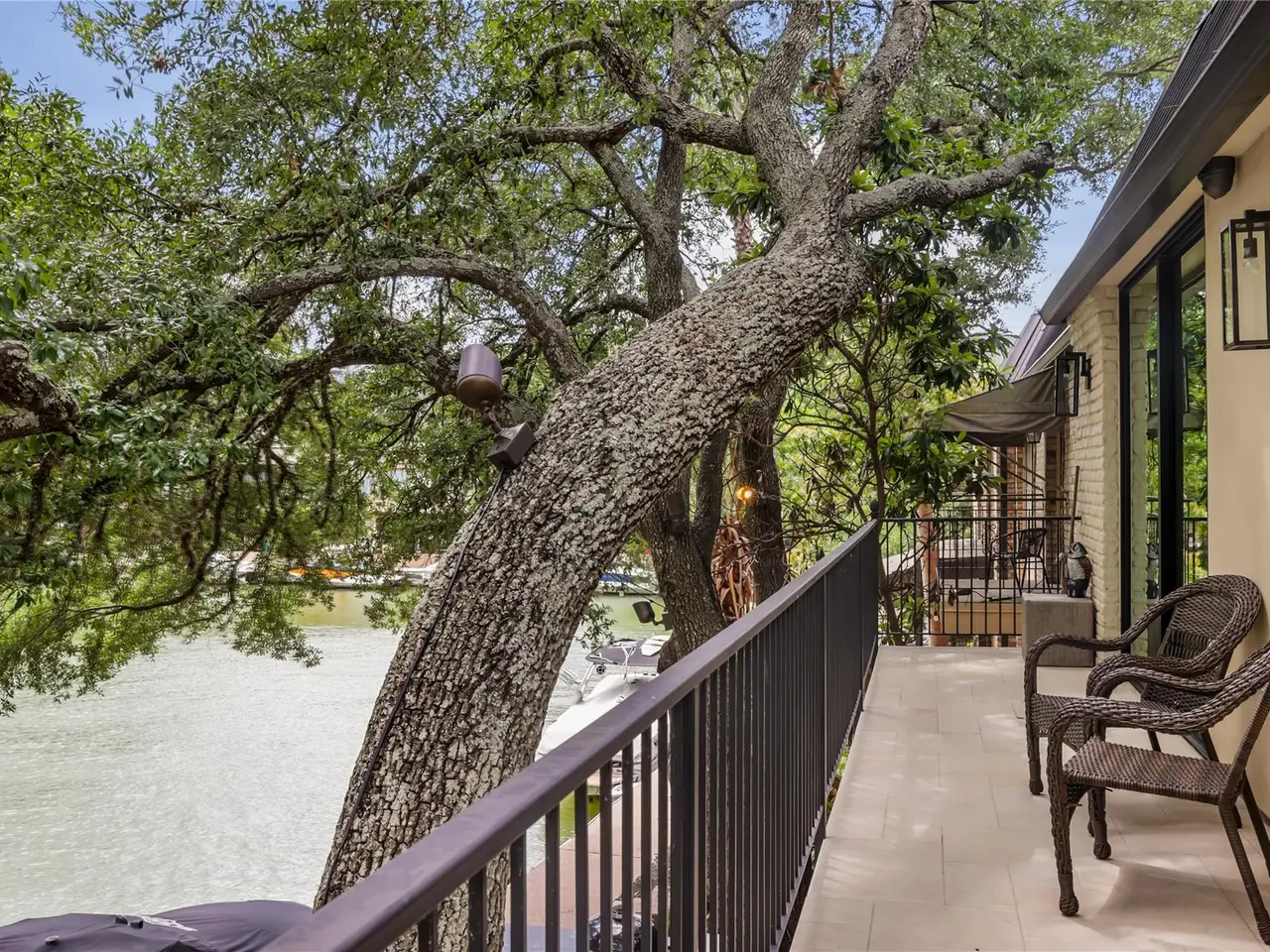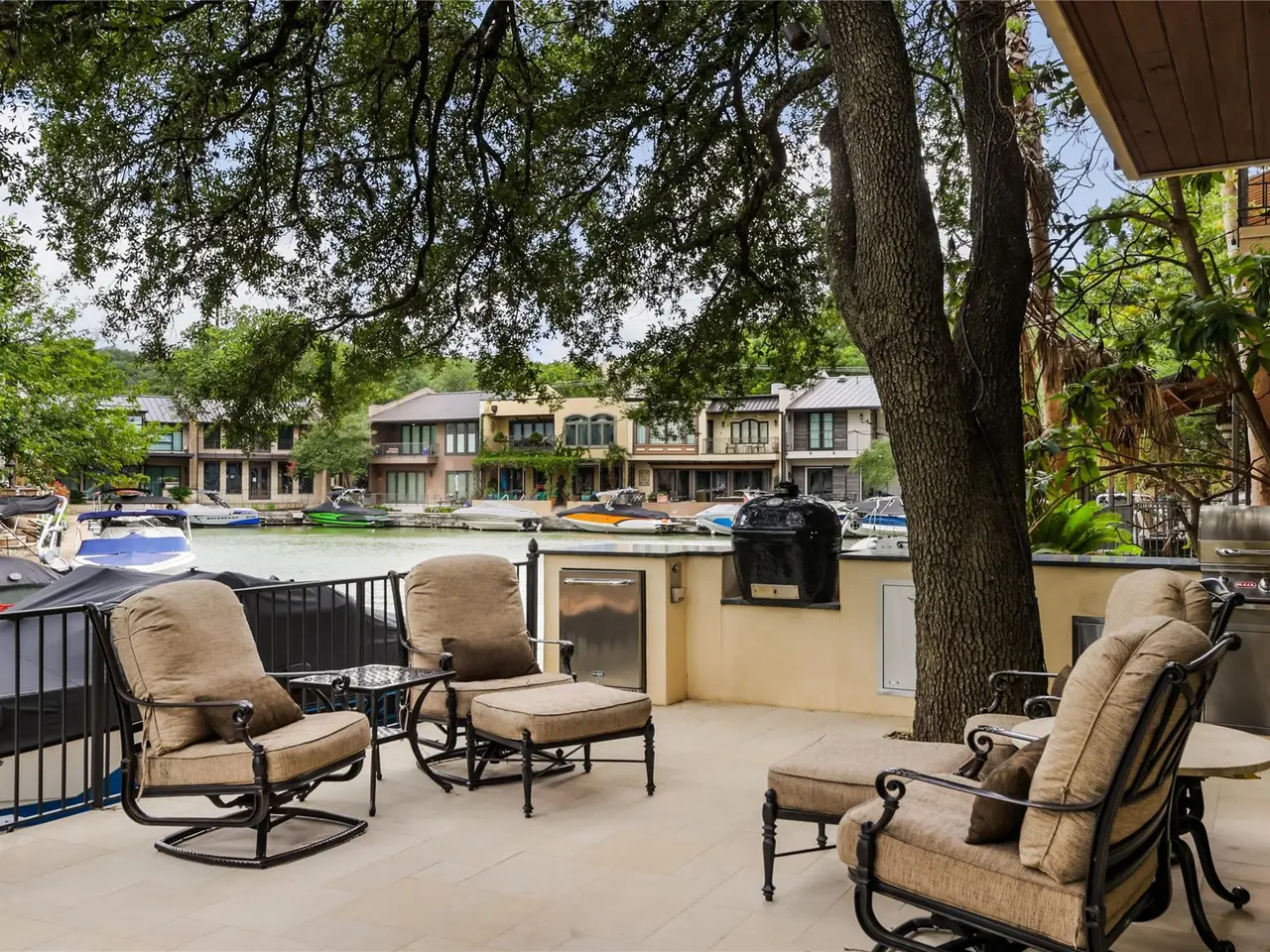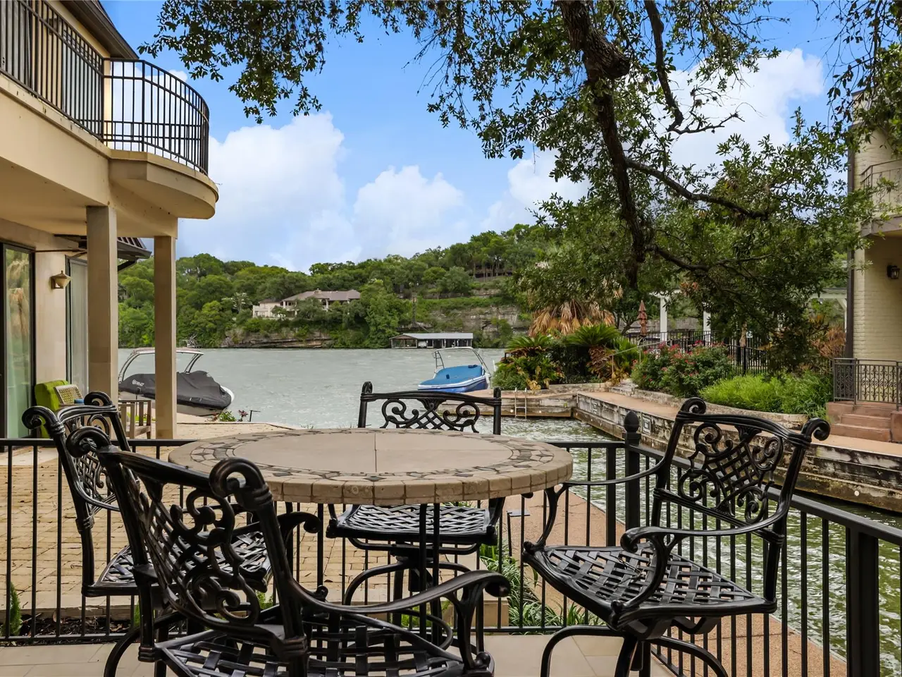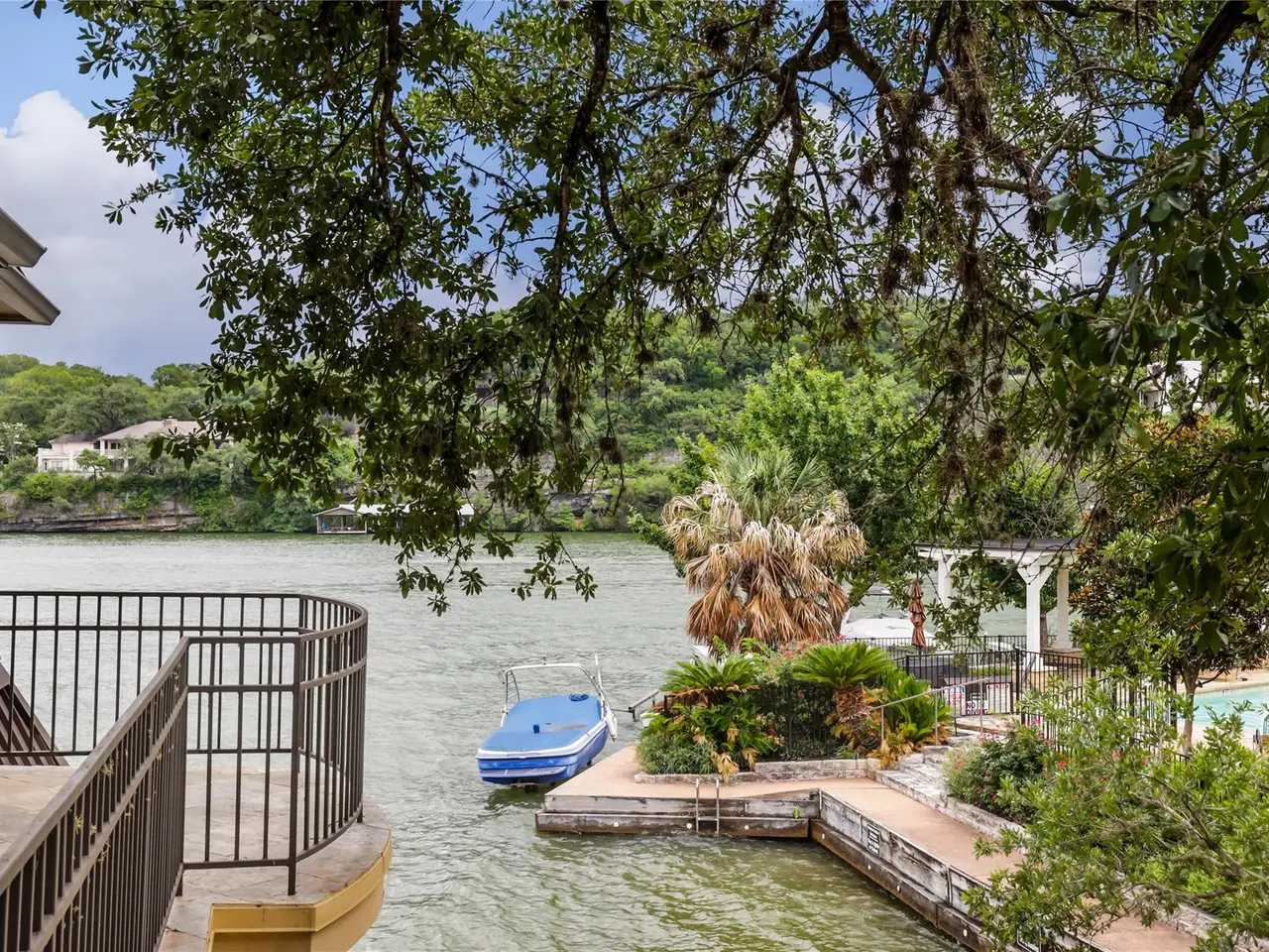 Located in the gated Harbor on Lake Austin community, 2463 Westlake Drive presents a rare turnkey waterfront opportunity in the heart of Westlake. This updated 4-bedroom, 3.5-bathroom townhome offers elegant lakeside living with direct water access and a private boat lift just steps from the shaded patio. Inside, sleek modern updates include a black steel-frame front door, floating staircase, and wide-plank light hardwood floors that reflect the natural light pouring in from large sliding glass doors. The open-concept living space flows seamlessly to the outdoors, framing tranquil lake views and creating the perfect setting for both everyday living and weekend entertaining. The chef's kitchen is equipped with top-tier appliances, including a built-in Sub-Zero refrigerator and a Miele espresso machine, centered around a large island with breakfast bar seating. A wet bar and wine fridge complement the main living space, while the outdoor summer kitchen on the waterfront patio makes al fresco dining effortless. Upstairs, the primary suite boasts a private terrace overlooking the lake--ideal for morning coffee or unwinding at sunset. Two additional bedrooms and a versatile study, easily used as a fourth bedroom, provide ample space for guests or family. With a two-car garage cleverly outfitted with full-size Murphy bunk beds, this low-maintenance residence offers both comfort and flexibility just minutes from downtown Austin and within the acclaimed Eanes ISD.