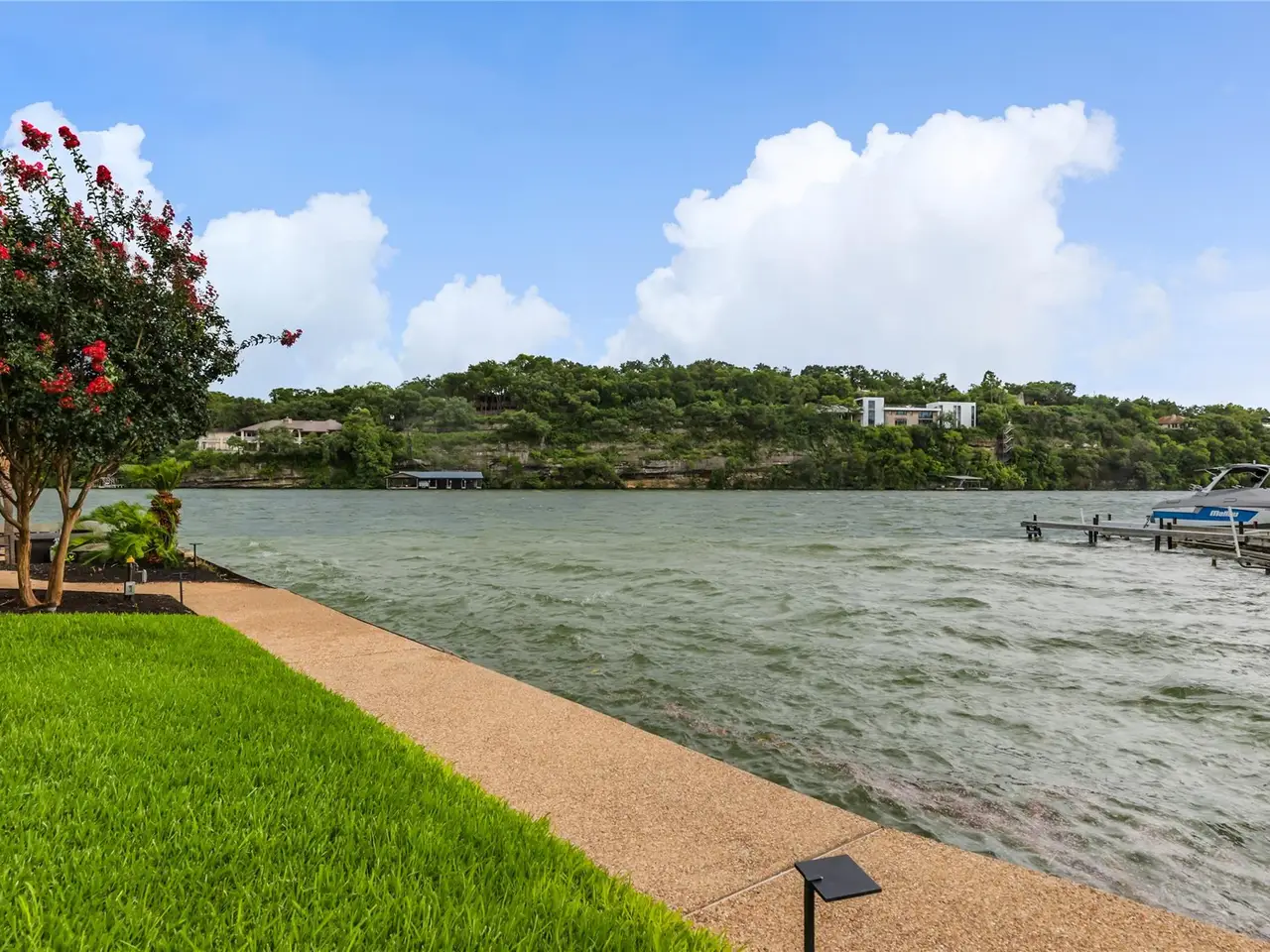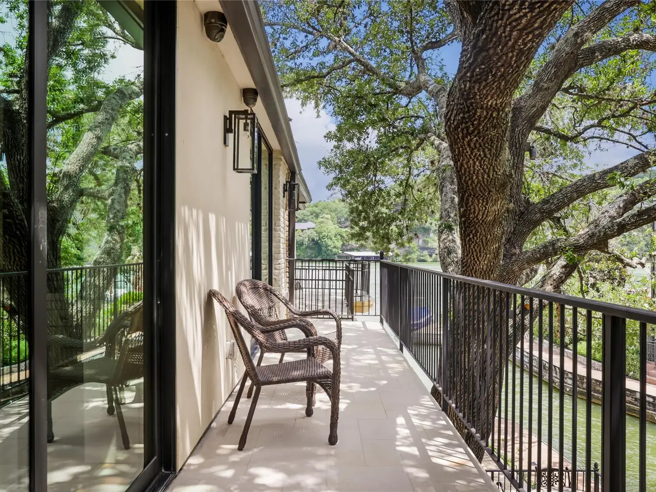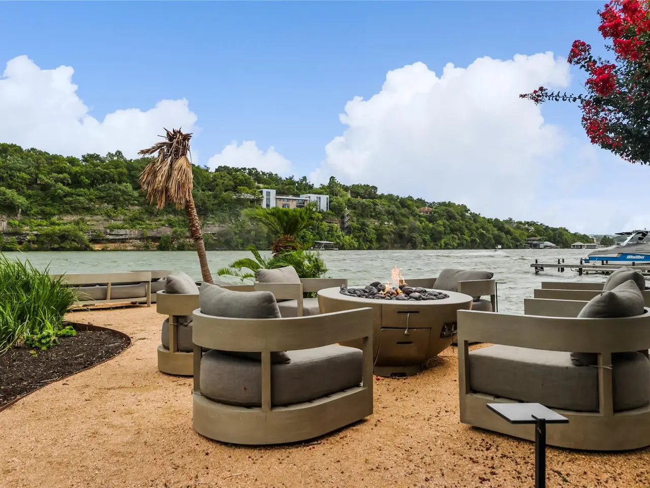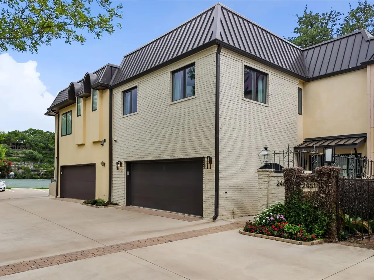 Located in the gated Harbor on Lake Austin community, 2463 Westlake Drive presents a rare turnkey waterfront opportunity in the heart of Westlake. This updated 4-bedroom, 3.5-bathroom townhome offers elegant lakeside living with direct water access and a private boat lift just steps from the shaded patio. Inside, sleek modern updates include a black steel-frame front door, floating staircase, and wide-plank light hardwood floors that reflect the natural light pouring in from large sliding glass doors. The open-concept living space flows seamlessly to the outdoors, framing tranquil lake views and creating the perfect setting for both everyday living and weekend entertaining. The chef's kitchen is equipped with top-tier appliances, including a built-in Sub-Zero refrigerator and a Miele espresso machine, centered around a large island with breakfast bar seating. A wet bar and wine fridge complement the main living space, while the outdoor summer kitchen on the waterfront patio makes al fresco dining effortless. Upstairs, the primary suite boasts a private terrace overlooking the lake--ideal for morning coffee or unwinding at sunset. Two additional bedrooms and a versatile study, easily used as a fourth bedroom, provide ample space for guests or family. With a two-car garage cleverly outfitted with full-size Murphy bunk beds, this low-maintenance residence offers both comfort and flexibility just minutes from downtown Austin and within the acclaimed Eanes ISD.