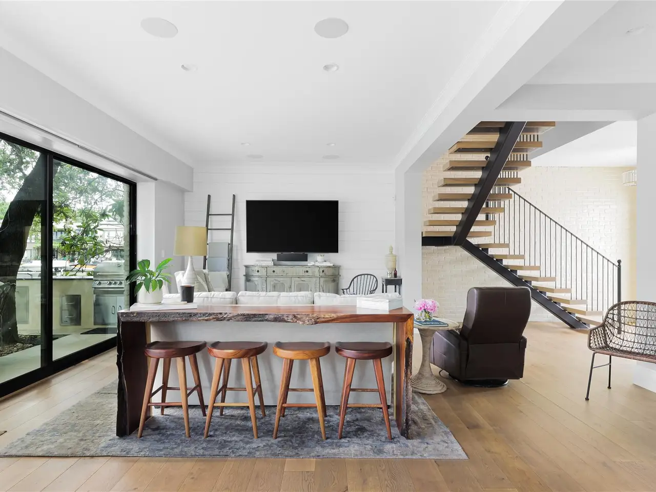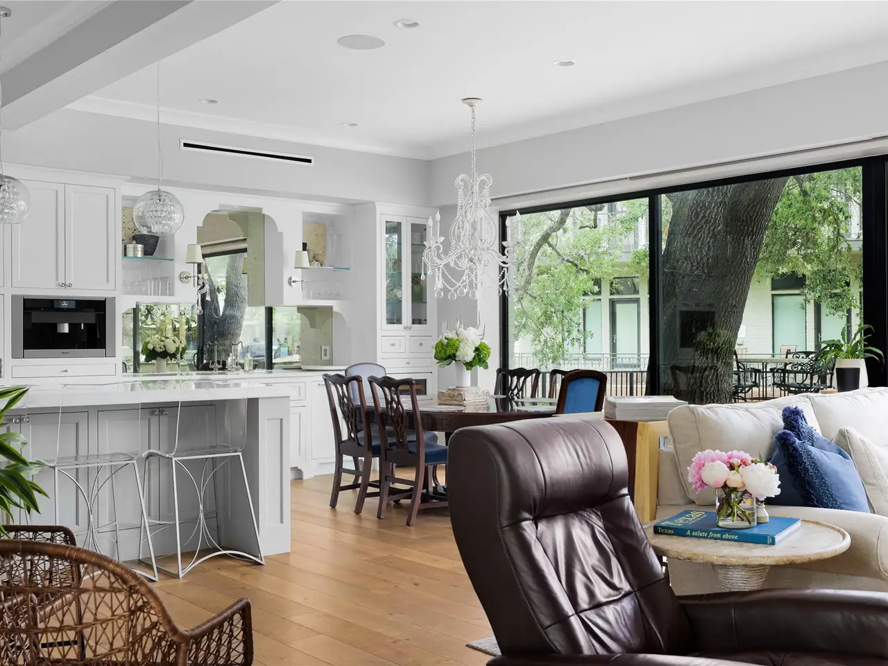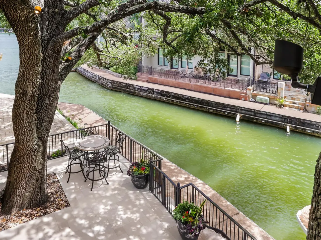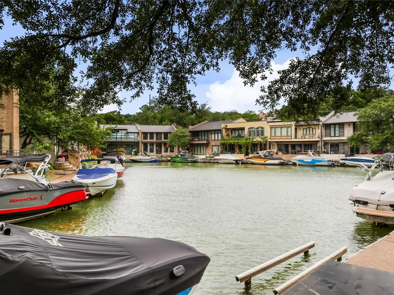 Located in the gated Harbor on Lake Austin community, 2463 Westlake Drive presents a rare turnkey waterfront opportunity in the heart of Westlake. This updated 4-bedroom, 3.5-bathroom townhome offers elegant lakeside living with direct water access and a private boat lift just steps from the shaded patio. Inside, sleek modern updates include a black steel-frame front door, floating staircase, and wide-plank light hardwood floors that reflect the natural light pouring in from large sliding glass doors. The open-concept living space flows seamlessly to the outdoors, framing tranquil lake views and creating the perfect setting for both everyday living and weekend entertaining. The chef's kitchen is equipped with top-tier appliances, including a built-in Sub-Zero refrigerator and a Miele espresso machine, centered around a large island with breakfast bar seating. A wet bar and wine fridge complement the main living space, while the outdoor summer kitchen on the waterfront patio makes al fresco dining effortless. Upstairs, the primary suite boasts a private terrace overlooking the lake--ideal for morning coffee or unwinding at sunset. Two additional bedrooms and a versatile study, easily used as a fourth bedroom, provide ample space for guests or family. With a two-car garage cleverly outfitted with full-size Murphy bunk beds, this low-maintenance residence offers both comfort and flexibility just minutes from downtown Austin and within the acclaimed Eanes ISD.