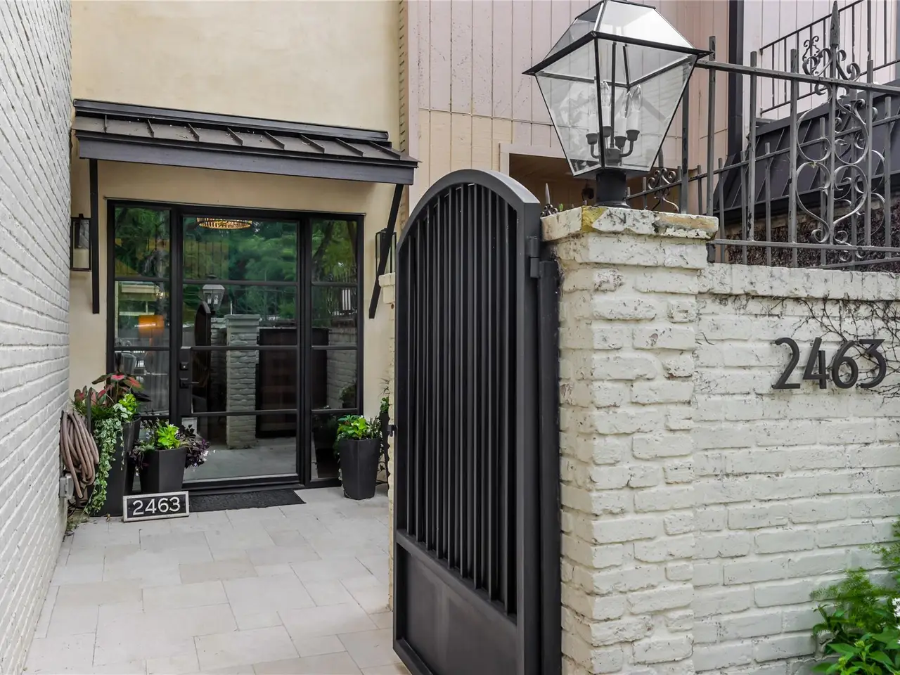 Black steel-frame front door