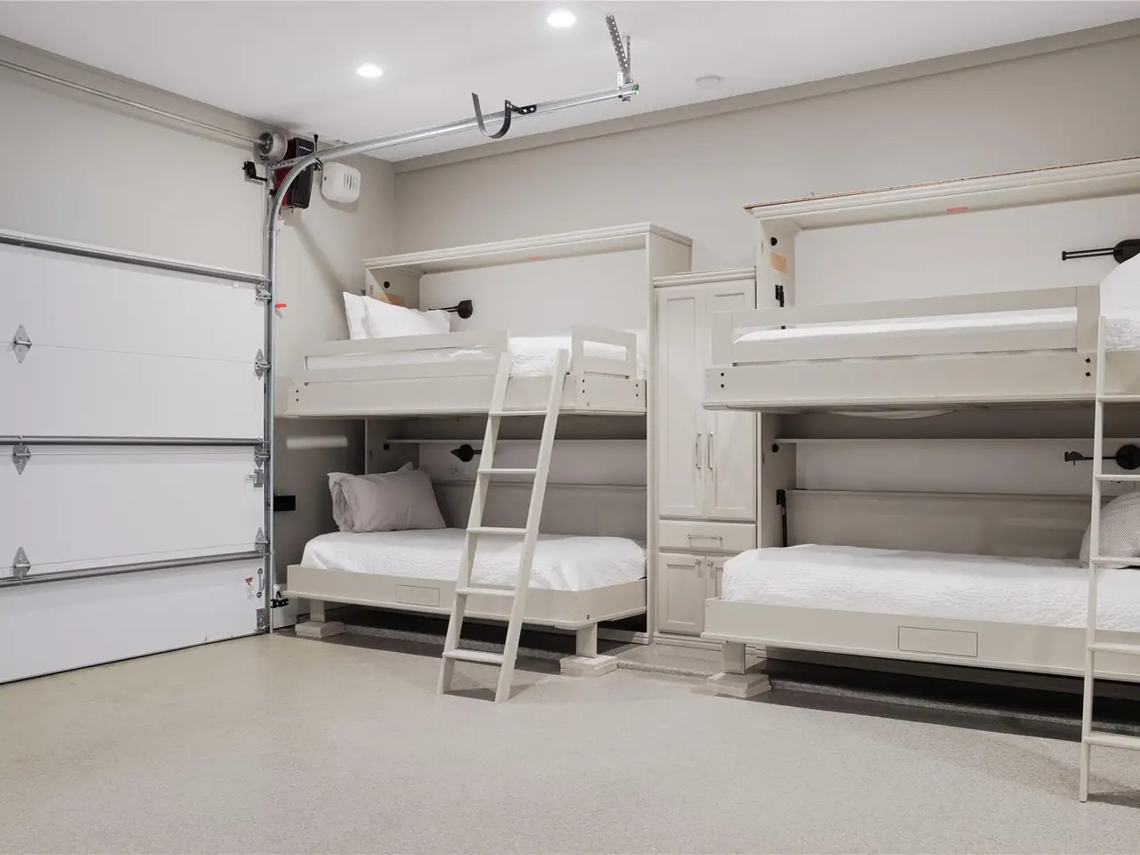 Two-car garage with Murphy bunk beds