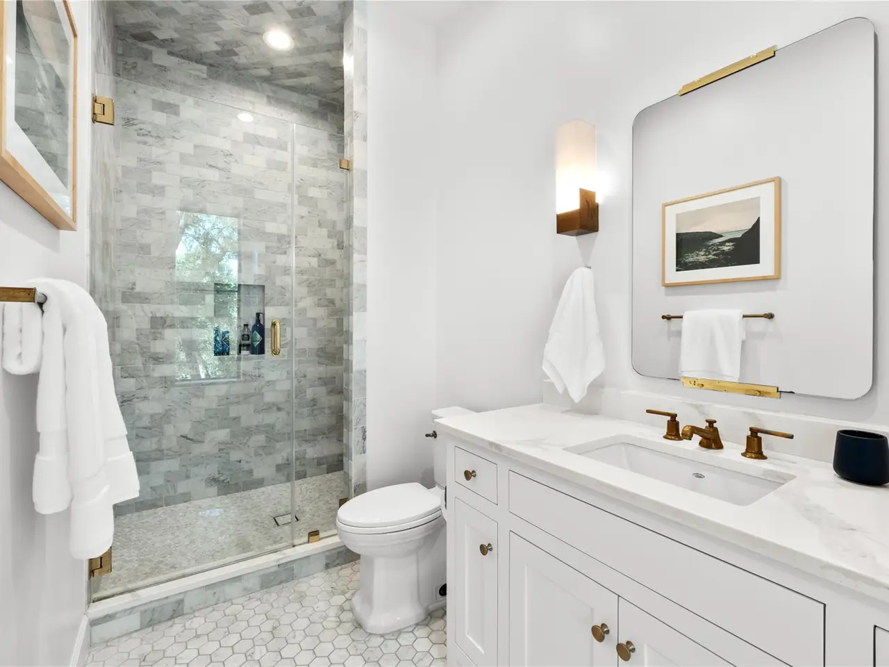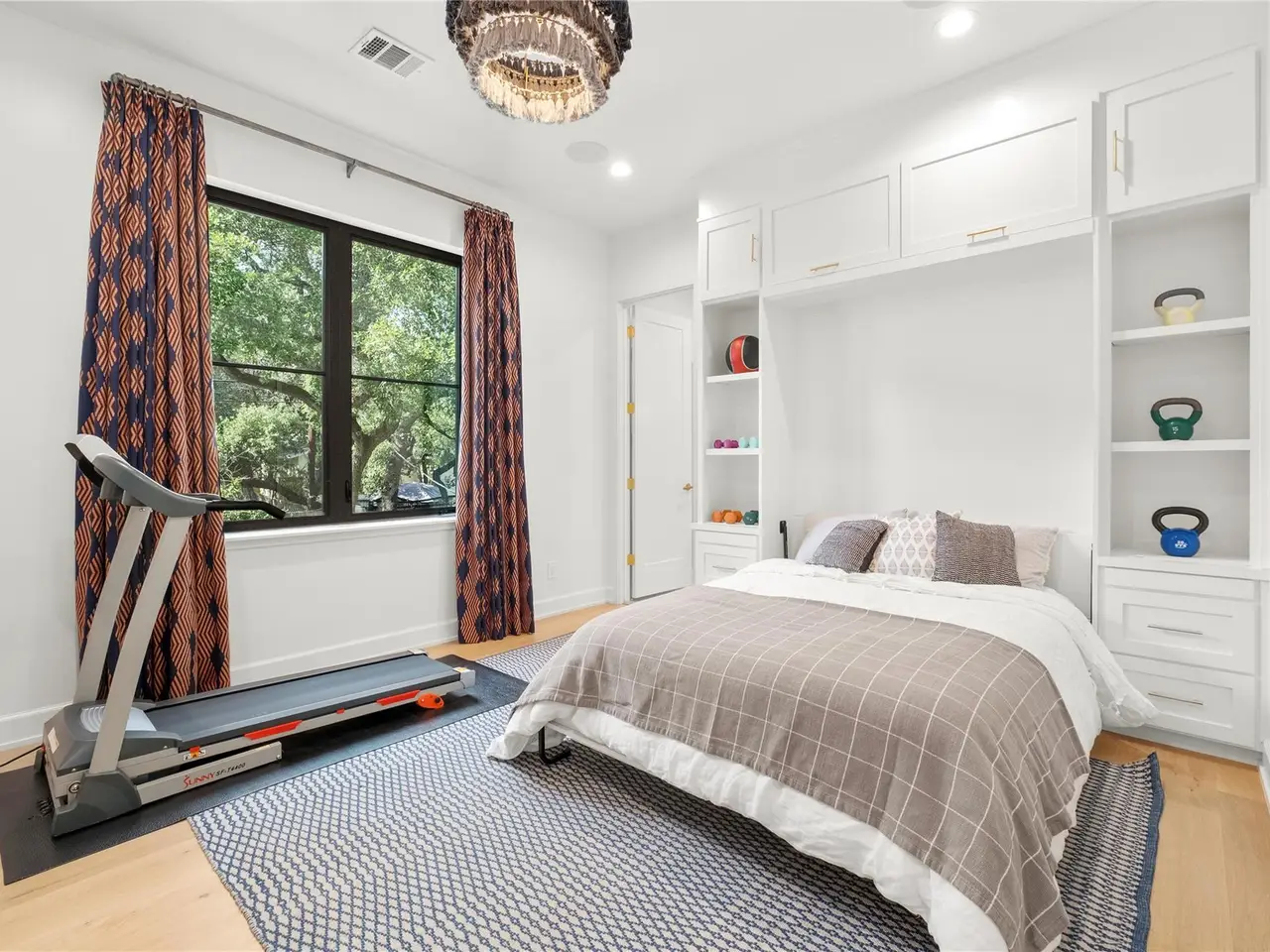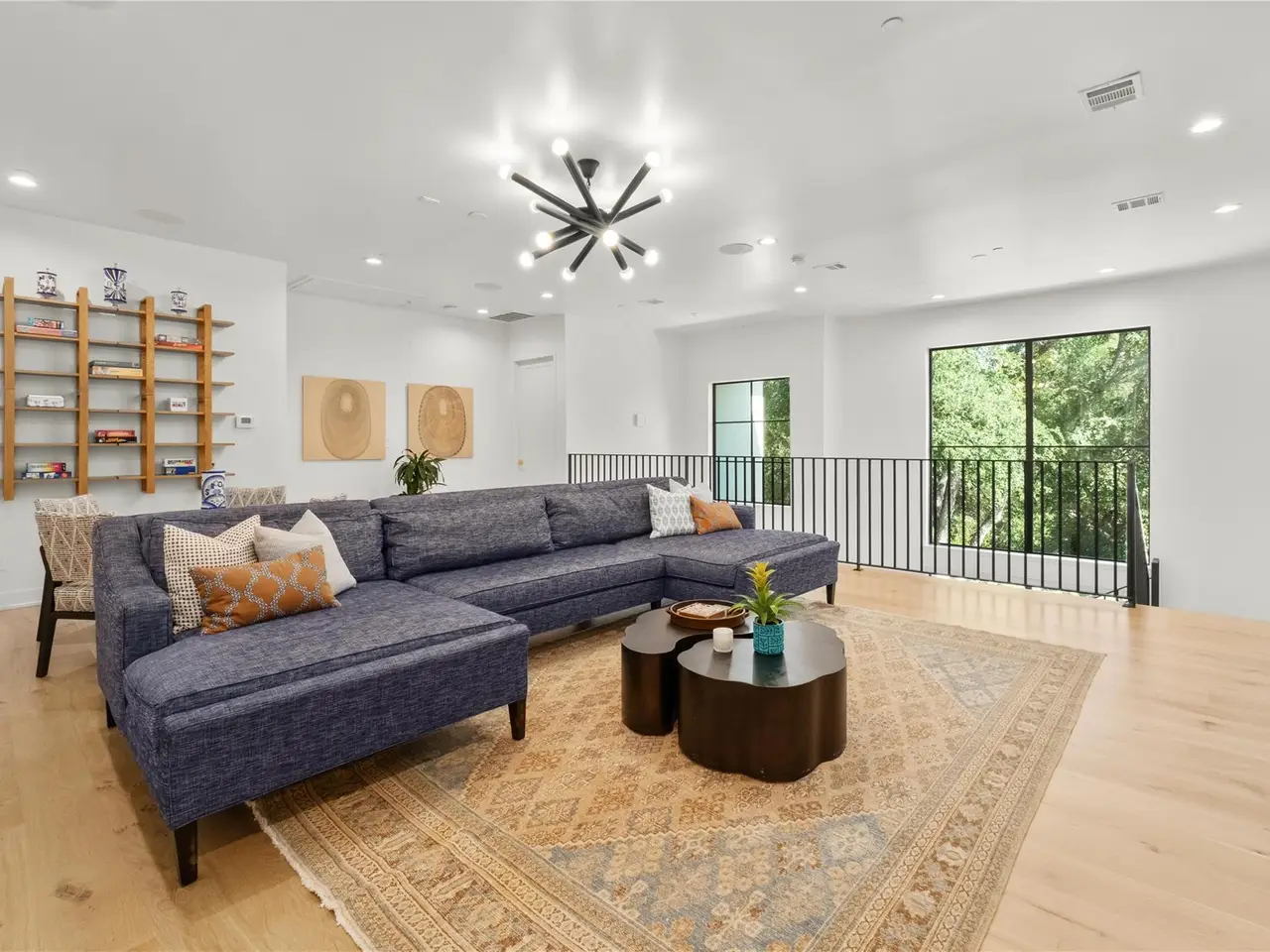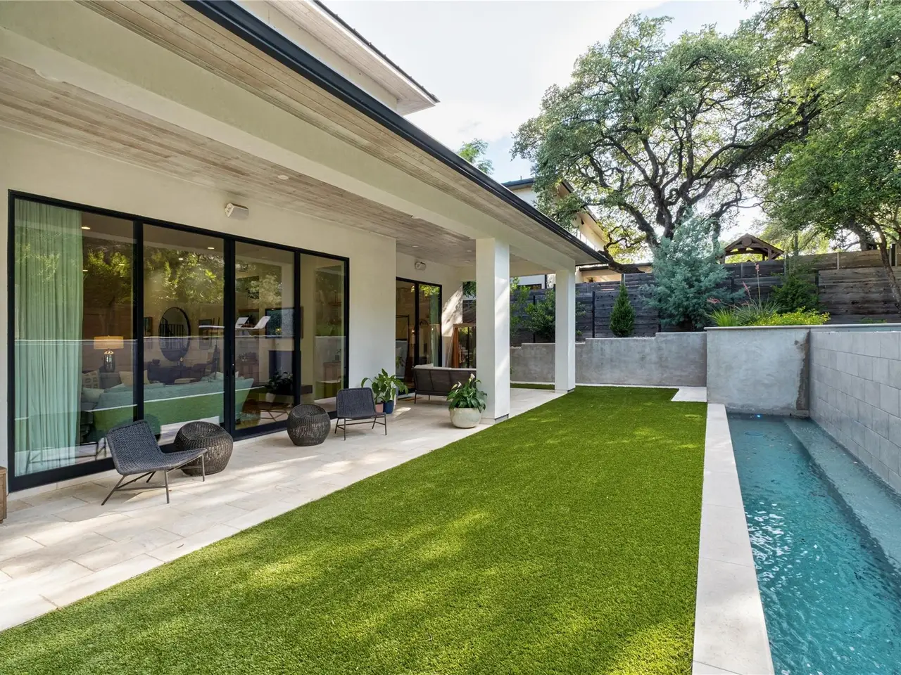 Step into refined comfort in this stunning 4-bed, 4.5-bath home with 4,486 sq ft of beautifully designed living space on a .47-acre corner lot. A blend of contemporary elegance and inviting warmth, this exceptional residence was featured on the cover of LUXE Interiors + Design and received a 12-page editorial in 2021. The open-concept great room is the heart of the home, seamlessly connecting living, kitchen, and dining areas. Custom caned-door cabinets flank the fireplace, while a cozy window seat nestles beneath the stairs. A main-level study with built-ins offers an ideal space for work or quiet focus. The main-level primary suite provides convenience and privacy, while the upper level features three additional bedrooms--each with its own full bath--and a secondary living area ideal for media or playroom. One bedroom includes a custom Murphy bed, easily converting the space from a gym to a guest suite. Designed with a sophisticated yet welcoming palette, the home showcases rich textures, statement wallpaper in key rooms, and striking lighting, including a dramatic pendant by Australian designer Christopher Boots. Custom draperies and window treatments complete the look. The backyard is built for entertaining with an outdoor kitchen, a heated 9-ft-deep pool with diving board by Modern Pools, and a putting green. A Control4 system with integrated sound and cameras, plus a fire sprinkler system, add modern convenience and safety. The 3-car garage and meticulous design throughout make this home truly one-of-a-kind. Located in the acclaimed Eanes ISD, this home is walkable to Rollingwood Park and Trader Joe's, and just minutes from Zilker Park and downtown Austin, offering the perfect balance of tranquility and city life.