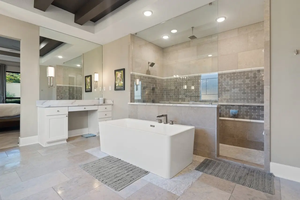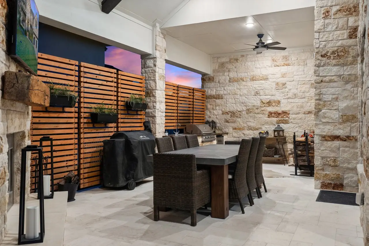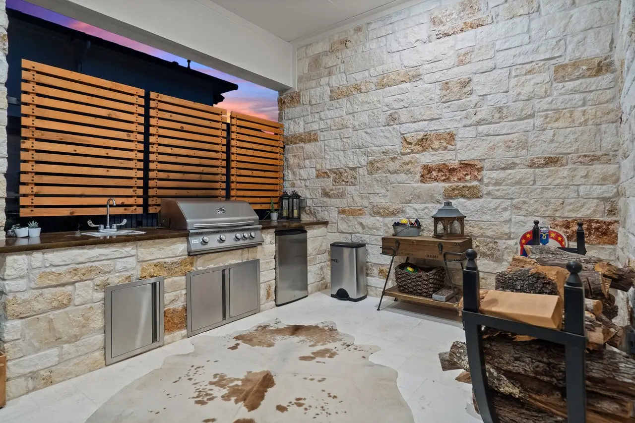 Built in 2019 by the renowned Westin Homes, this 4,494-square-foot masterpiece offers a harmonious blend of style and functionality. Featuring 4 spacious bedrooms, 3.5 luxurious bathrooms, a dedicated office, and an inviting media room, every detail of this home is designed with thoughtful precision. Step into the chef-inspired kitchen, complete with a Sub-Zero refrigerator, a five-burner Wolf stove, and high-end custom finishes. The open-concept layout seamlessly flows into the living and dining areas, where coffered ceilings and expansive windows frame views of the lush backyard oasis. Each bedroom boasts a private en suite bath and walk-in closet, making it perfect for both family and guests. The primary suite is a sanctuary, offering a spa-like bathroom with a soaking tub, dual vanities, and a glass-enclosed shower, all complemented by upscale finishes and natural light. Outside, your private retreat awaits. Situated on 0.327 acres, the backyard features a custom-designed pool and spa with cascading waterfalls, an outdoor kitchen, and a cozy cabana complete with a fireplace. A six-foot privacy wall and carefully curated landscaping create a true sanctuary for relaxation and entertainment. Additional highlights include a three-car garage, a laundry room, and a full wet bar for entertaining. Located just minutes from shopping, dining, and the highly acclaimed Lake Travis Schools, this home offers the perfect balance of convenience and tranquility. This is more than a home—it’s a lifestyle.