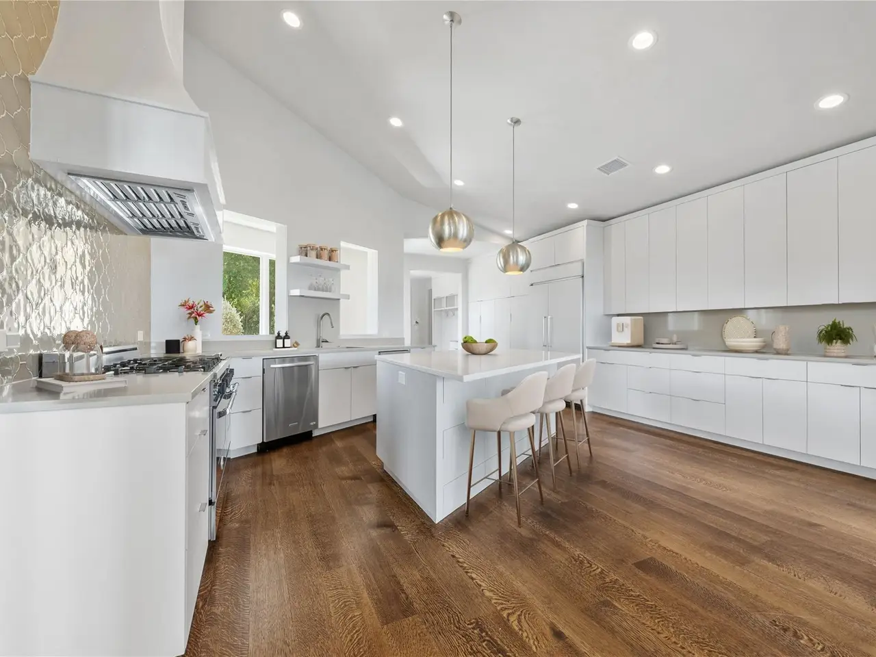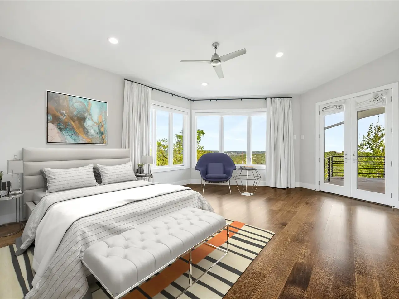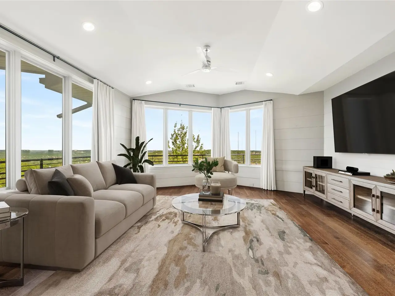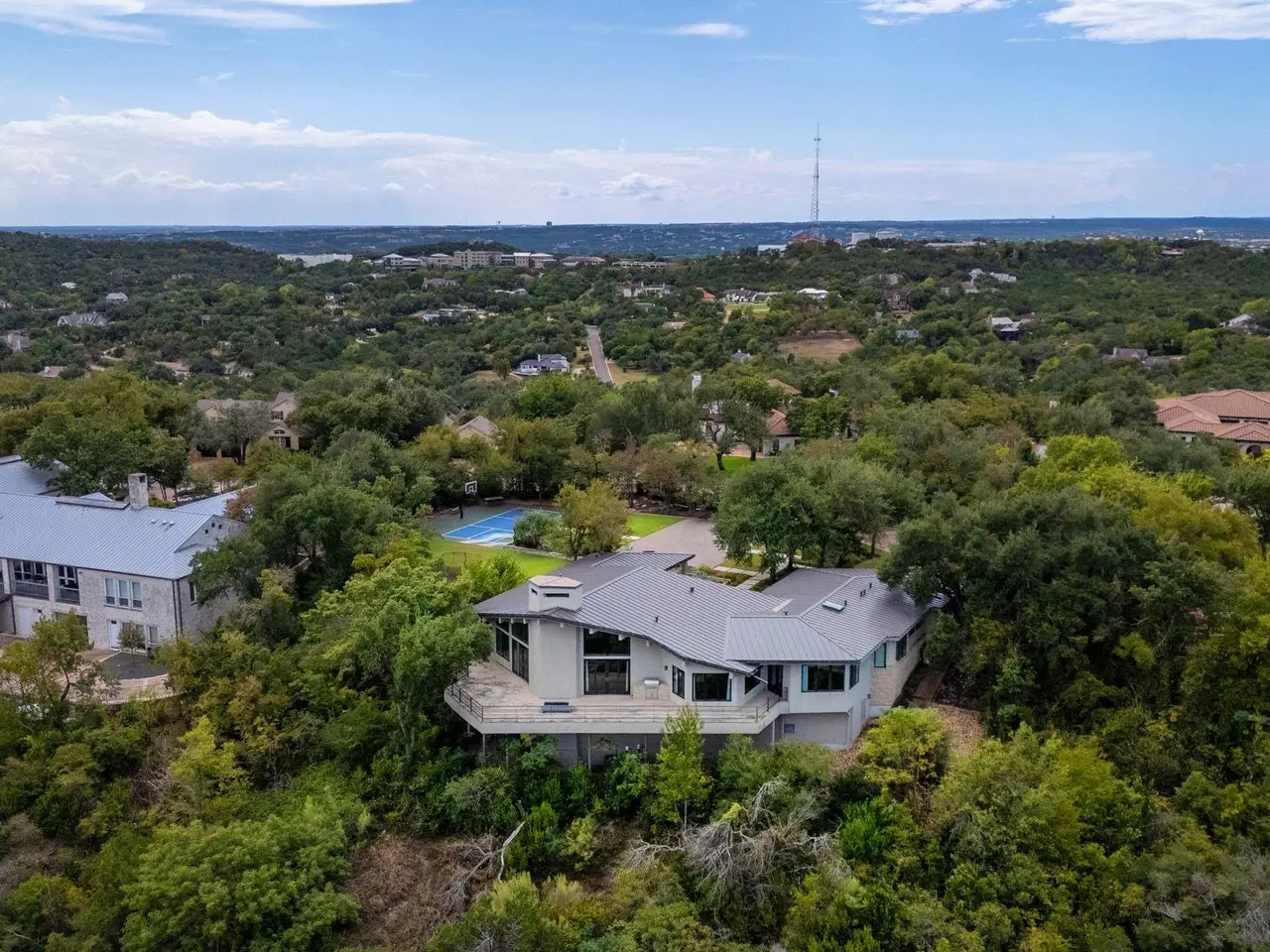 Situated in Rob Roy, one of Westlake's most coveted gated communities, 10 Hedge Lane boasts exceptional views, expansive terraces, and a 3-car garage. The single-level residence features 4 bedrooms and 4.5 bathrooms on a premier lot with a lush green yard and sports court. Glide over floating stones as you approach the striking glass doors that welcome you inside the residence. The interiors instantly impress with a vaulted ceiling, fireplace, and incredible panoramic views of the Hill Country and the Austin skyline in the distance. Natural light pours into the living room through abundant windows and sliding glass doors to the terrace. The living room flows into the immaculate gourmet kitchen with ample cabinetry, stainless steel appliances, and a wet bar. Escape to the privacy of the primary suite that features French doors to the terrace and beautiful vistas. The spacious primary bathroom offers dual sinks, a soaking tub, a glass-enclosed shower, a vanity room, and a massive walk-in closet. 3 additional guest suites, each with en-suite baths, provide comfort and privacy for family and visitors. A powder room, mudroom, and laundry room complete the home. Living in Rob Roy offers the perfect blend of privacy, prestige, and convenience in one of Austin's most sought-after gated communities. Nestled in the scenic hills of West Austin, residents enjoy expansive homesites with breathtaking Hill Country views, all while being just minutes from downtown, Lake Austin, and top-rated Eanes ISD schools. With 24-hour security, a tranquil atmosphere, and proximity to premier shopping, dining, and entertainment at Barton Creek and Westlake, Rob Roy provides a rare opportunity to enjoy both serene living and the vibrancy of Austin life. Tax and assessed values are estimates for illustration purposes only. All figures should be independently verified. Some images are virtually staged for visualization and may not reflect the actual appearance or condition of the property.