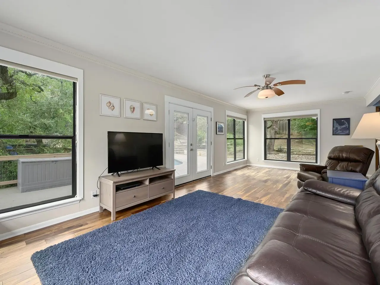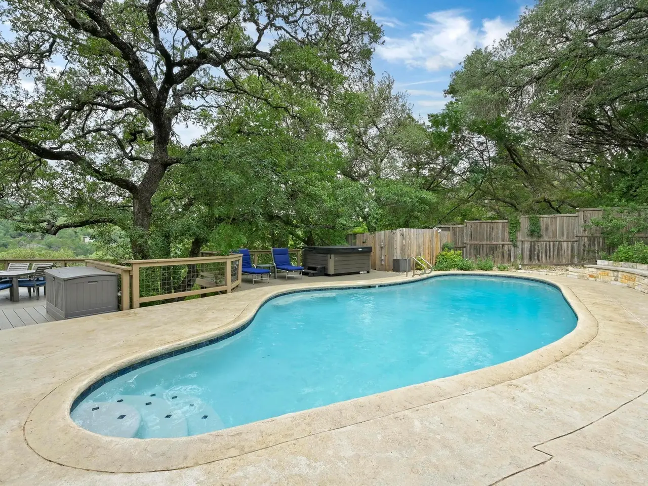 *4-car garage + Views* Timeless Westlake Hills Retreat with Stunning Canyon Views. Nestled on a serene and private .54-acre lot in the coveted Westlake Hills, this beautifully maintained residence blends classic charm with thoughtful updates throughout. Located on a quiet cul-de-sac and backing to lush Hill Country, the home offers over 900 square feet of partially covered outdoor living spaces, with sweeping canyon views - a true retreat just minutes from downtown Austin. A rare 4-car garage space provides exceptional storage and convenience. One of the garages is air conditioned to become a studio or workshop. Inside, you'll find four spacious bedrooms all upstairs, along with 2.5 well-appointed bathrooms. The flexible layout features two generous living areas and two dining spaces - ideal for both gatherings and everyday comfort. The expansive kitchen opens seamlessly to the family room, creating a warm and inviting hub of the home. Outdoors, enjoy the large 8' deep sparkling pool, relaxing hot tub, and ample space to unwind in total privacy. This is Westlake living at its finest--privacy, space, and natural beauty in a premier location.