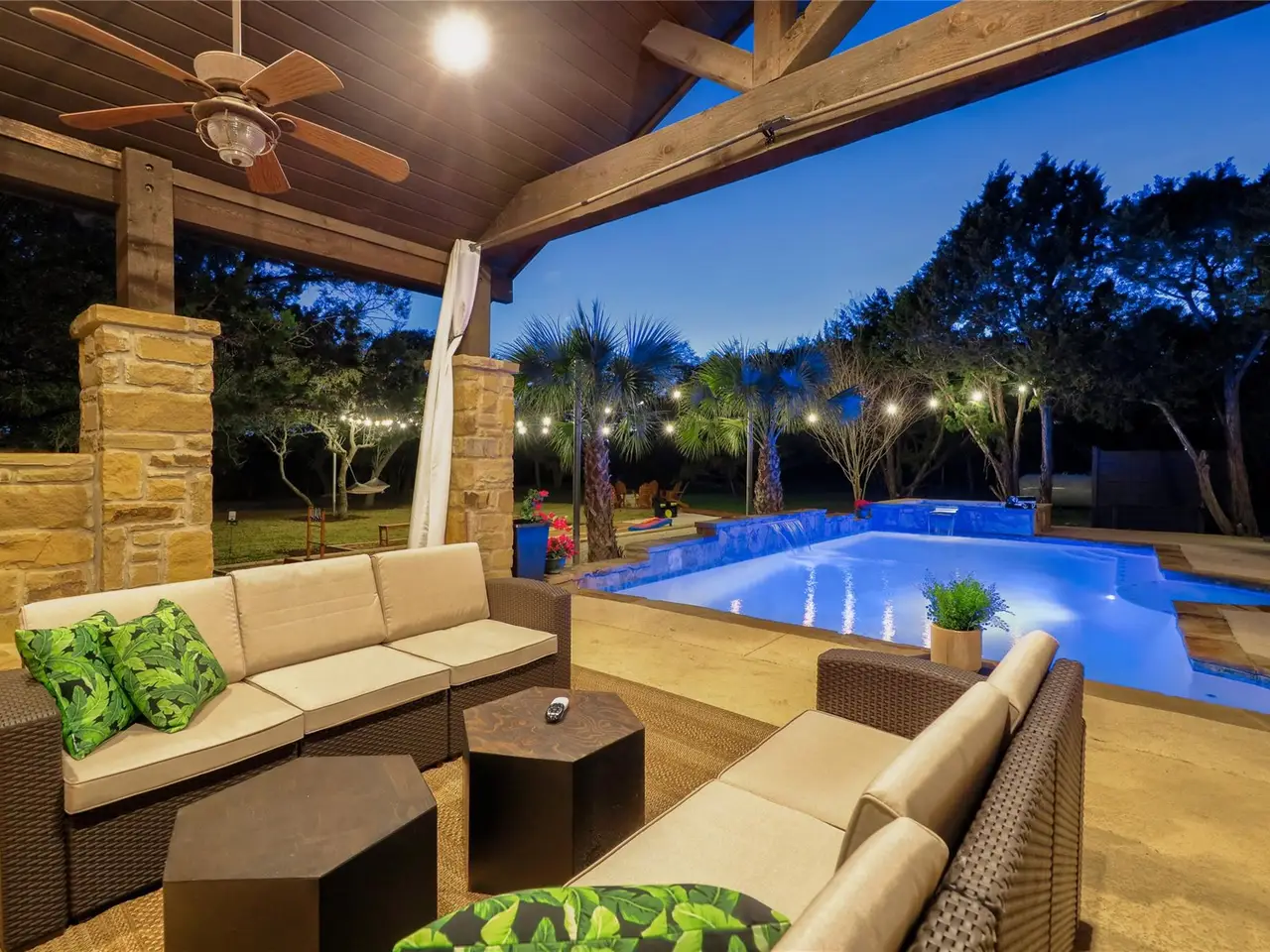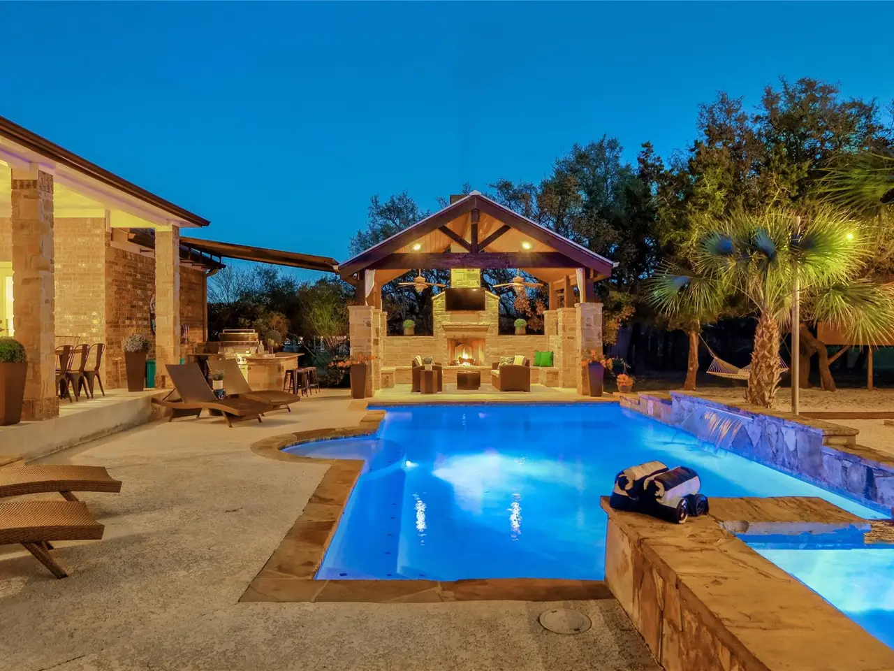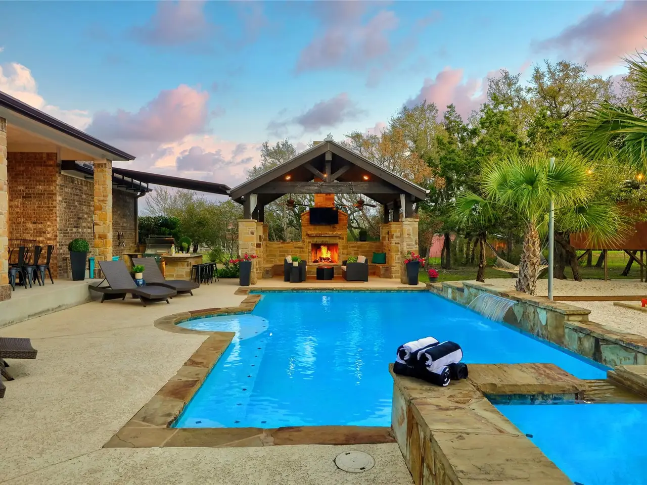 Welcome to a high-performing short-term rental opportunity set in a perfectly serene Hill Country setting, and 15 miles from downtown Austin, 15 miles from Dripping Springs and 9 miles from the renowned Driftwood Golf and Ranch Club. The property seamlessly blends luxury, comfort, and incredible income-generating potential. Designed to accommodate 16 guests, this 6-bedroom, 4-bathroom custom home offers a sprawling single-story layout, perfect for effortless entertaining and relaxation. Set on a private 2.2-acre privately gated lot, the backyard is an entertainer's dream--featuring a sparkling pool, hot tub, cabana, basketball court, stainless propane grill, hammock garden, and a game-ready setup with cornhole and ladder ball. Gather around the outdoor fireplace to soak in the ambiance, creating the perfect retreat for large groups and family getaways. The interiors were extensively remodeled in 2020 and radiate sophistication, with granite kitchen counters, a spacious island, and commercial-grade stainless steel appliances. Designed by a local award-winning interior designer, the home can be offered fully furnished with high-end pieces and luxury linens, ensuring a five-star experience for every guest. Ideally located just 15 miles from Dripping Springs, the property offers easy access to top-tier wedding venues, wineries, breweries, distilleries, and world-famous spots like The Salt Lick BBQ. Additional recent updates include a water heater (2023), remote-controlled sprinkler system (2024), outdoor grill (2025) and fully automated Pentair pool equipment. With a proven track record of strong rental income, this property is perfect for buyers looking to own a luxury escape, while generating passive income. Showings Sundays after 4pm through Thursdays at 2pm with 24-Hour Advance Showing Notice. Tax and assessed values are estimates for illustration purposes only. All figures should be independently verified.