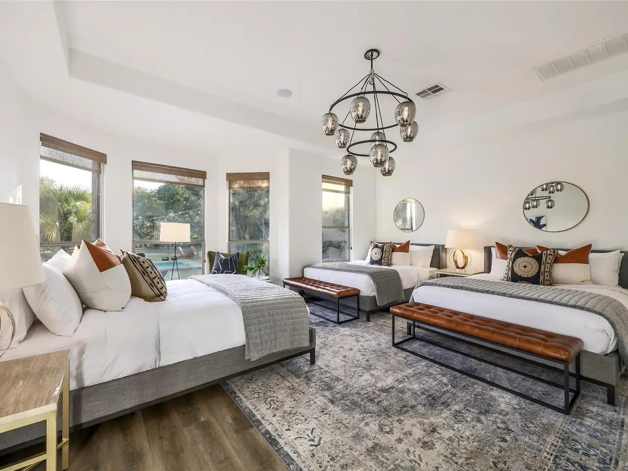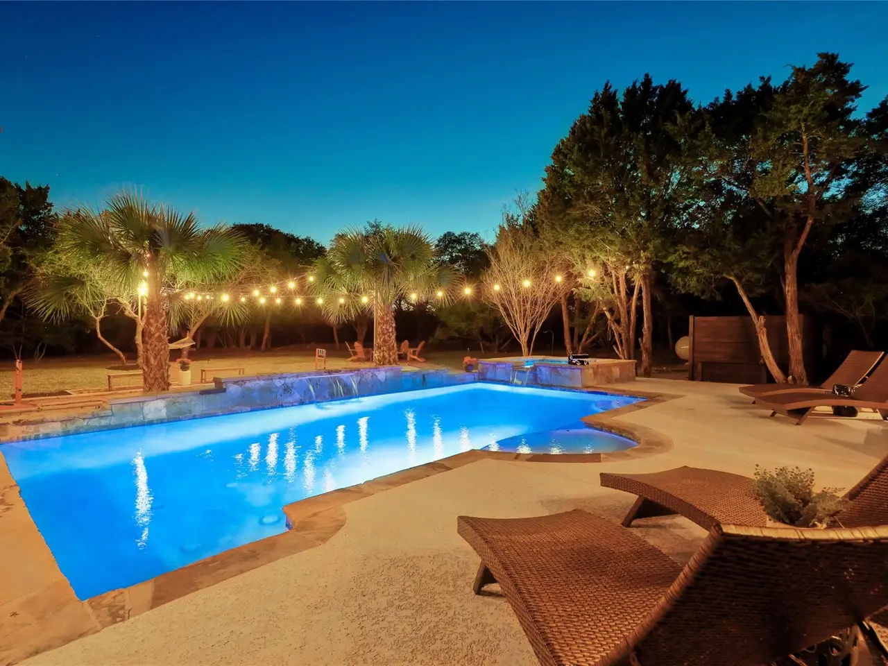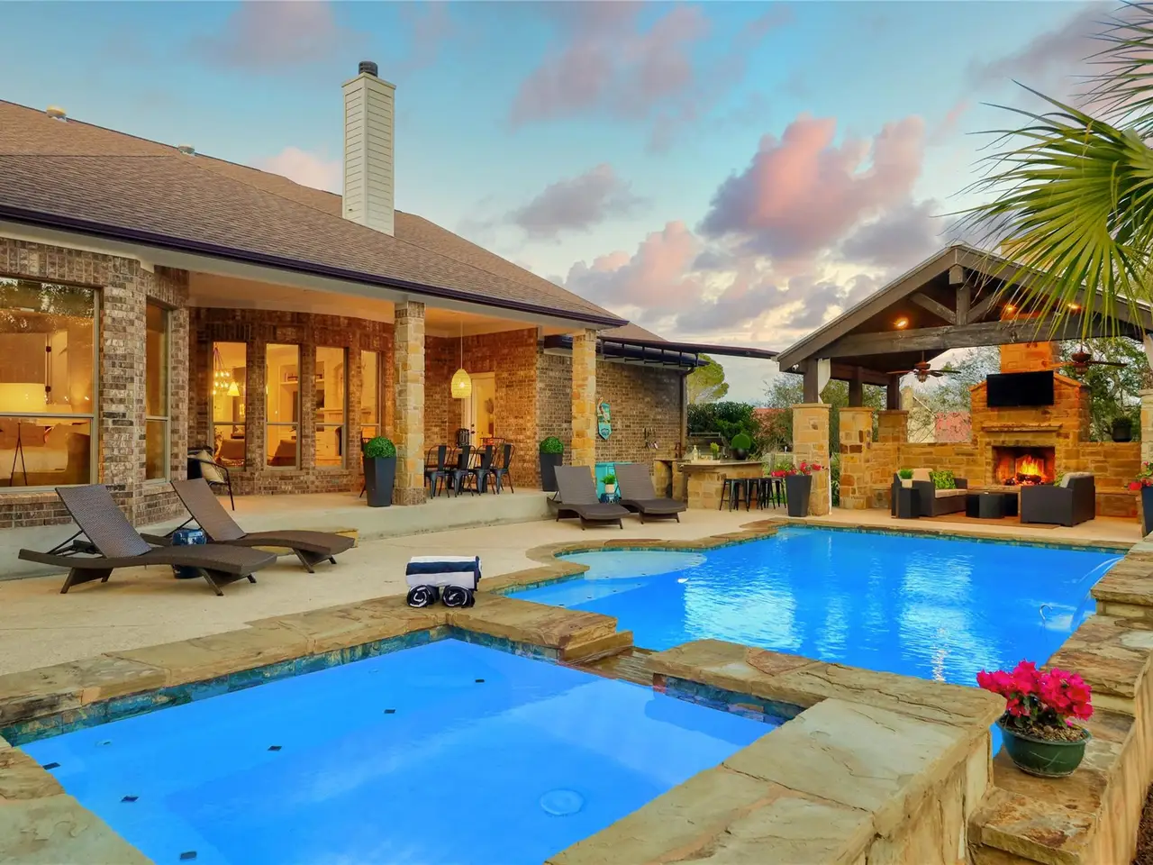 Welcome to a high-performing short-term rental opportunity set in a perfectly serene Hill Country setting, and 15 miles from downtown Austin, 15 miles from Dripping Springs and 9 miles from the renowned Driftwood Golf and Ranch Club. The property seamlessly blends luxury, comfort, and incredible income-generating potential. Designed to accommodate 16 guests, this 6-bedroom, 4-bathroom custom home offers a sprawling single-story layout, perfect for effortless entertaining and relaxation. Set on a private 2.2-acre privately gated lot, the backyard is an entertainer's dream--featuring a sparkling pool, hot tub, cabana, basketball court, stainless propane grill, hammock garden, and a game-ready setup with cornhole and ladder ball. Gather around the outdoor fireplace to soak in the ambiance, creating the perfect retreat for large groups and family getaways. The interiors were extensively remodeled in 2020 and radiate sophistication, with granite kitchen counters, a spacious island, and commercial-grade stainless steel appliances. Designed by a local award-winning interior designer, the home can be offered fully furnished with high-end pieces and luxury linens, ensuring a five-star experience for every guest. Ideally located just 15 miles from Dripping Springs, the property offers easy access to top-tier wedding venues, wineries, breweries, distilleries, and world-famous spots like The Salt Lick BBQ. Additional recent updates include a water heater (2023), remote-controlled sprinkler system (2024), outdoor grill (2025) and fully automated Pentair pool equipment. With a proven track record of strong rental income, this property is perfect for buyers looking to own a luxury escape, while generating passive income. Showings Sundays after 4pm through Thursdays at 2pm with 24-Hour Advance Showing Notice. Tax and assessed values are estimates for illustration purposes only. All figures should be independently verified.