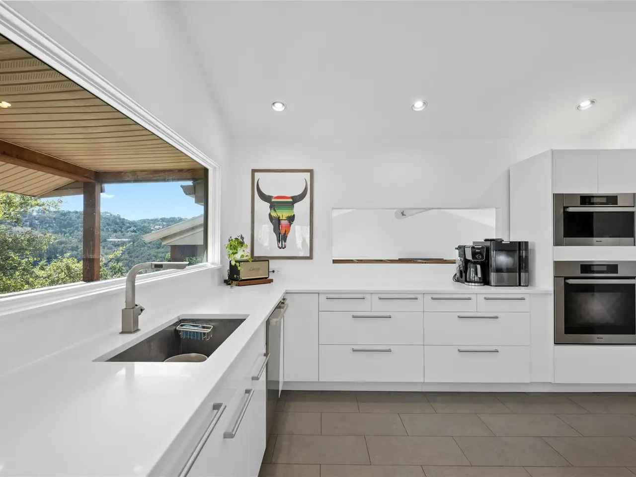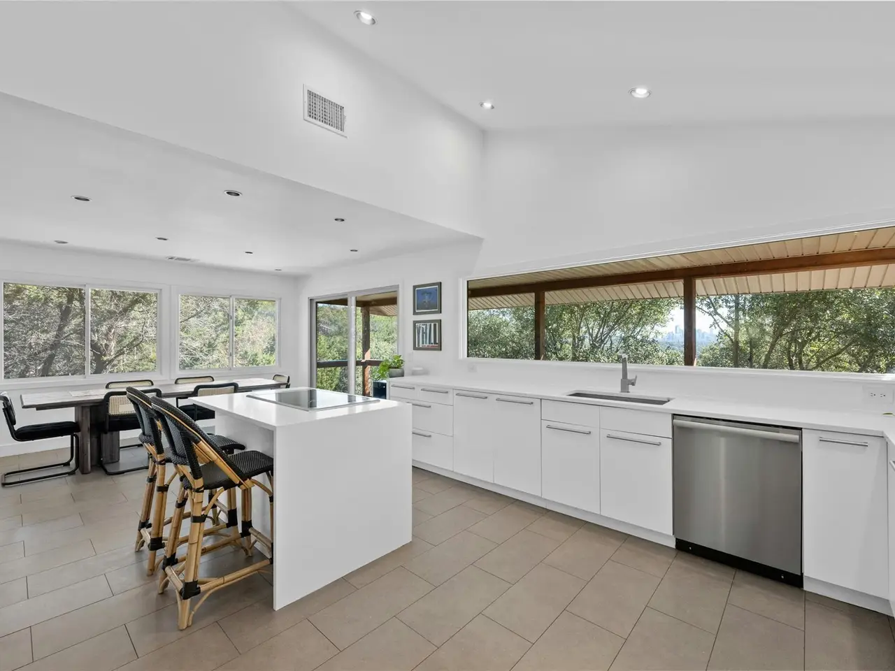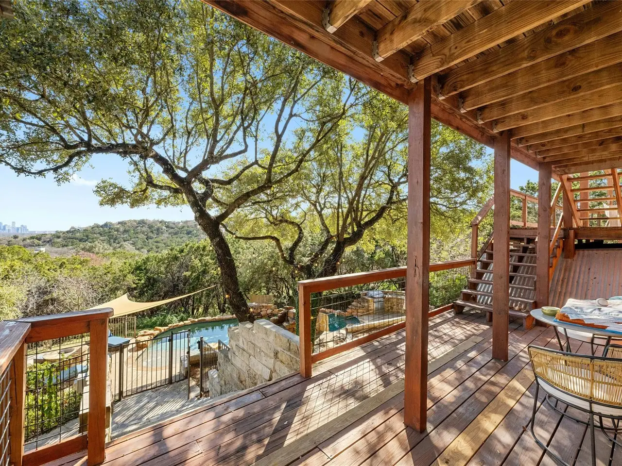 Beautiful city views in private location on quiet cul de sac. Updated 1981 house with a very open floorplan and updated kitchen. Bedroom floorplan is split with 3 bedrooms on lower level. Current tenants use an upstairs space as the primary bedroom. Great outdoor entertaining with pool and sport court and expansive decks and patios.