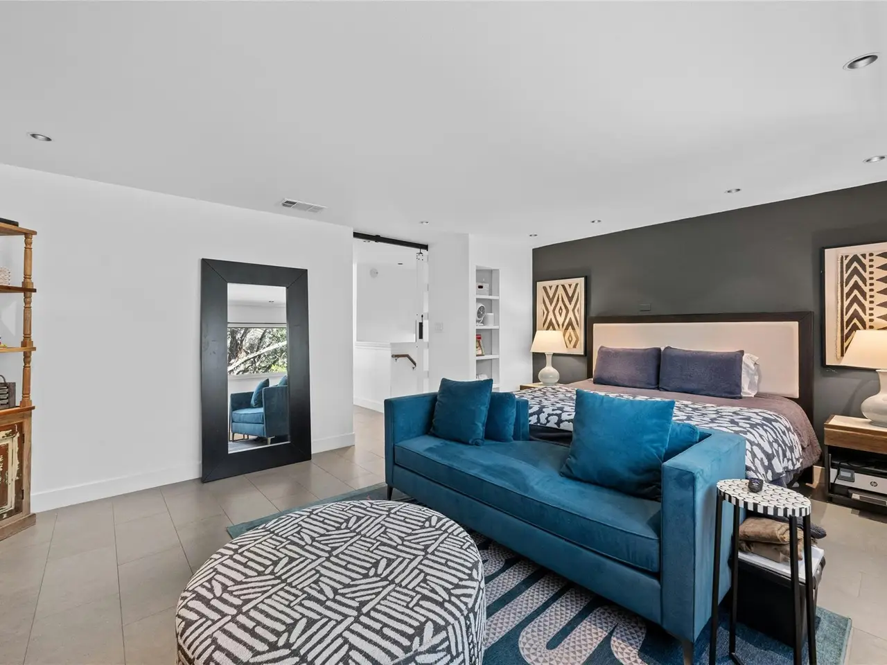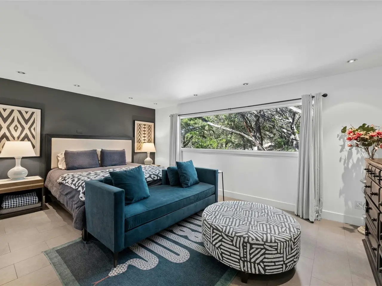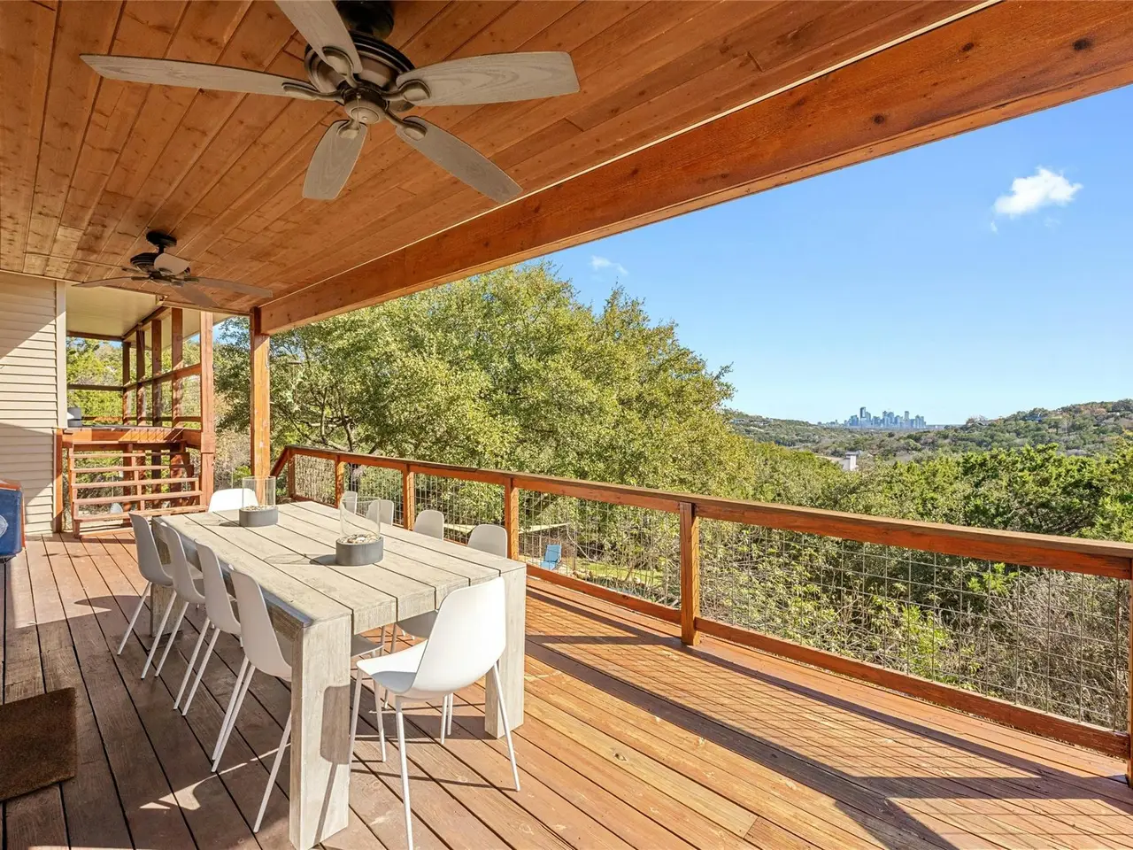 Beautiful city views in private location on quiet cul de sac. Updated 1981 house with a very open floorplan and updated kitchen. Bedroom floorplan is split with 3 bedrooms on lower level. Current tenants use an upstairs space as the primary bedroom. Great outdoor entertaining with pool and sport court and expansive decks and patios.