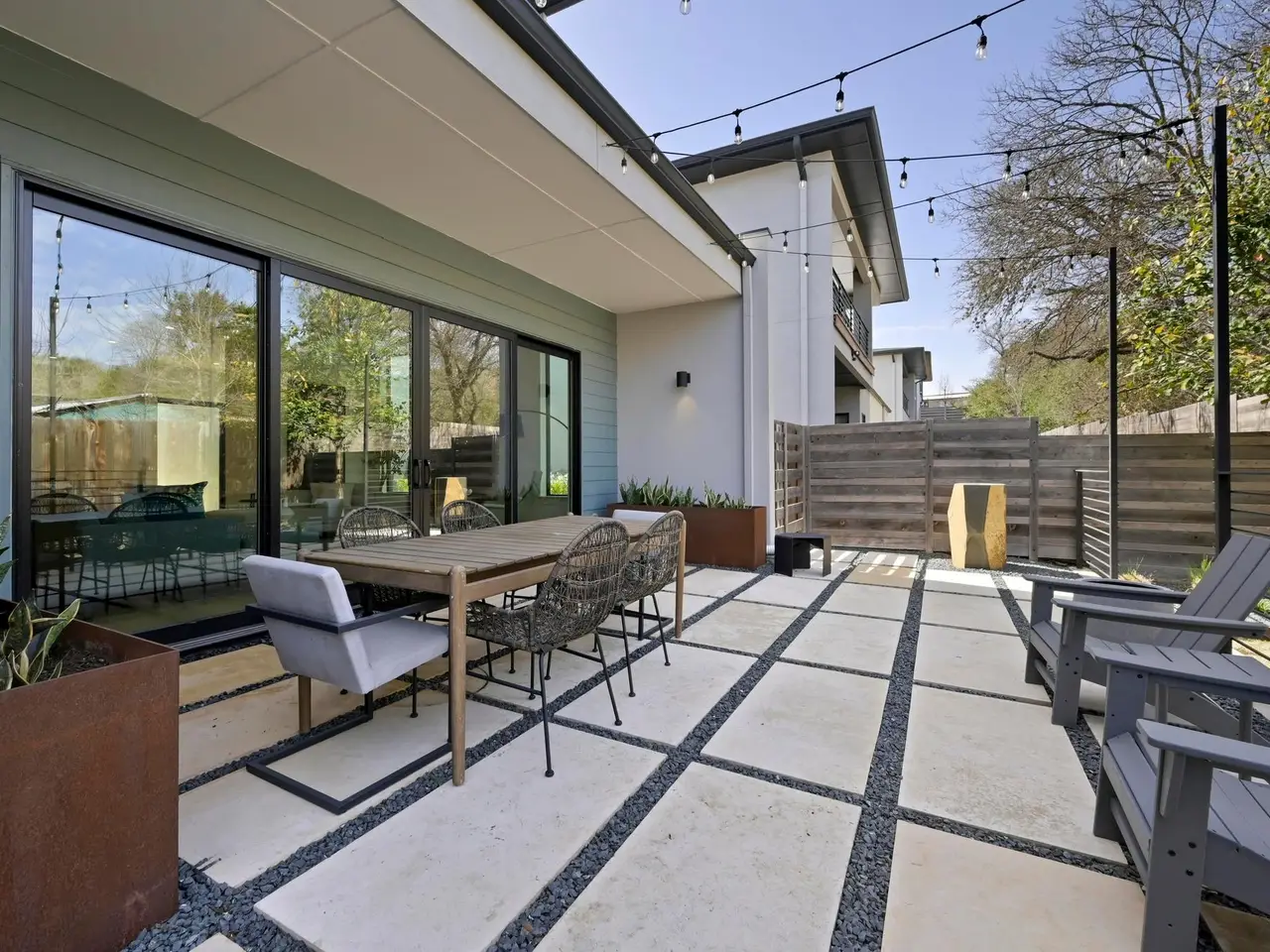 Milam Grove is an exclusive gated enclave of 12 free-standing homes, featuring two-car garages and private yards. Designed by the acclaimed MF Architecture, with interiors curated by Joel Mozersky, 2800 Del Curto #3 exemplifies modern living at its finest. Enter through the modern steel and glass pivot door into the open-concept kitchen, dining, and living spaces. The main level is anchored by expansive sliding doors that extend to a private outdoor oasis--complete with a grilling station, dining space, and fenced yard.The first-floor primary suite is a tranquil retreat, featuring a spa-inspired bathroom, spacious walk-in closet, and private terrace--ideal for morning coffee. Upstairs, a second expansive ensuite bedroom offers the flexibility to serve as a primary suite or an exceptional guest retreat, complete with a large outdoor terrace. Two additional bedrooms share a Jack-and-Jill bathroom, accompanied by a cozy reading nook and a versatile second living area--perfect for a home office or media room. A spacious two-car garage and abundant storage throughout further enhance the home's appeal. Located in the heart of 78704, this modern custom home offers an unbeatable location just minutes from downtown Austin. Enjoy effortless access to South Lamar's top dining and entertainment, including Matt's El Rancho, Loro, and Broken Spoke--all within walking distance. For a peaceful retreat, Tom Lasseter Park is just steps away. This home is ideal for those seeking luxury, convenience, and low-maintenance living in one of Austin's most sought-after neighborhoods.