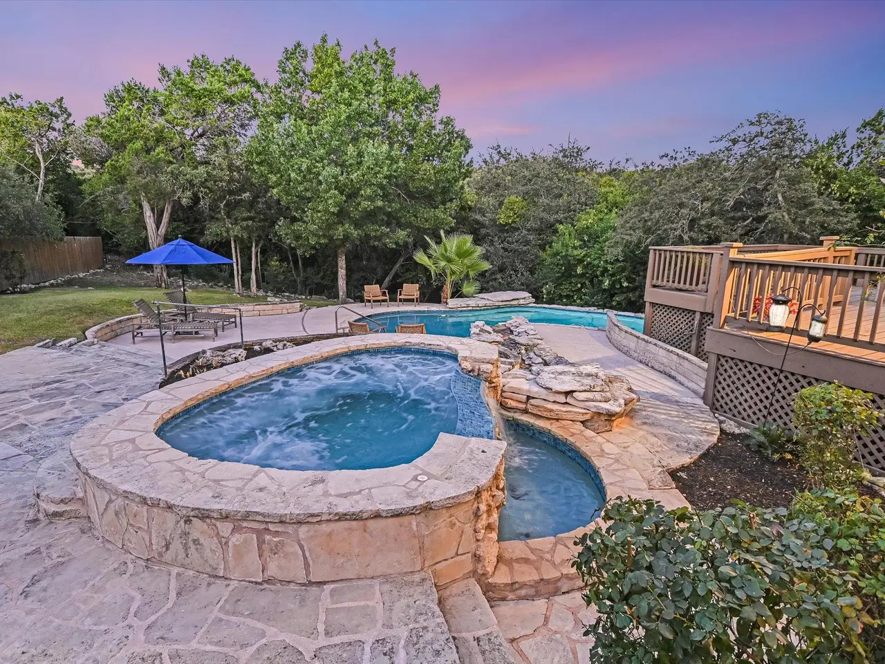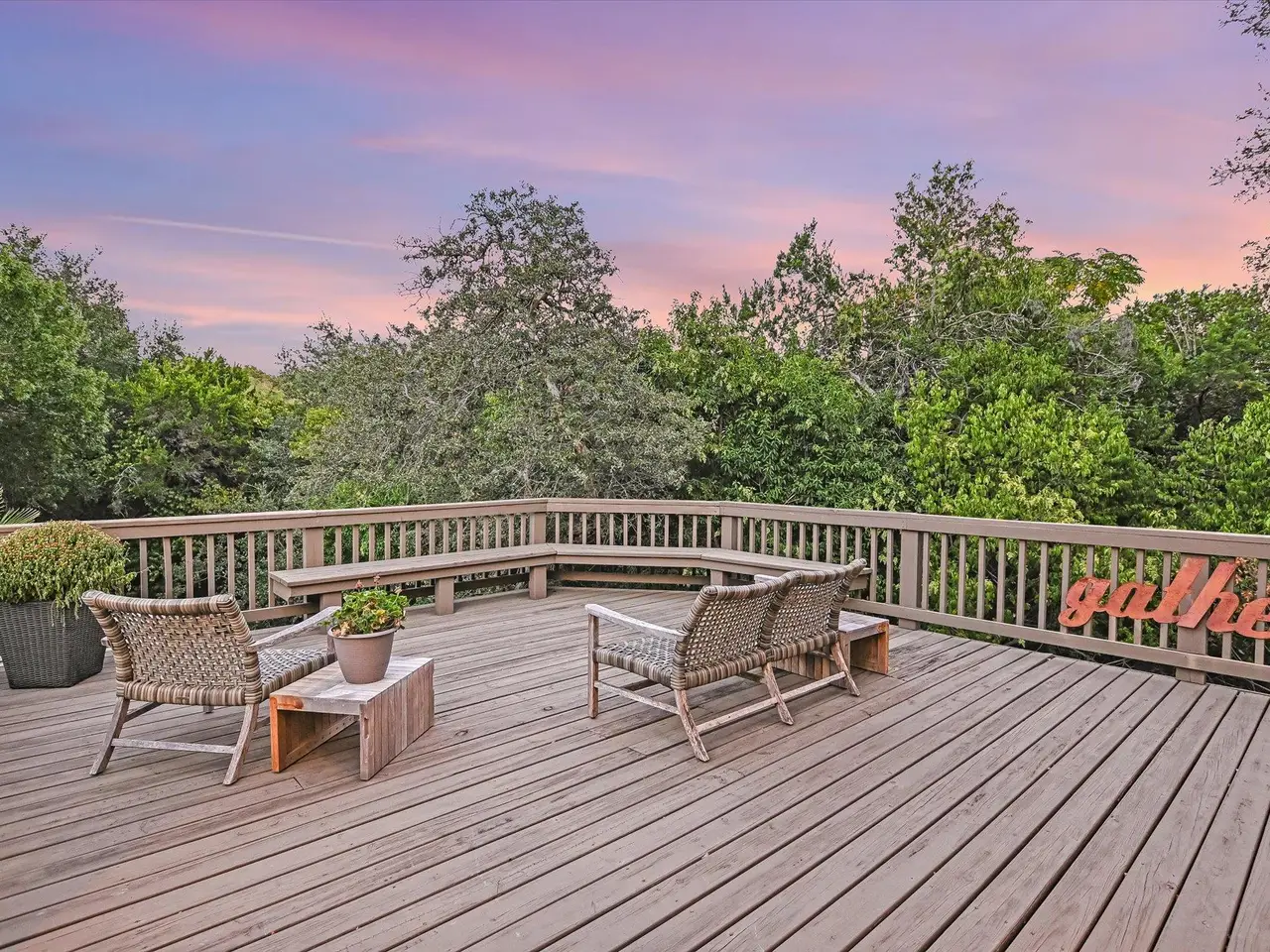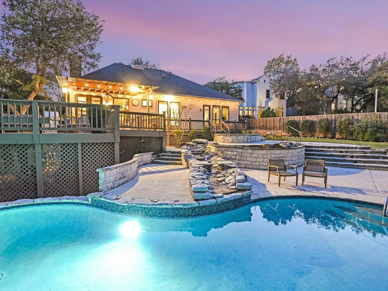 Well-maintained and updated home on iconic Mount Bonnell Rd, bordering the Bright Leaf Preserve with grandfathered private park and Lake Austin access via Mount Bonnell Shores Colorado Crossing park--no HOA dues required. Upgrades include a custom 6' stone wall with gated entry, extended paver driveway, and 8' garage extension. Inside features hardwood flooring, open living/dining, updated kitchen with gas cooktop, white cabinetry, and double ovens. Primary suite opens to a full-length back deck leading to a resurfaced pool/spa (2021). Spa-like primary bath, built-ins in living room, and updated lighting throughout.Major systems include: new windows (2024), new roof & skylights (2023), HVAC (2015), spray attic insulation. The walkable attic offers conversion potential for added square footage or an apartment. A rare Austin property blending privacy and functionality.