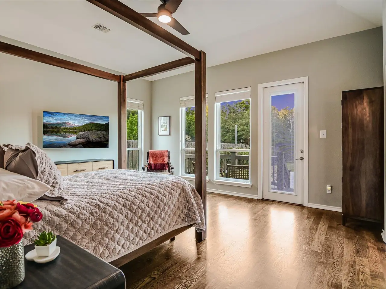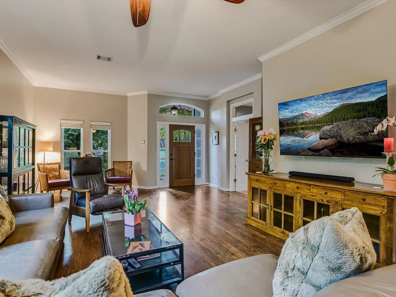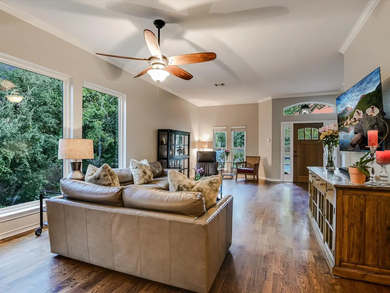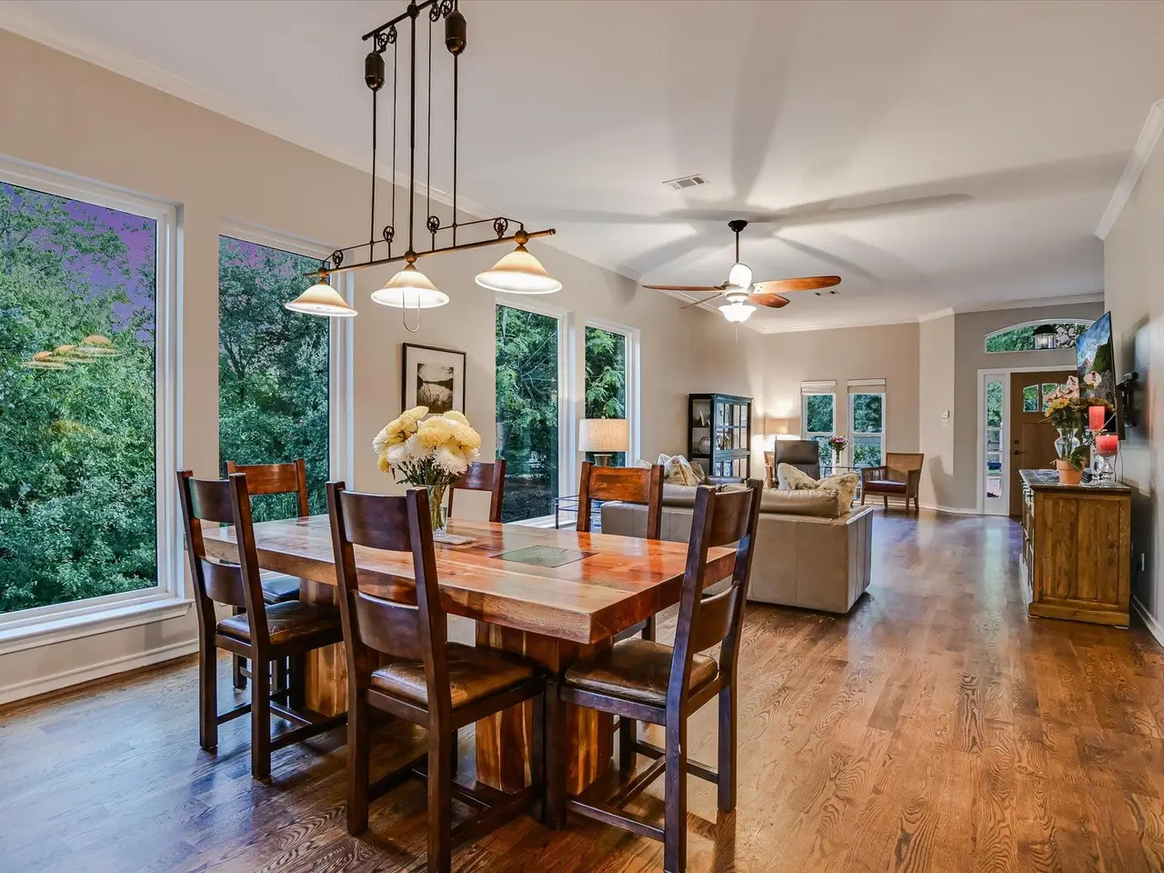 Well-maintained and updated home on iconic Mount Bonnell Rd, bordering the Bright Leaf Preserve with grandfathered private park and Lake Austin access via Mount Bonnell Shores Colorado Crossing park--no HOA dues required. Upgrades include a custom 6' stone wall with gated entry, extended paver driveway, and 8' garage extension. Inside features hardwood flooring, open living/dining, updated kitchen with gas cooktop, white cabinetry, and double ovens. Primary suite opens to a full-length back deck leading to a resurfaced pool/spa (2021). Spa-like primary bath, built-ins in living room, and updated lighting throughout.Major systems include: new windows (2024), new roof & skylights (2023), HVAC (2015), spray attic insulation. The walkable attic offers conversion potential for added square footage or an apartment. A rare Austin property blending privacy and functionality.