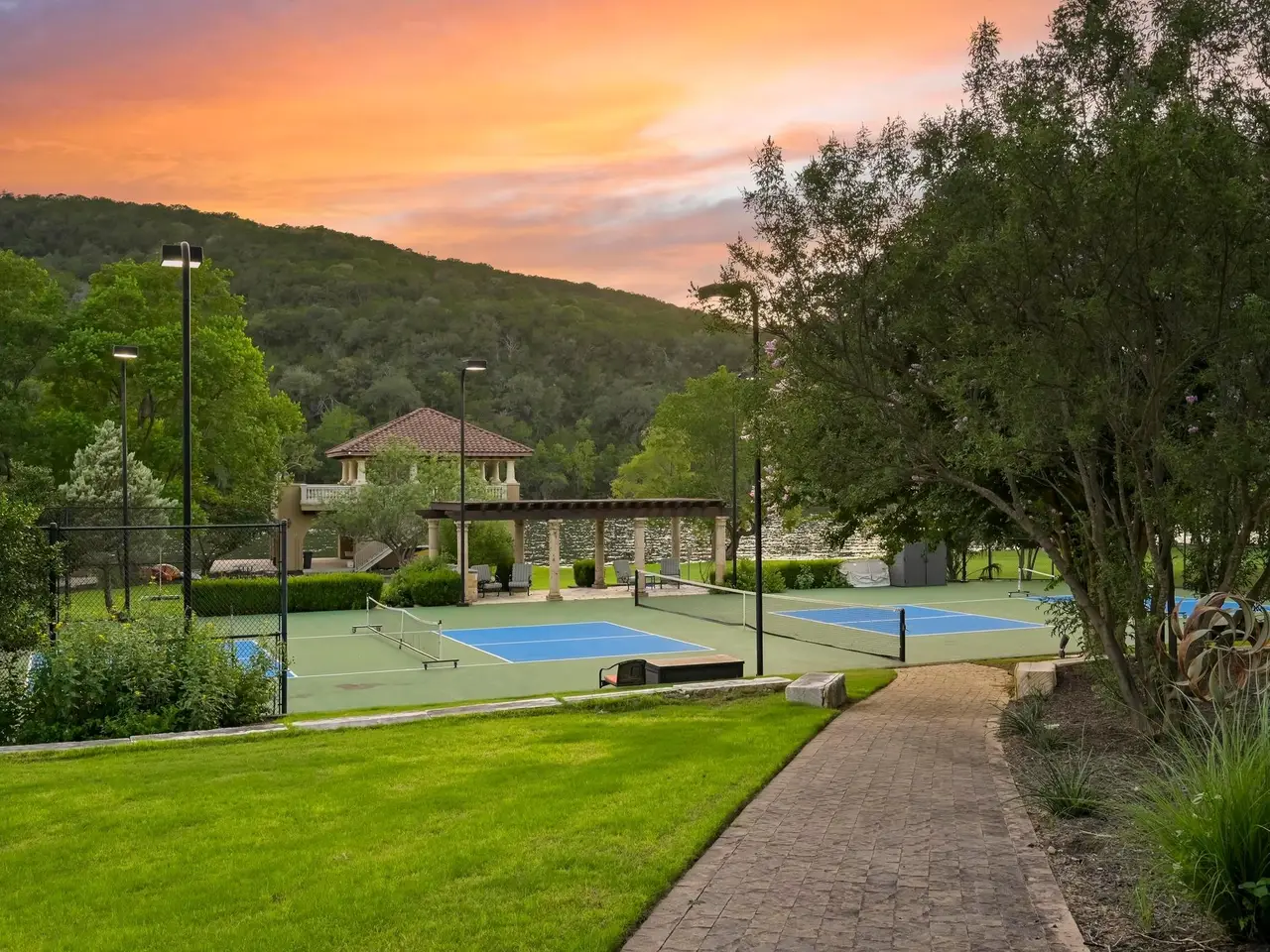 Full-size lighted tennis court