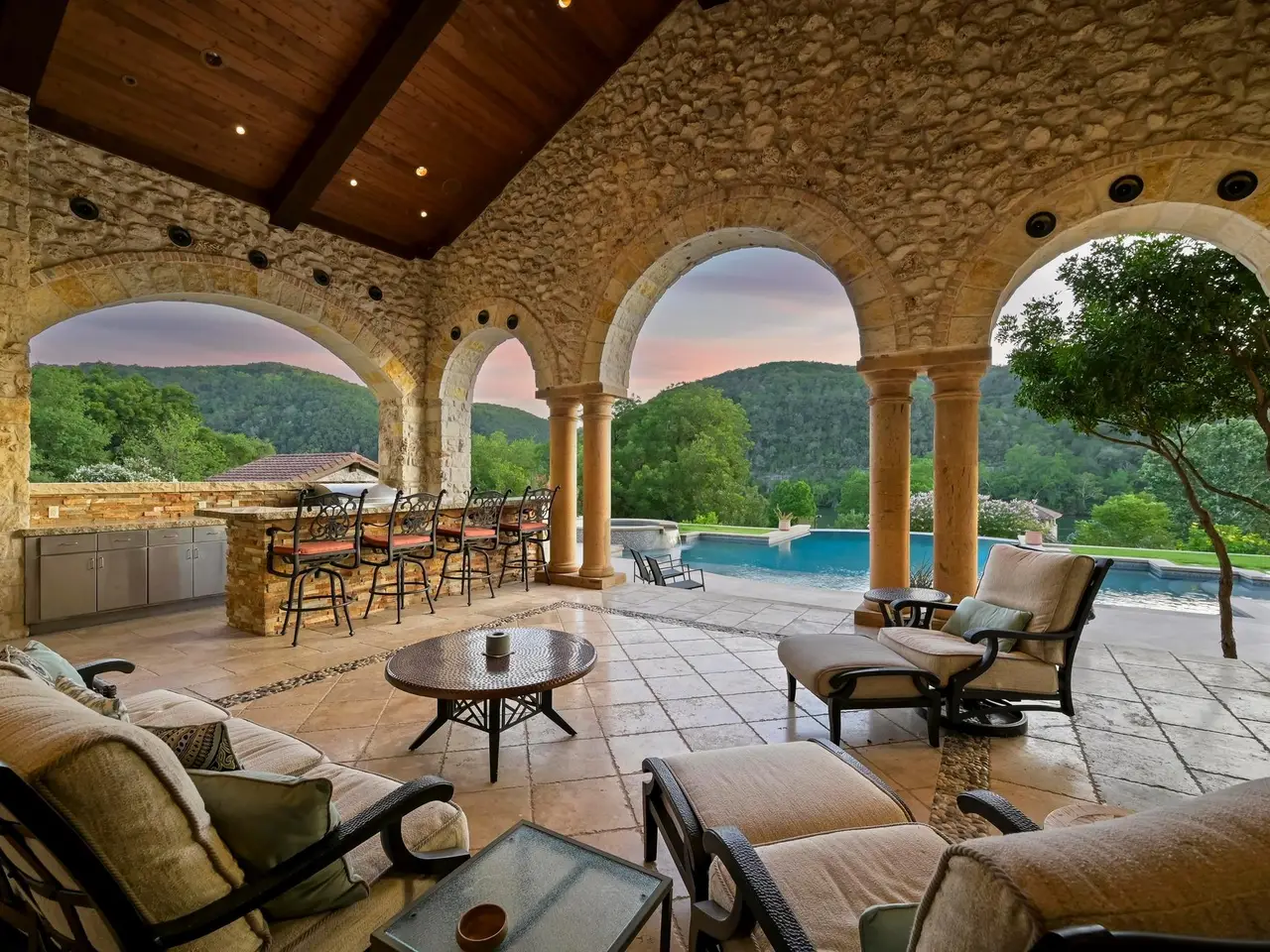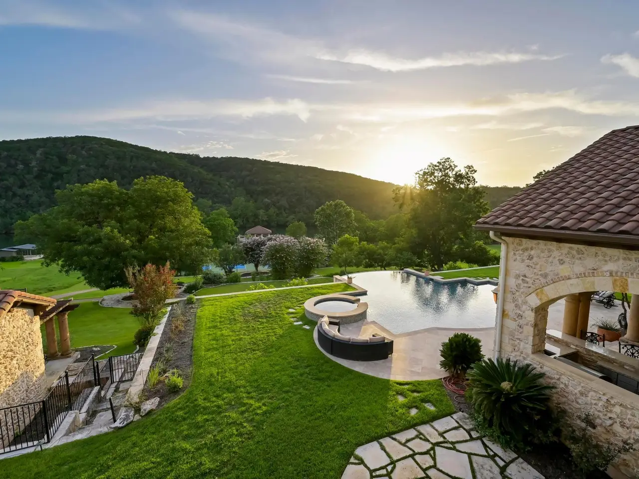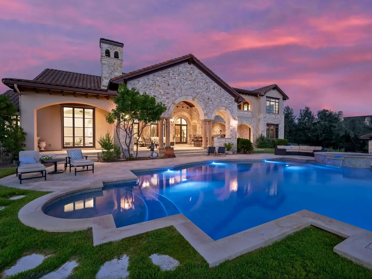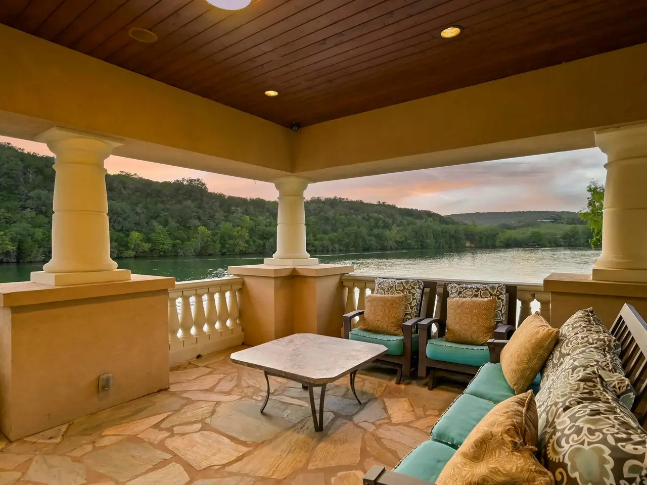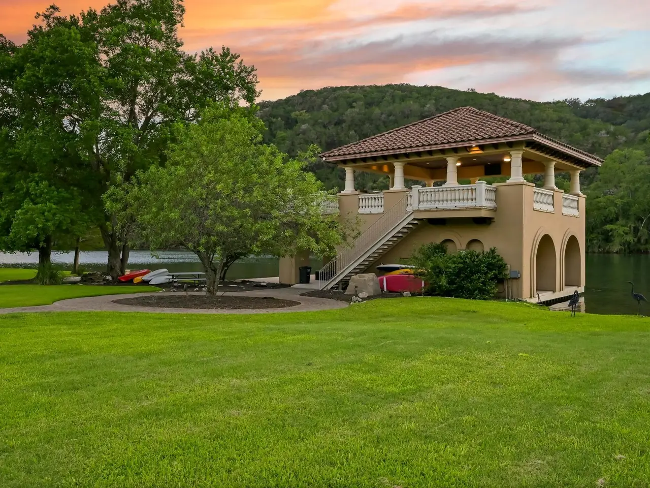 Villa Caslano is a breathtaking Lake Austin estate offering +/- 280' feet of pristine shoreline, directly across from the protected Balcones Nature Preserve. Set behind private gates, this expansive property blends timeless European elegance with resort-style amenities. The grand great room features 30-foot vaulted ceilings and flows into a chef's kitchen outfitted with two Sub-Zero refrigerators, Wolf double ovens, a six-burner gas cooktop with griddle, and dual Miele dishwashers. Rich materials and artisan craftsmanship are found throughout--from hand-carved stone archways and wood beams to custom glass globes and ironwork. Additional highlights include a temperature-controlled wine room for over 200 bottles, a stunning home theater (with blackout shades and lake views), and a luxurious office with private study. Designed for effortless indoor-outdoor living, the home's covered loggia features a full outdoor kitchen and fireplace overlooking the infinity pool, pool house, and full-size lighted tennis court. The two-story boat dock includes two boat slips and a fully integrated outdoor living space with a sun deck, kitchen, and audio/visual system--ideal for entertaining. A mosquito control system, private well, and Italian marble fountain elevate the estate's luxurious lifestyle. The primary suite is a true sanctuary with a domed entry and one of the most spectacular closets in Austin--complete with floor-to-ceiling shoe racks, a sliding ladder, and its own laundry and beverage station. The spa-like bathroom features a Bain Ultra soaking tub, dual rain and handheld shower heads, and six body sprayers. Ideally located just a golf cart ride from the world-class Lake Austin Spa and close to the UT Golf Club, this estate offers exceptional proximity to top-rated schools, restaurants, and retail in one of Austin's most coveted gated neighborhoods. Tax and assessed values are estimates for illustration purposes only. All figures should be independently verified.