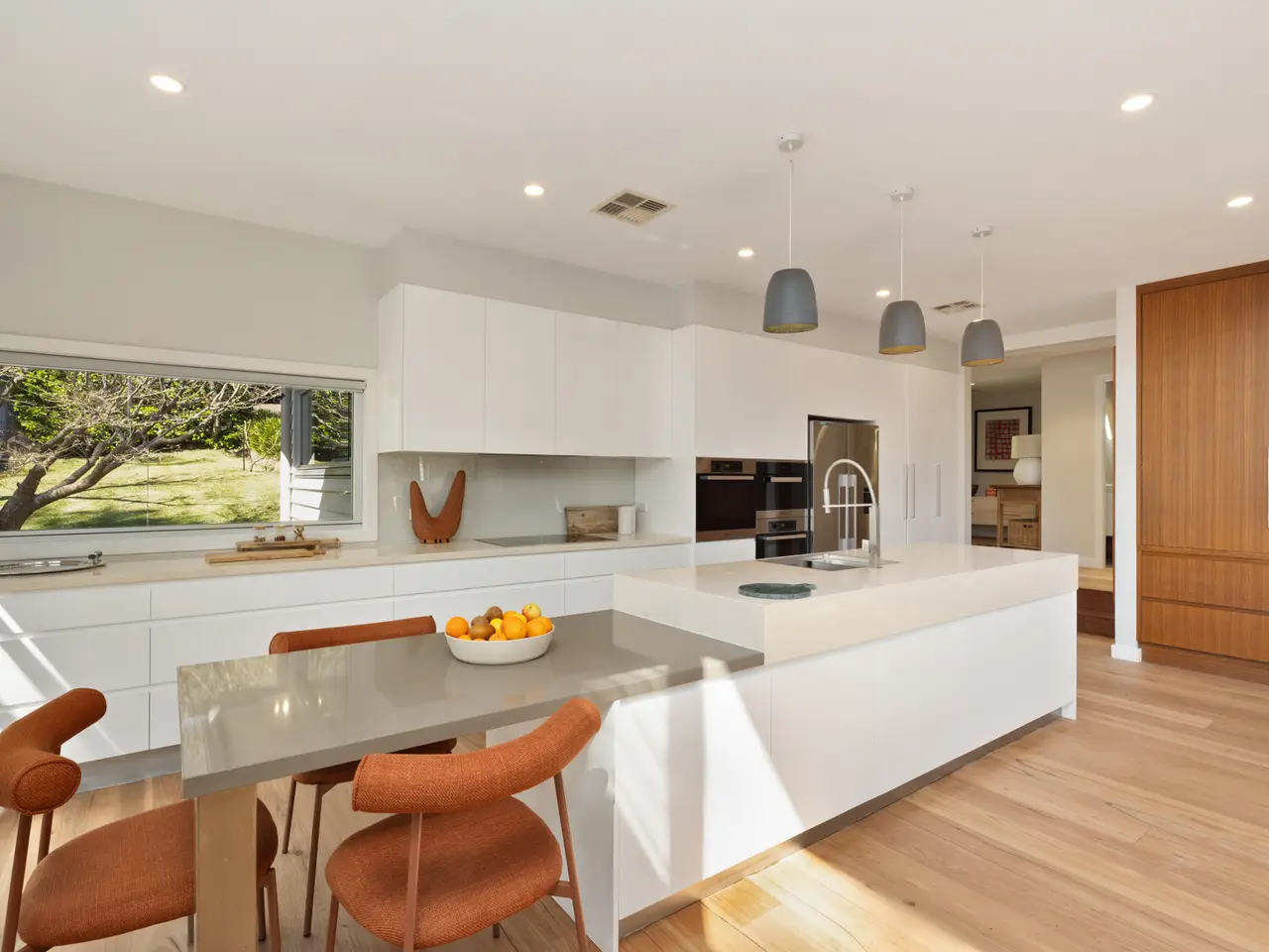 It takes a visionary architectural eye to make the transformation from a 1970s home into an absolute showstopper, but 4 Coolawin Road has utterly redefined the concept of bold, sophisticated design for 2025. Beautifully positioned and flooded with north light, it sits within a gorgeous, 1,530sqm parcel no more than a five-minute stroll from the village. Dressed in a refined neutral palette with meticulously crafted joinery and extraordinary finishes, the inspiring interiors are a showcase of sun-filled spaces embraced in glass. This is a home that's intuitively designed for family entertaining with its fluid, open floorplan connecting to series of alfresco and sheltered decks, sparkling infinity pool and grounds blanketed by lush lawns in every direction. State-of-the-art in every respect, it features a luxe kitchen with Miele appliances throughout, king-sized bedrooms with bespoke robes, an expansive downstairs family room, and the convenience of a main-level home office; just across from the pool is a fully self-contained cottage that's fabulous for weekend guests or extended family visits. - Brilliant expression of form and functionality in perfect symmetry - Double-height ceilings, hardwood floors and galleries of glass - Innovative design erases the boundaries between indoors and out - Massive, north-facing decks, sunlit infinity pool and level lawns - Expansive family room downstairs, home office/study on main level - Luxe kitchen with a full suite of Miele appliances and three ovens - King-sized bedrooms, each include custom robes and ceiling fans - Master with double ensuite; sleek, modern bathrooms throughout - Fully self-contained guest cottage set privately back from residence - Gas fireplace, ducted climate control, utility room, wine storage - Double garage with internal access plus ample driveway parking - Superb location for any family; walk to school, beach and village